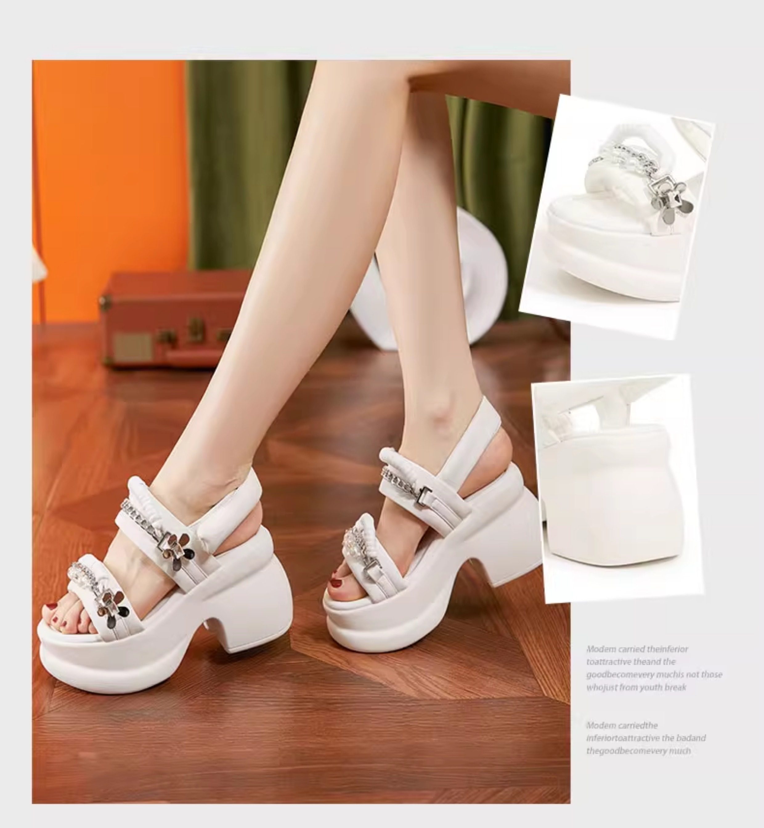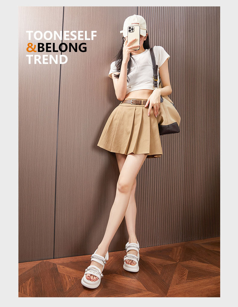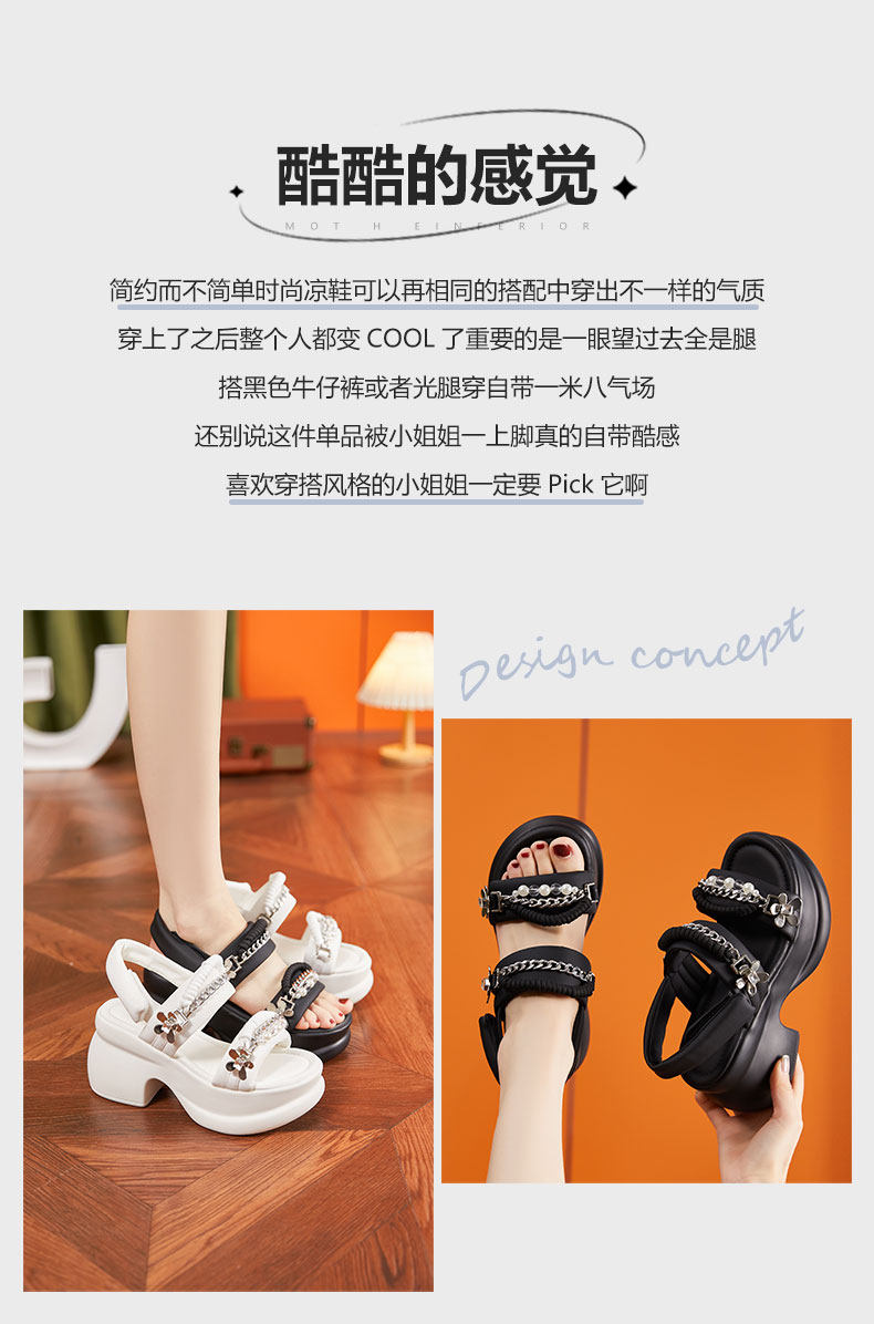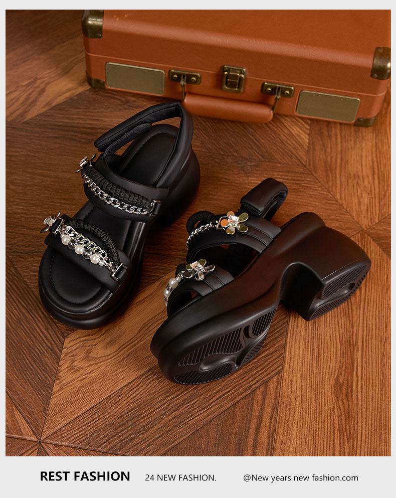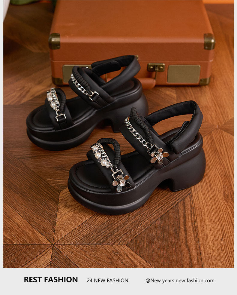 Zfcq Thick-Soled Wedge Sandals for Women 2025 Summer New High-Heeled Rhinestone Casual High-End Velcro Sandals