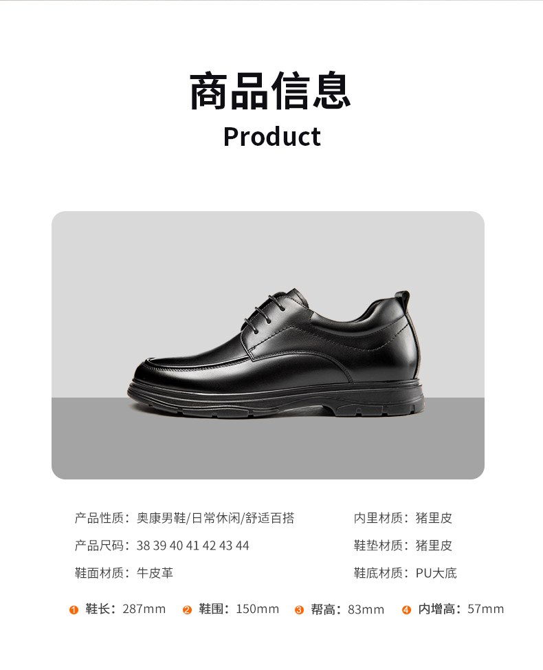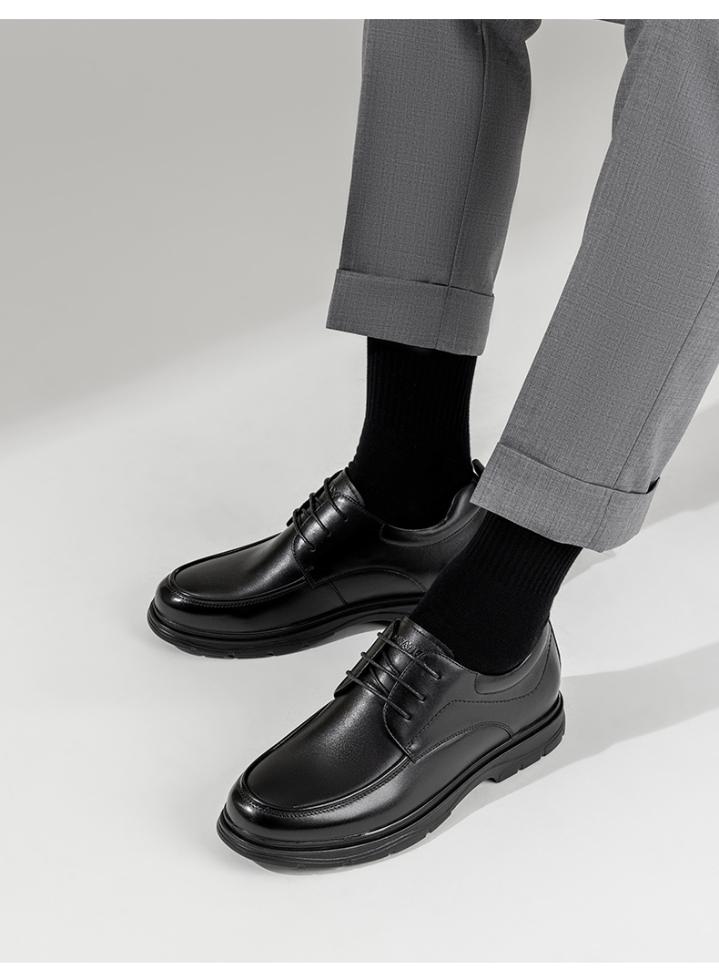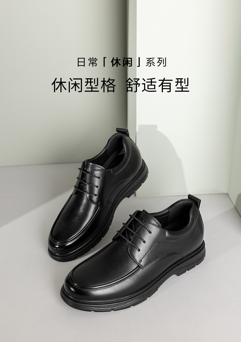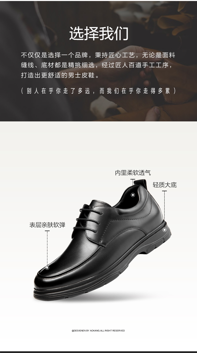 [Inner Height Increase] Aokang Men's Shoes Spring and Autumn New Business Derby Shoes Men's Genuine Leather Plaid Commuting Men's Leather Shoes