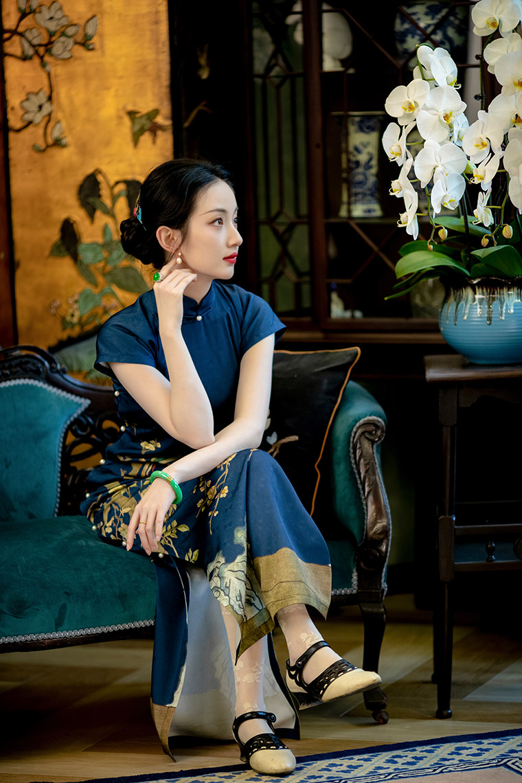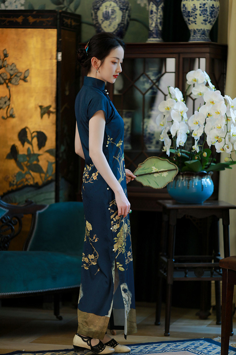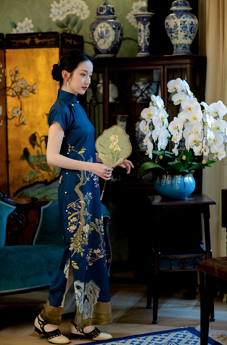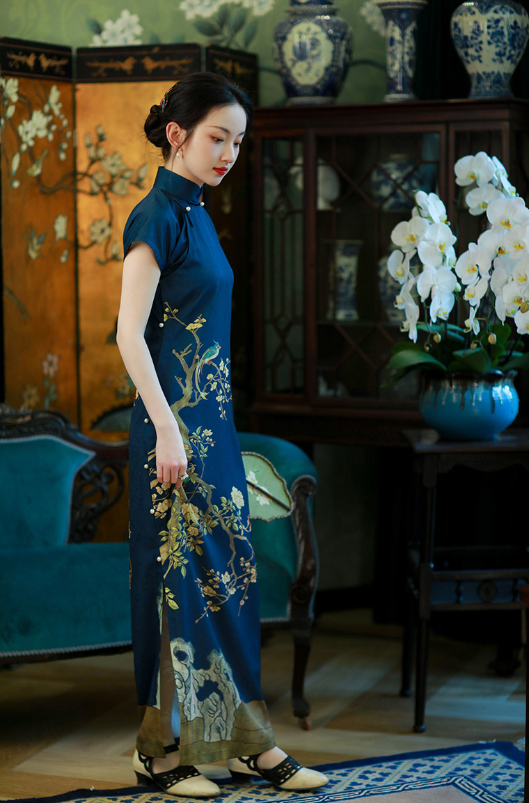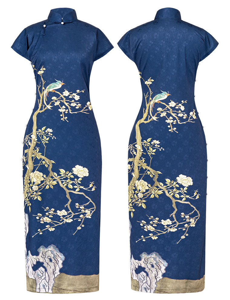 Yihua Wanqing | a City of Wind and Clouds | Summer Retro Chinese Style Stand Collar Full-Open Front Small Cuff Printed Cheongsam Dress