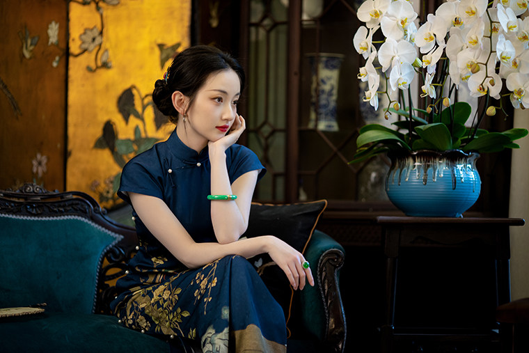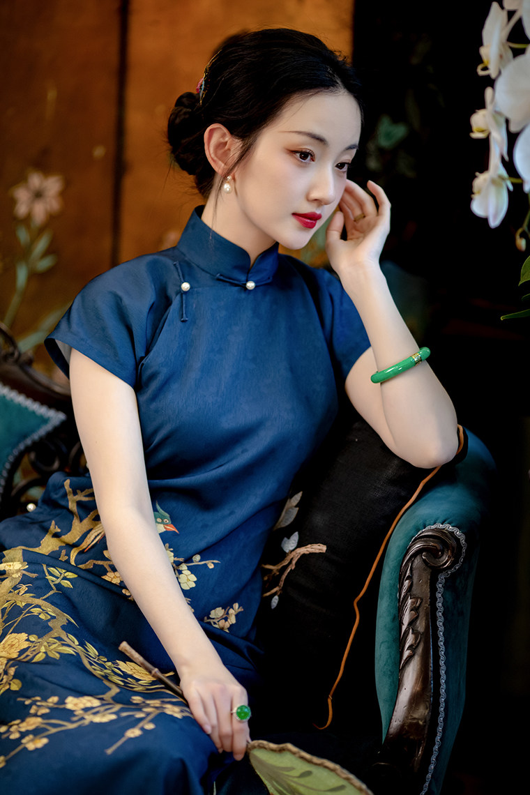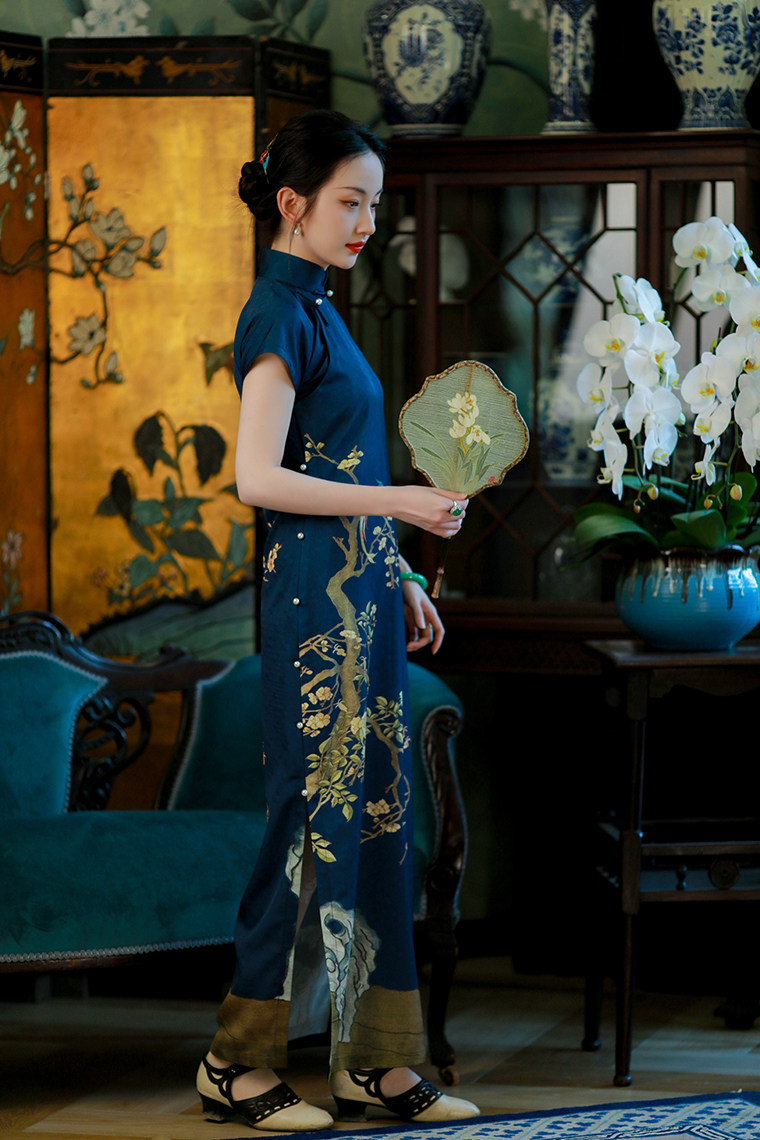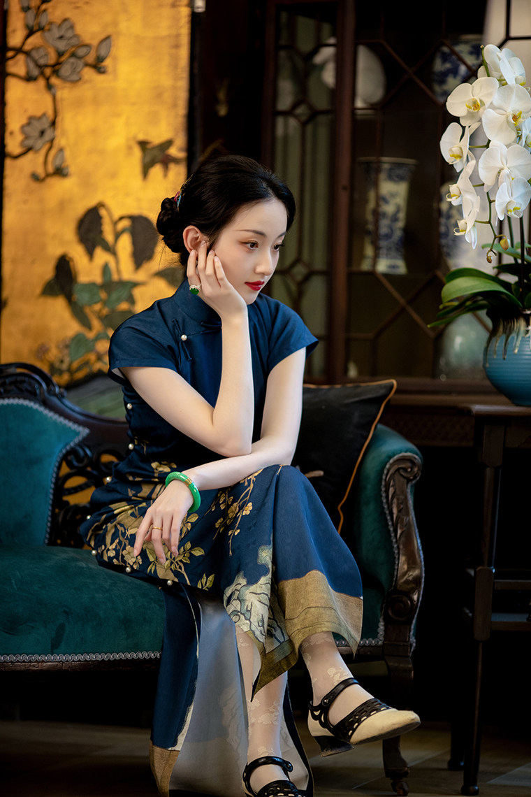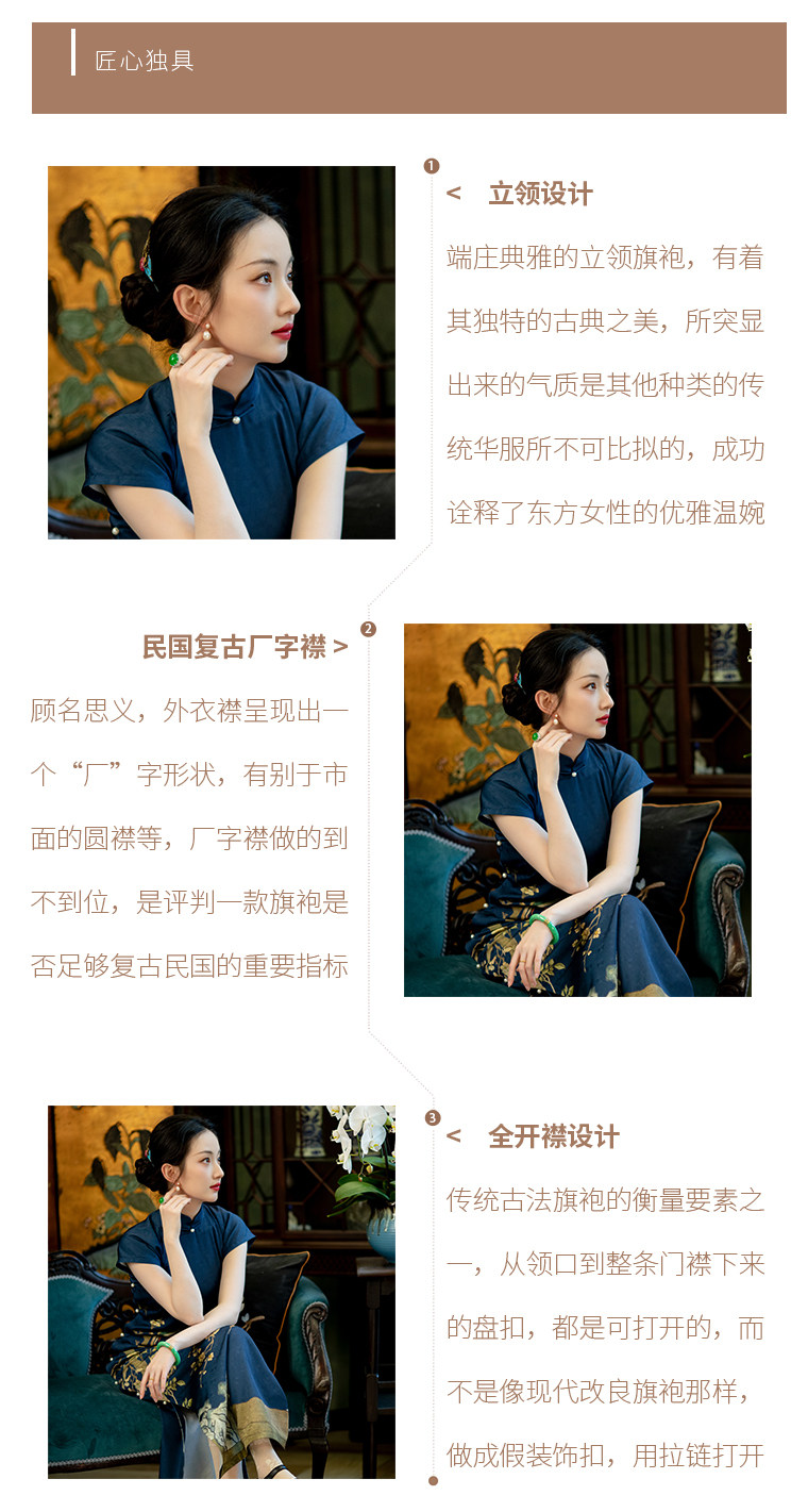 Yihua Wanqing | a City of Wind and Clouds | Summer Retro Chinese Style Stand Collar Full-Open Front Small Cuff Printed Cheongsam Dress