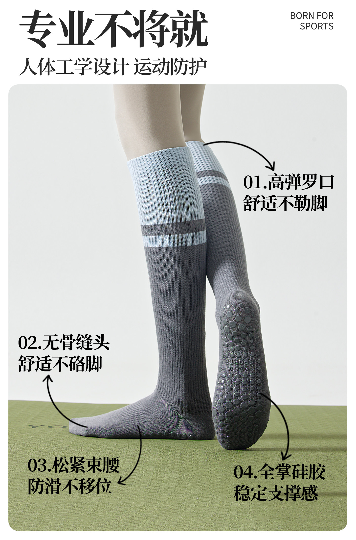 Pressure Calf Compression Sports Socks for Women, Professional Running, Jump Rope, Fitness, Yoga, Non-Slip, Long Tube, Special Cycling Socks