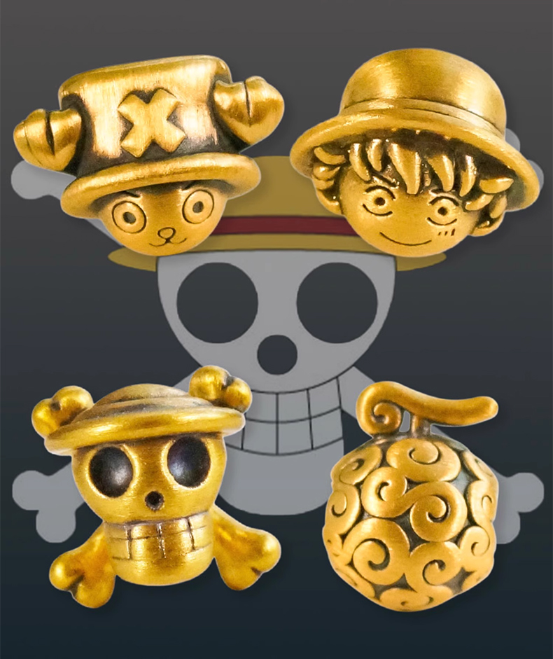 999 Pure Gold One Piece Gold Transfer Beads Devil Fruit Luffy/Chopper 3D Hard Gold Bracelet Beads for Men and Women