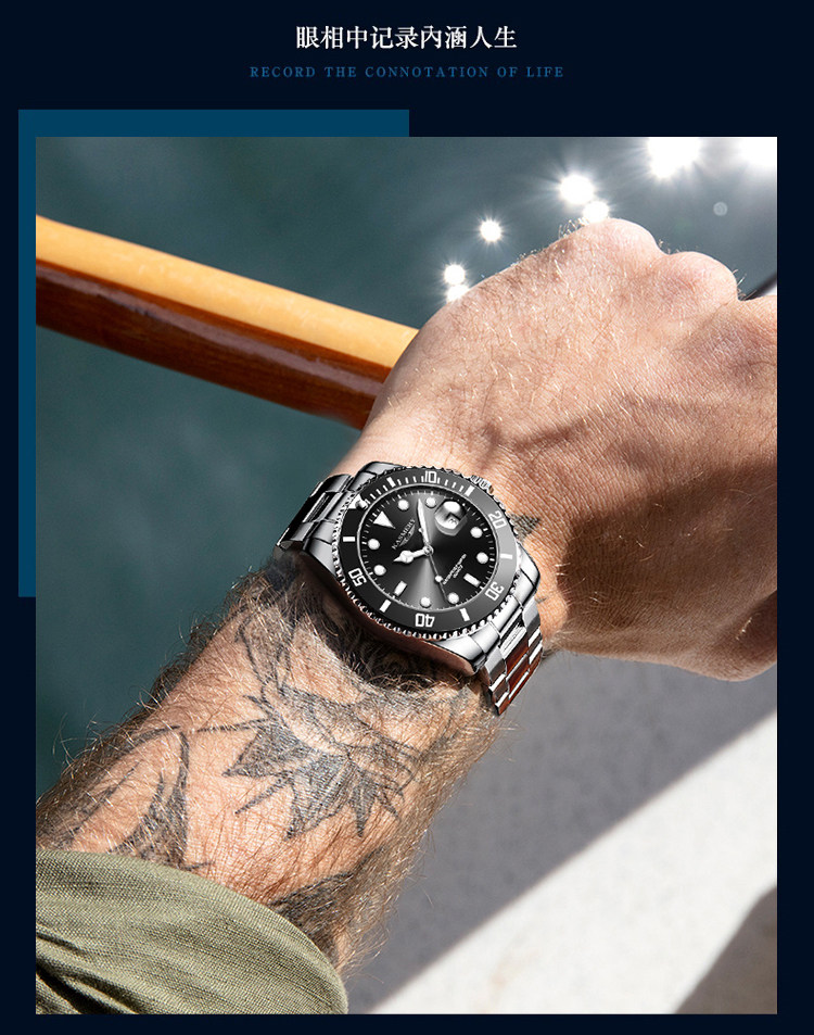 Swiss Genuine Black Water Ghost Men's Watch Mechanical Watch Men's Student Sports Waterproof Luminous Steel Band Quartz Watch
