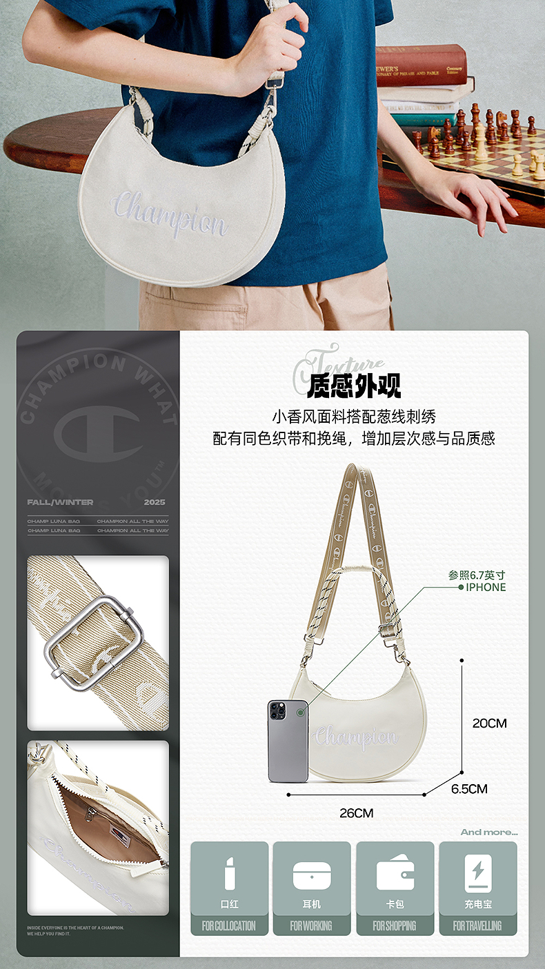 Champion Champion Crescent Bag 25 Fall and winter New arrival Women's Trendy Underarm Bag Fashion Crossbody Bag Casual Shoulder Bag
