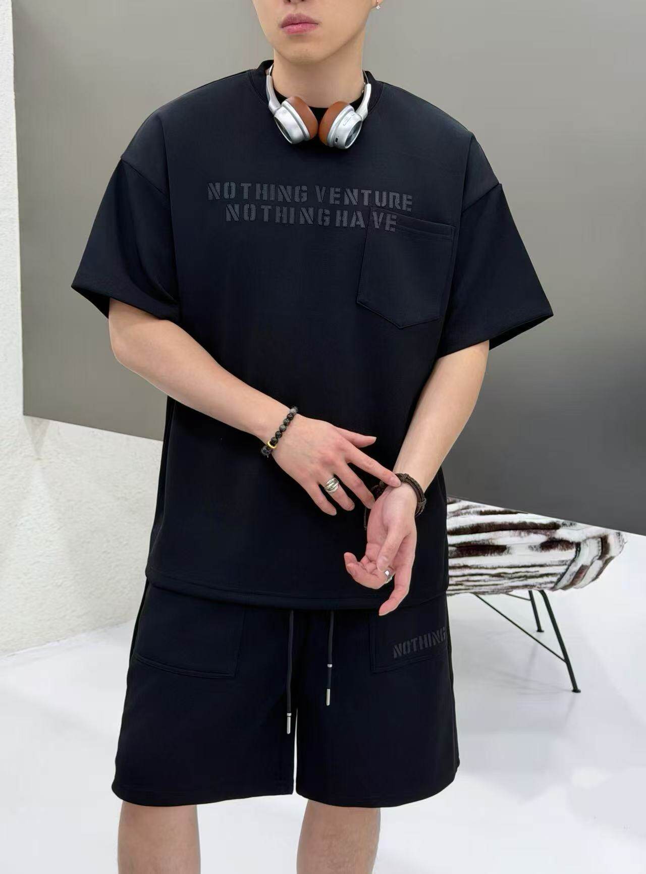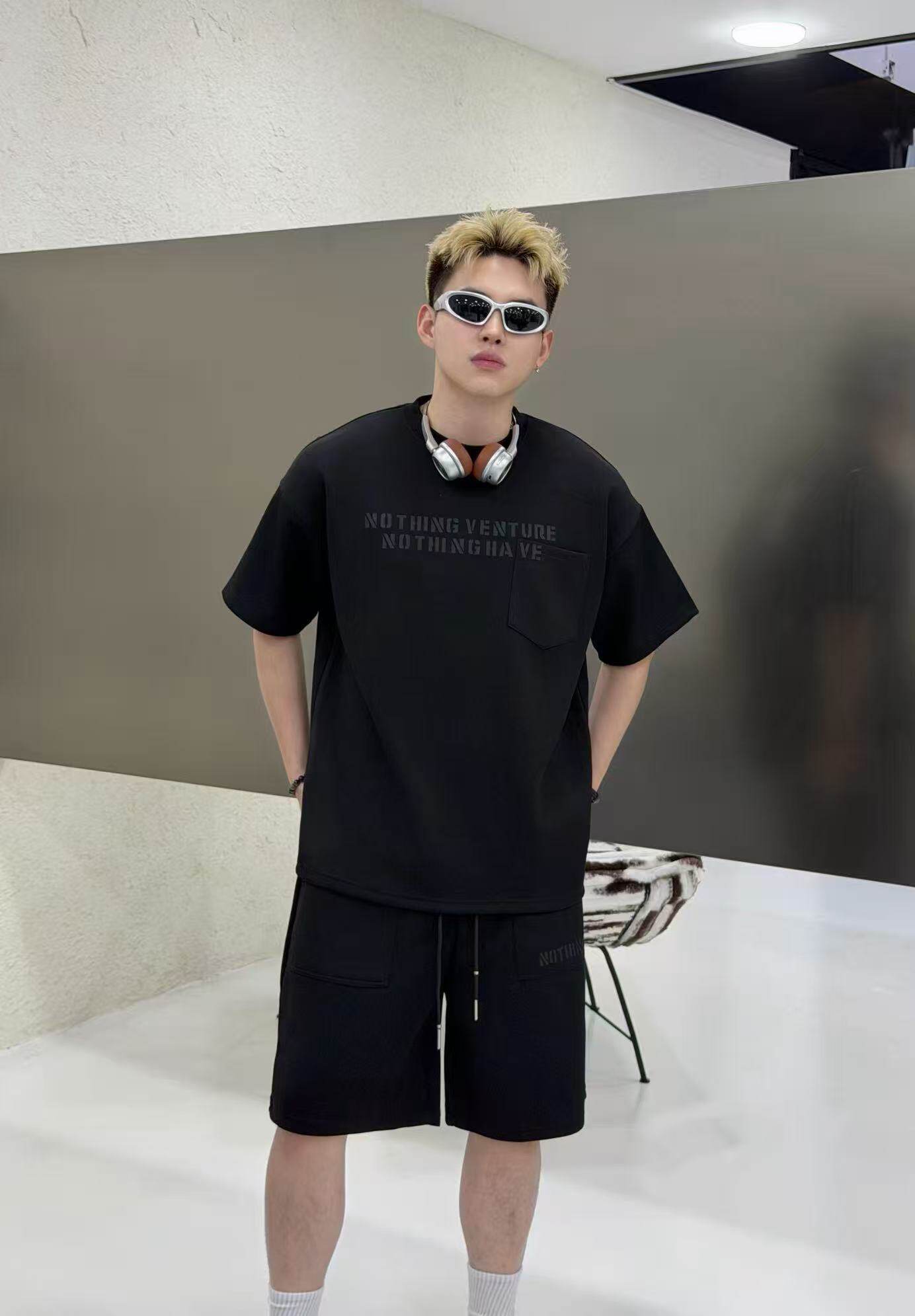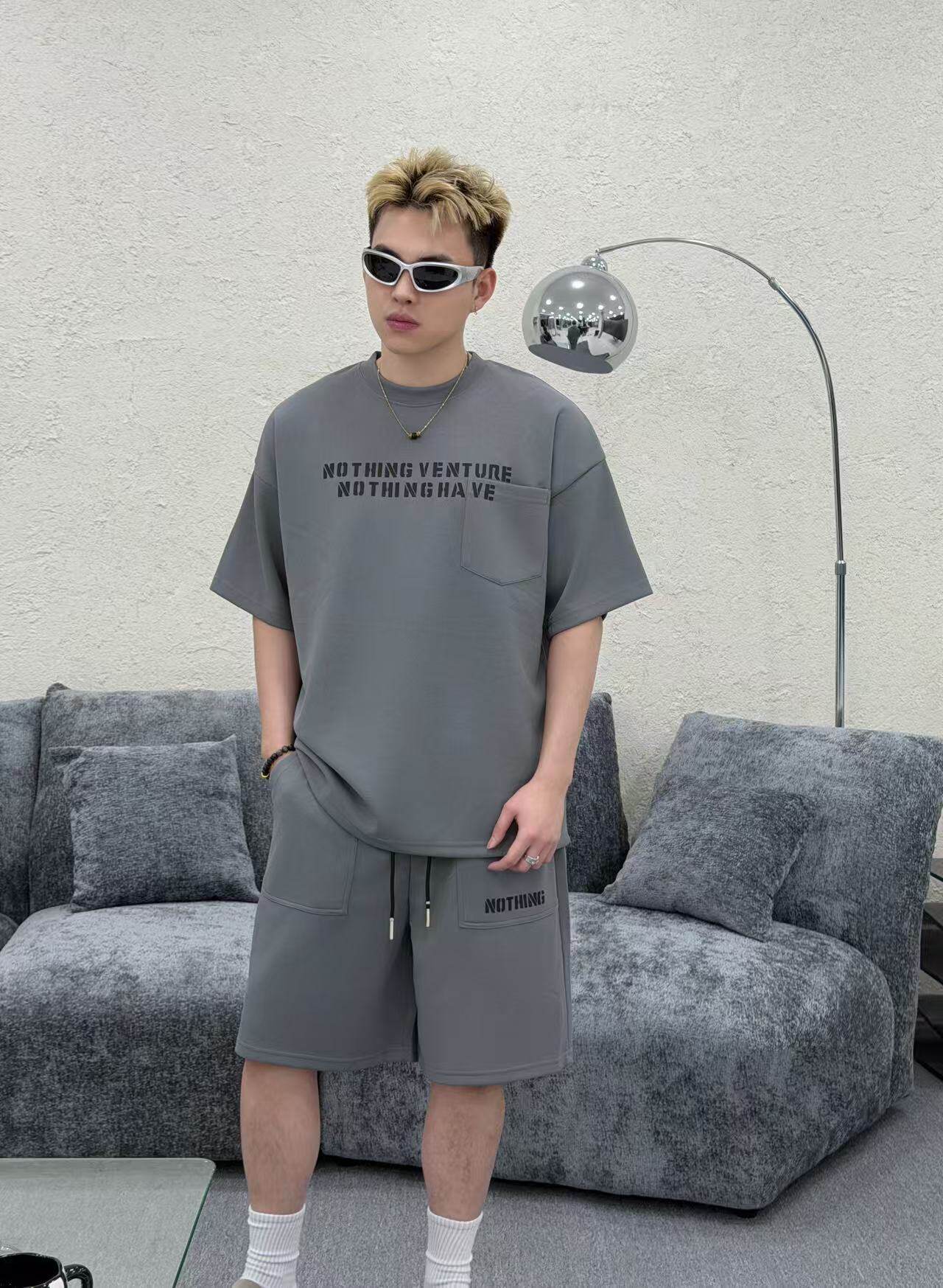 Summer Hip-Hop Style American Street Letter Print Suit Men's Fashionable Round Neck Short-Sleeved Shorts Casual Two-Piece Set