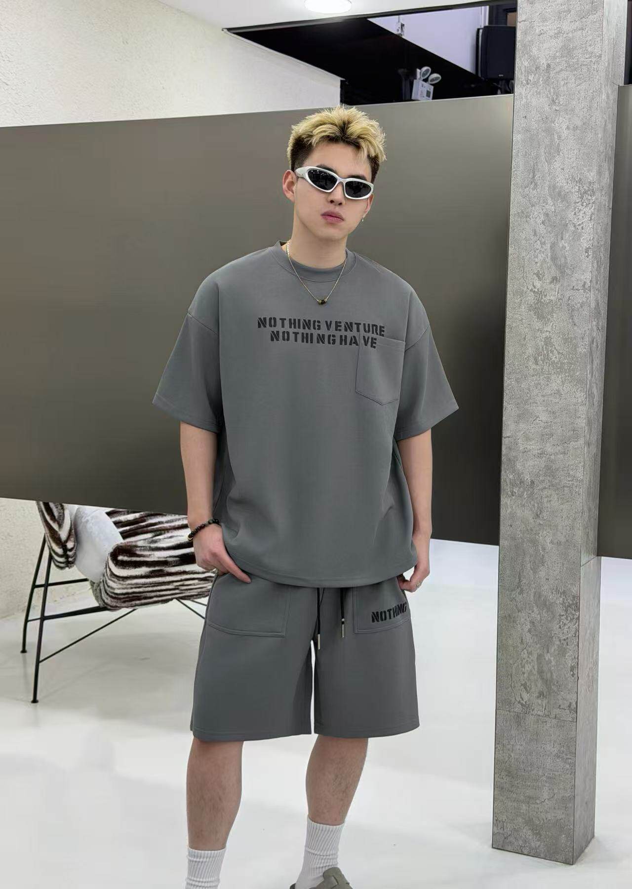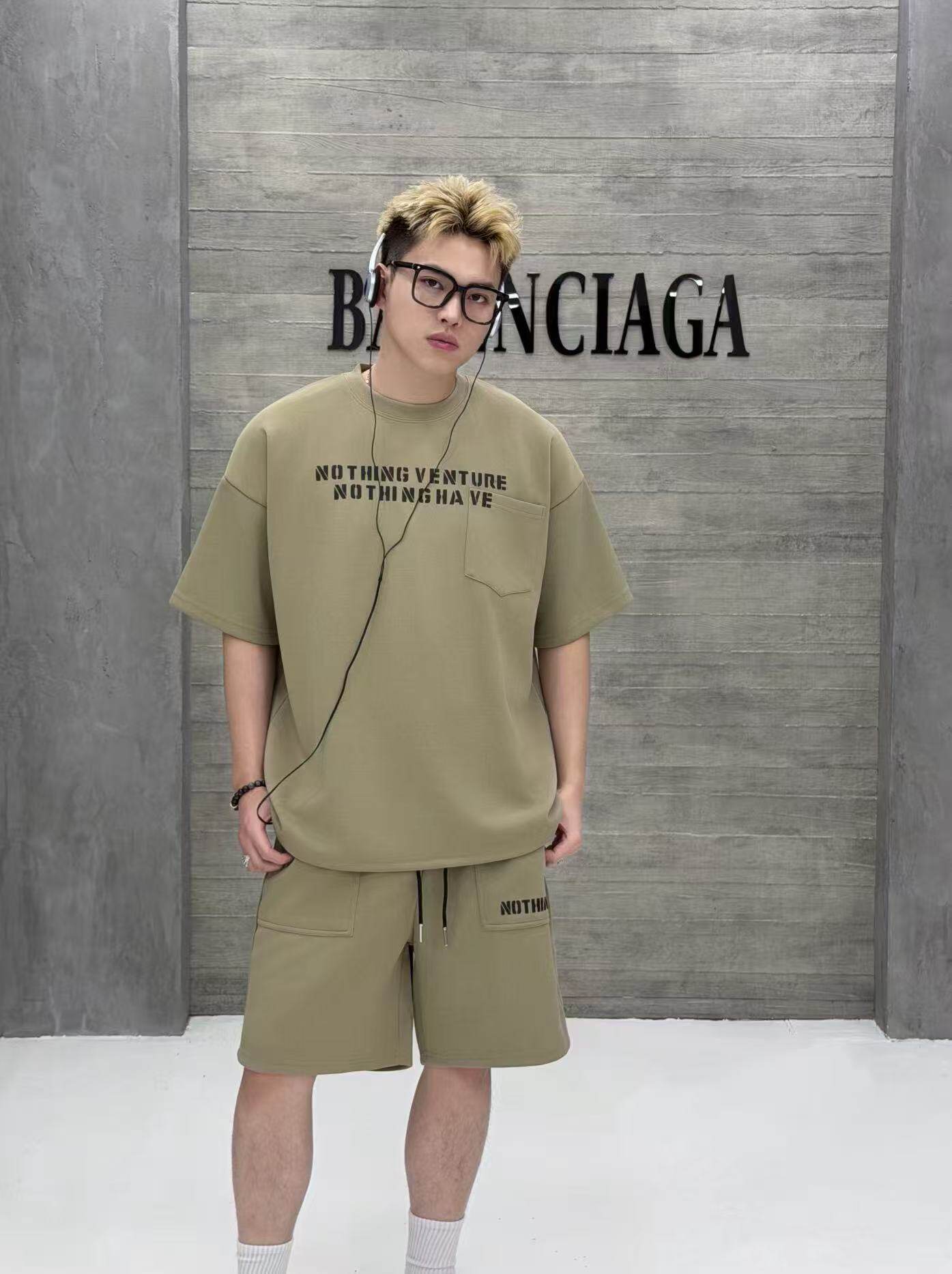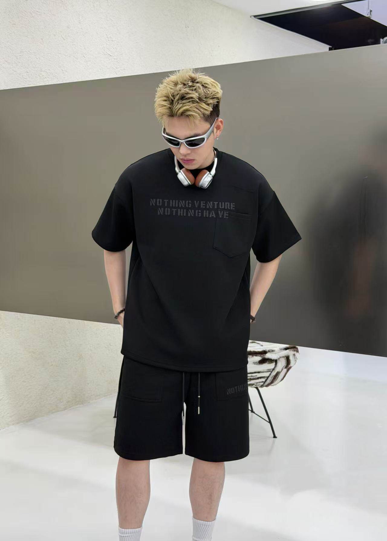 Summer Hip-Hop Style American Street Letter Print Suit Men's Fashionable Round Neck Short-Sleeved Shorts Casual Two-Piece Set