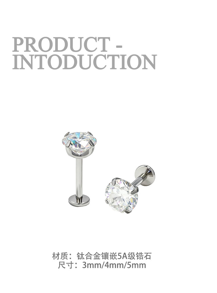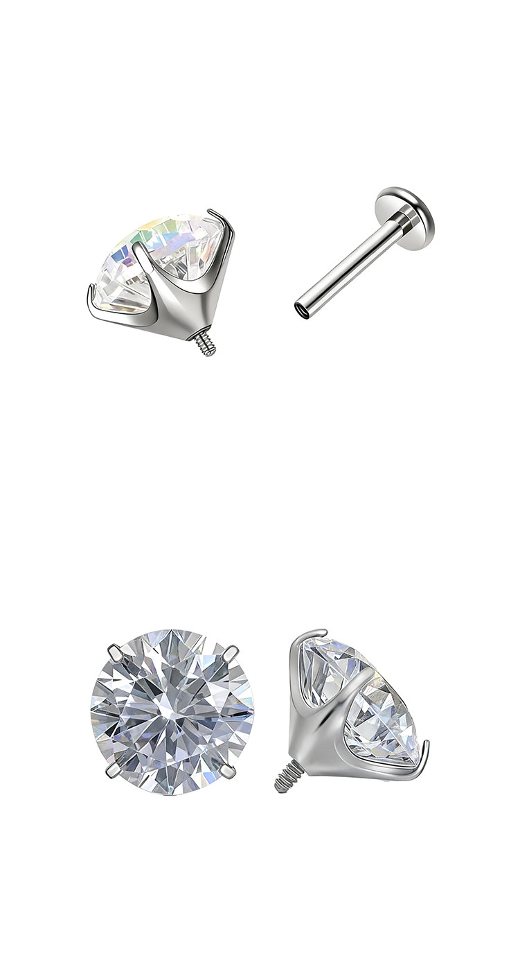 Yosimite Titanium Alloy F136 Diamond Earrings for Ear Piercing, Hypoallergenic, Internal Spiral Ear Bone Studs, No Need to Remove, Zircon