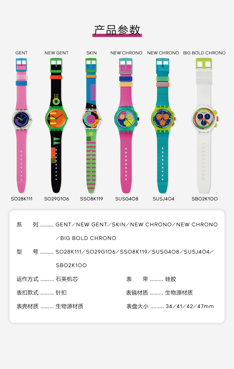 Swatch Swatch watch neon color plate Trendy sports Swiss quartz watch for men and women travel wear gift