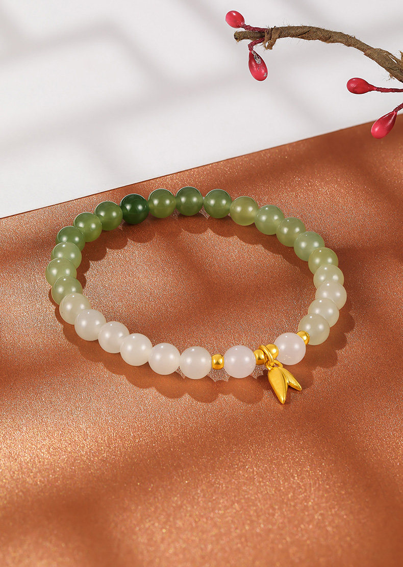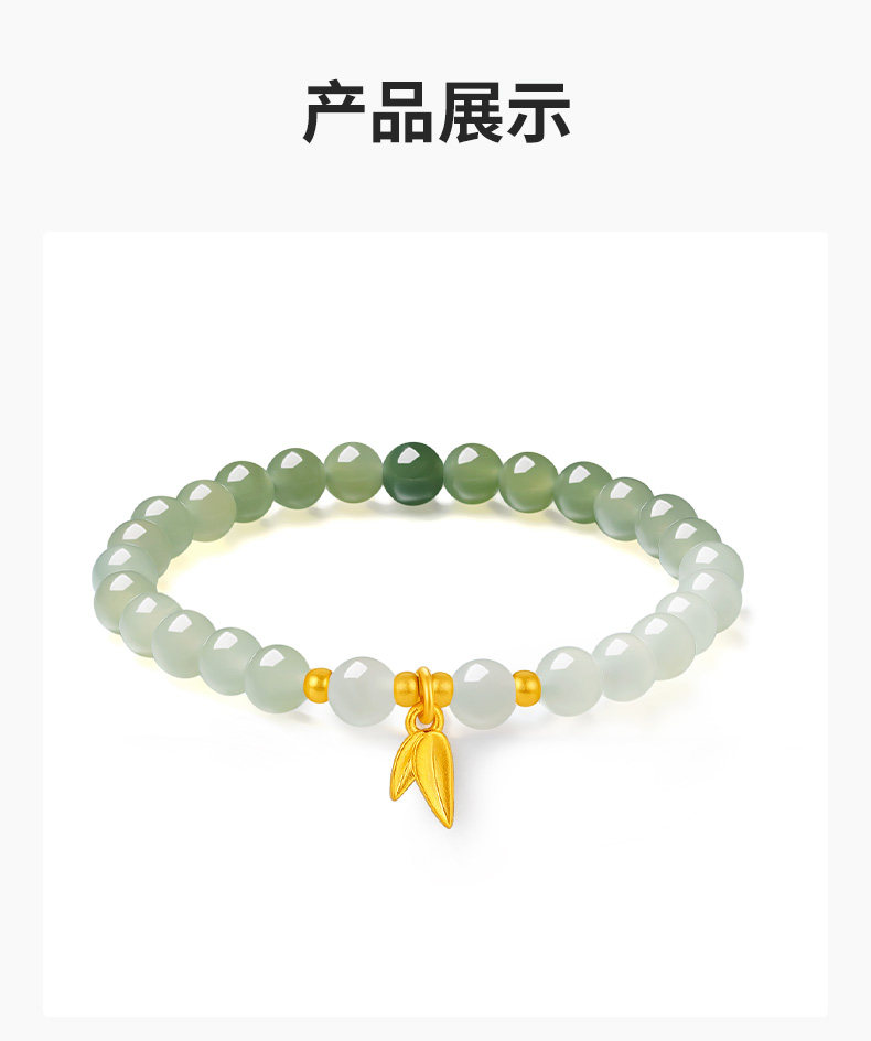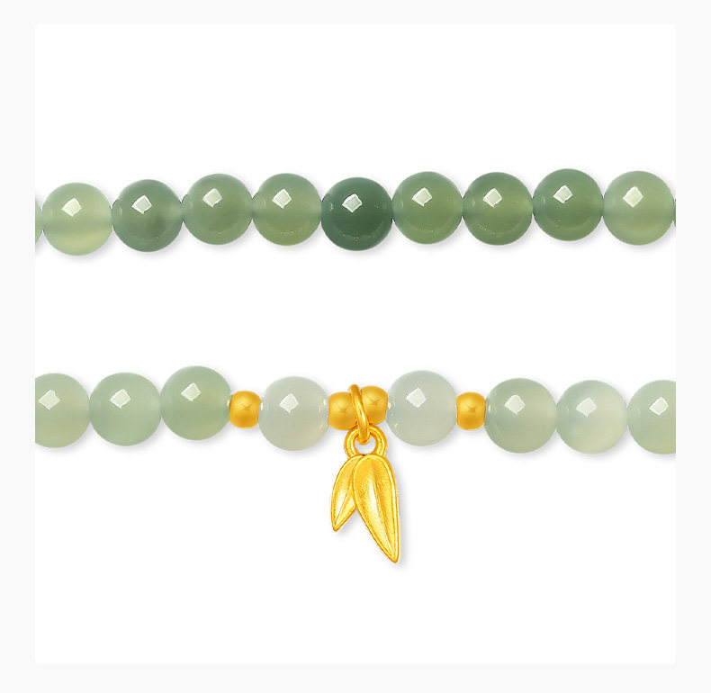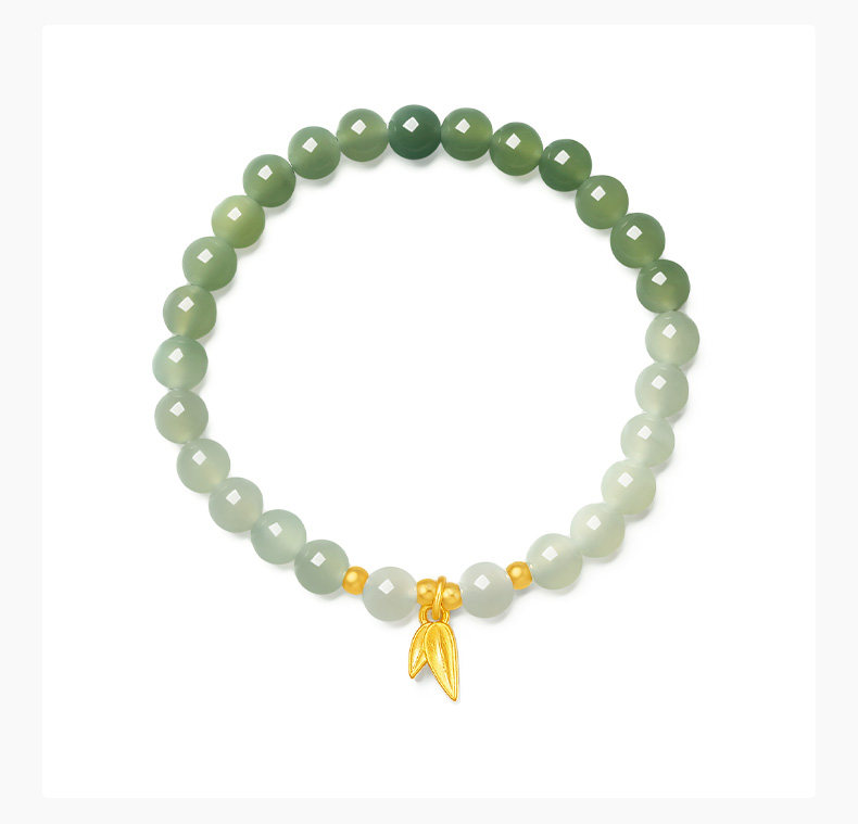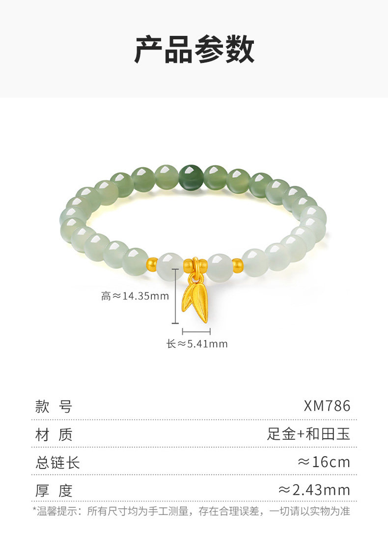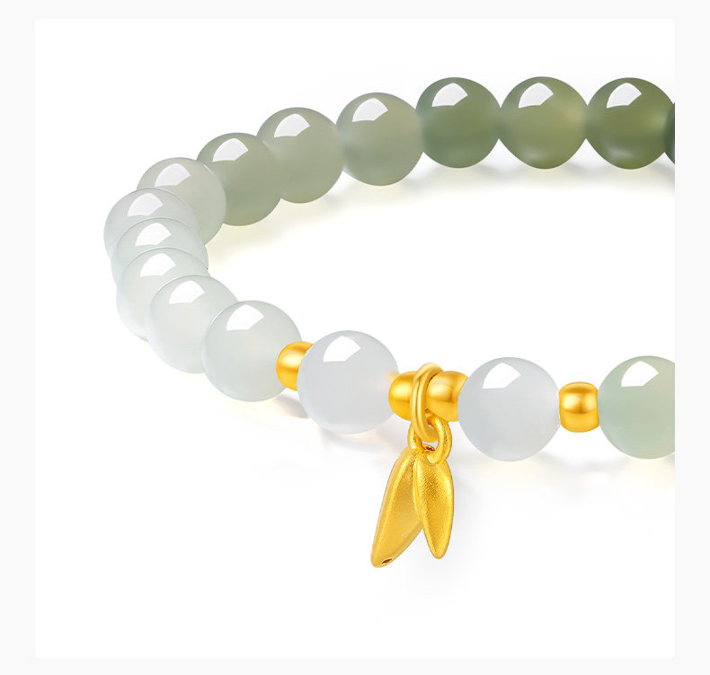 Tsl Xie Ruilin 3D Hard Gold Bamboo Leaf Hetian Jade Bracelet Gold Bracelet Pure Gold Elastic Cord New Product Xm786