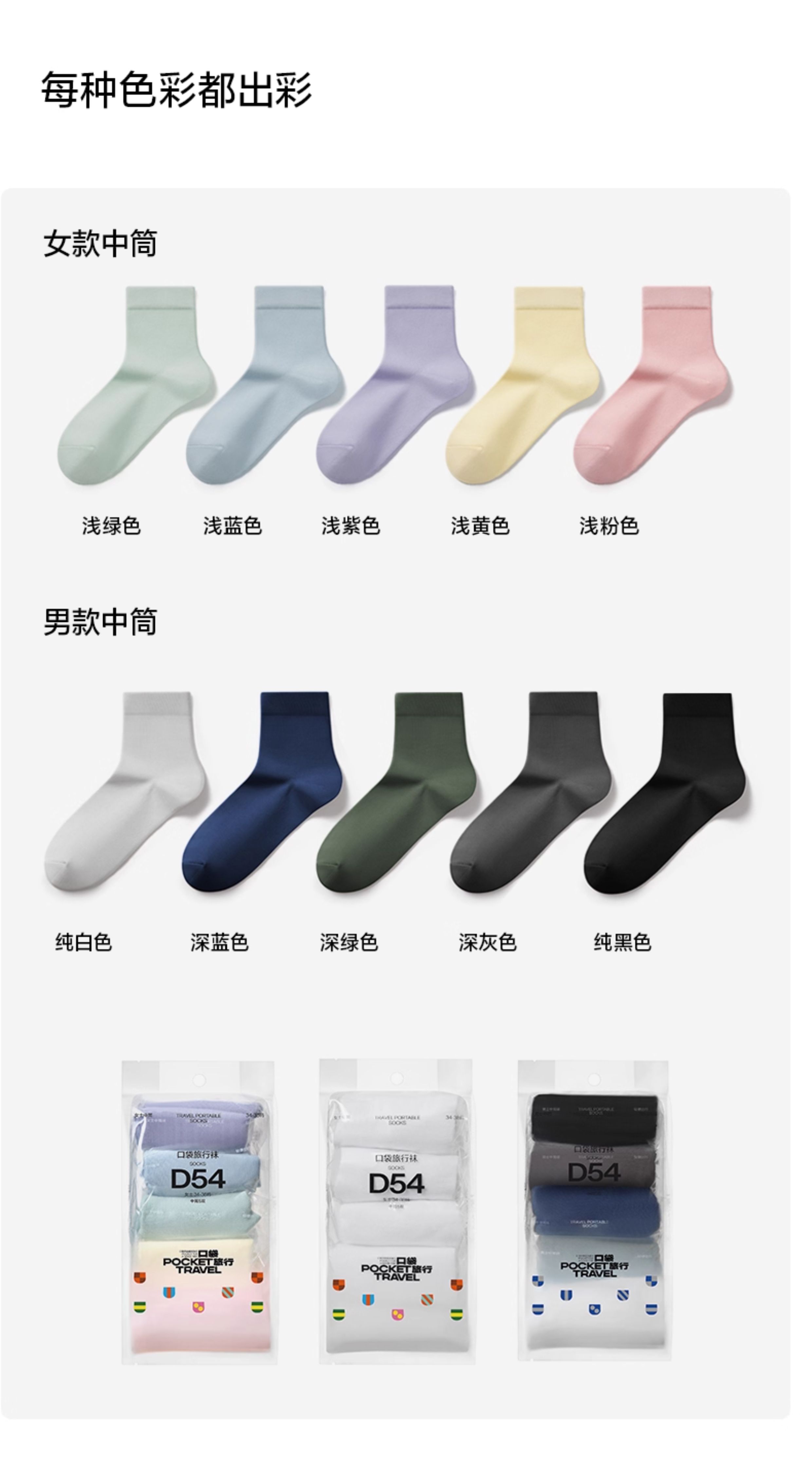 Pocket Travel Disposable Socks, Daily Use, Mid-Calf Length, Women's and Men'S, Extra Large, Travel, Spring and Summer, Breathable, Antibacterial Cotton Socks