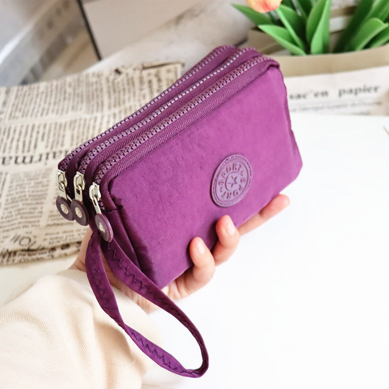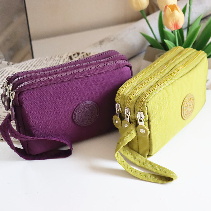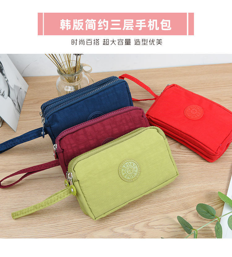 2025 New Korean Style Fashionable Three-Layer Zipper Phone Bag for Women, Long Large-Capacity Fabric Clutch Bag, Trendy Coin Purse