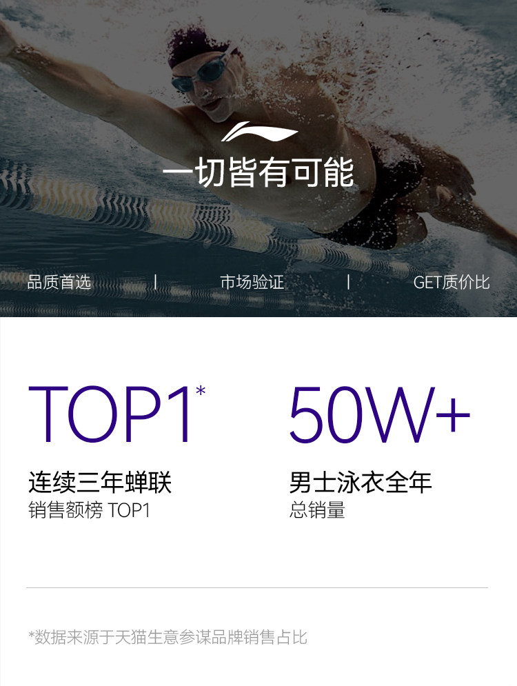 Li-Ning Men's Swimming Trunks Hot Spring Swimwear Men's Adult Youth Swimming Gear Swimming Cap Swimming Goggles 2025 New Model