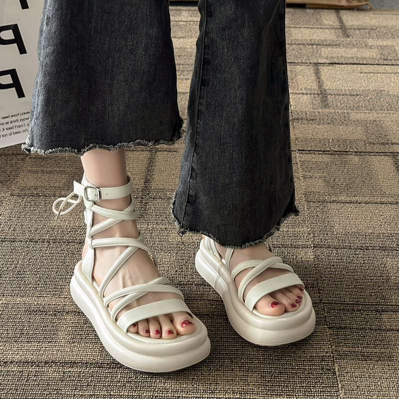 Thick-Soled Roman Sandals for Women, 2025 New Summer Design, Suitable for Skirts, Casual Lace-Up High-Top Beach Shoes for Women