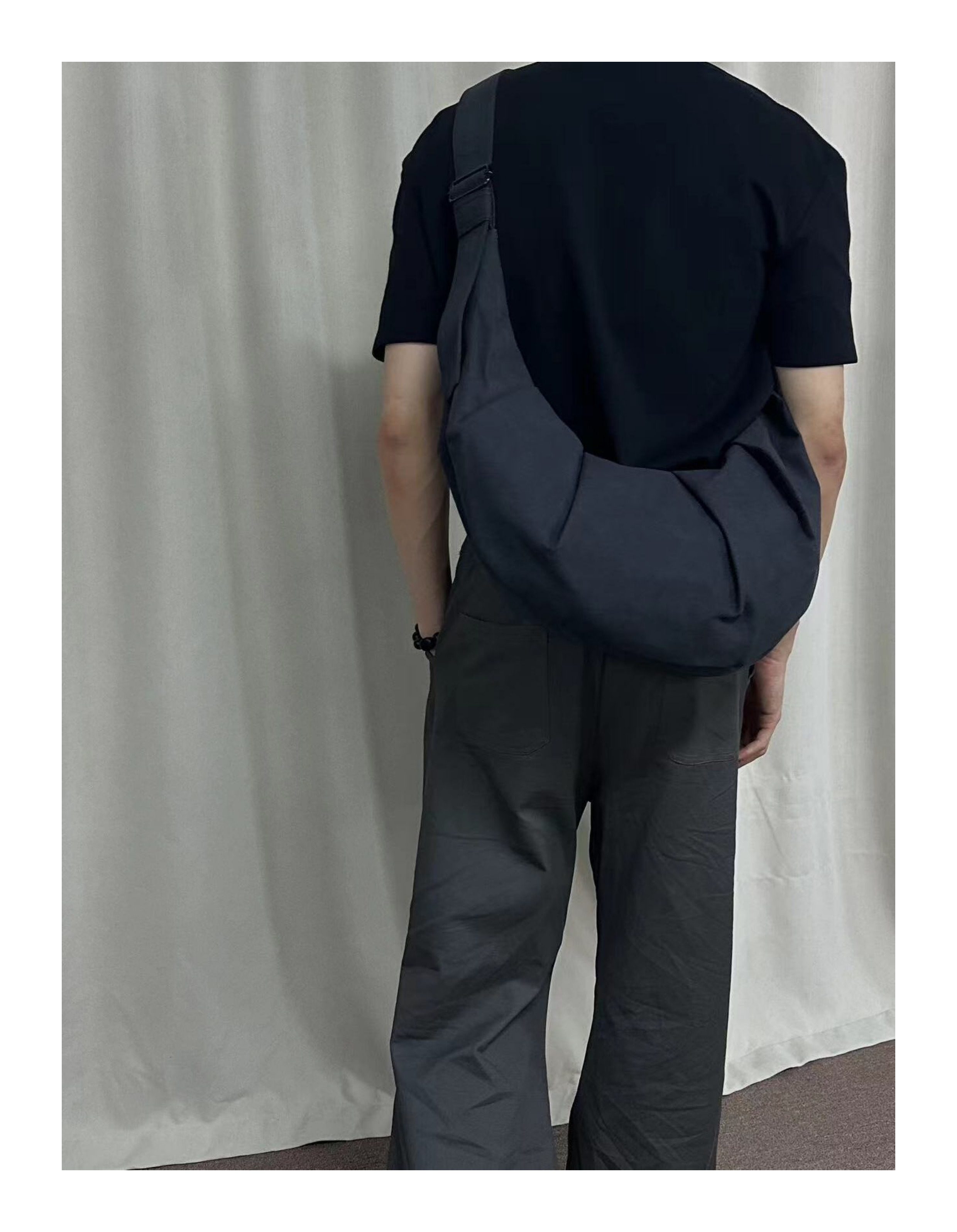 Oaoo Double-Sided Fleece Large-Capacity Dumpling Bag for Women, Charcoal Black Pleated Casual Adjustable Single-Shoulder Crossbody Bag for Men