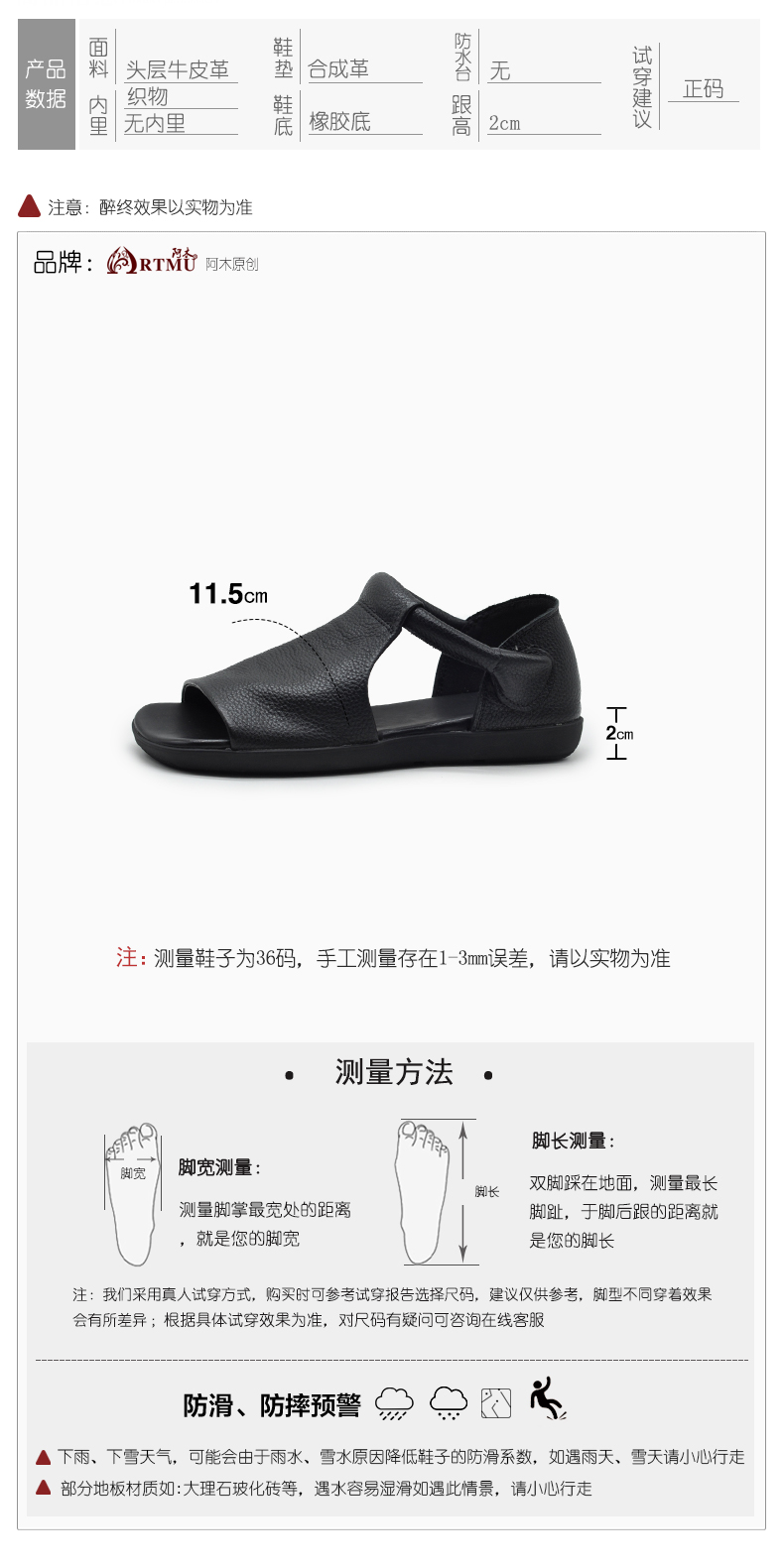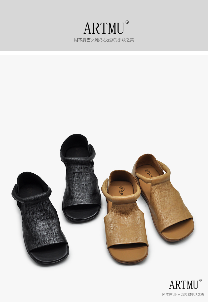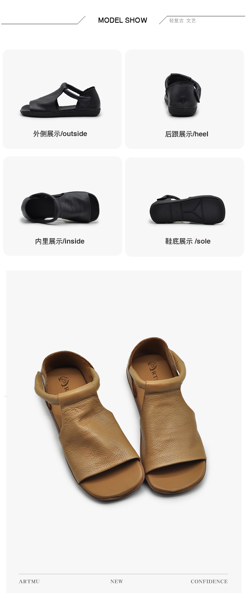 Artmu Amu New Summer Flat Sandals for Women, Casual Soft-Soled Outdoor Sandals, Large Size 41 Genuine Leather Women's Shoes