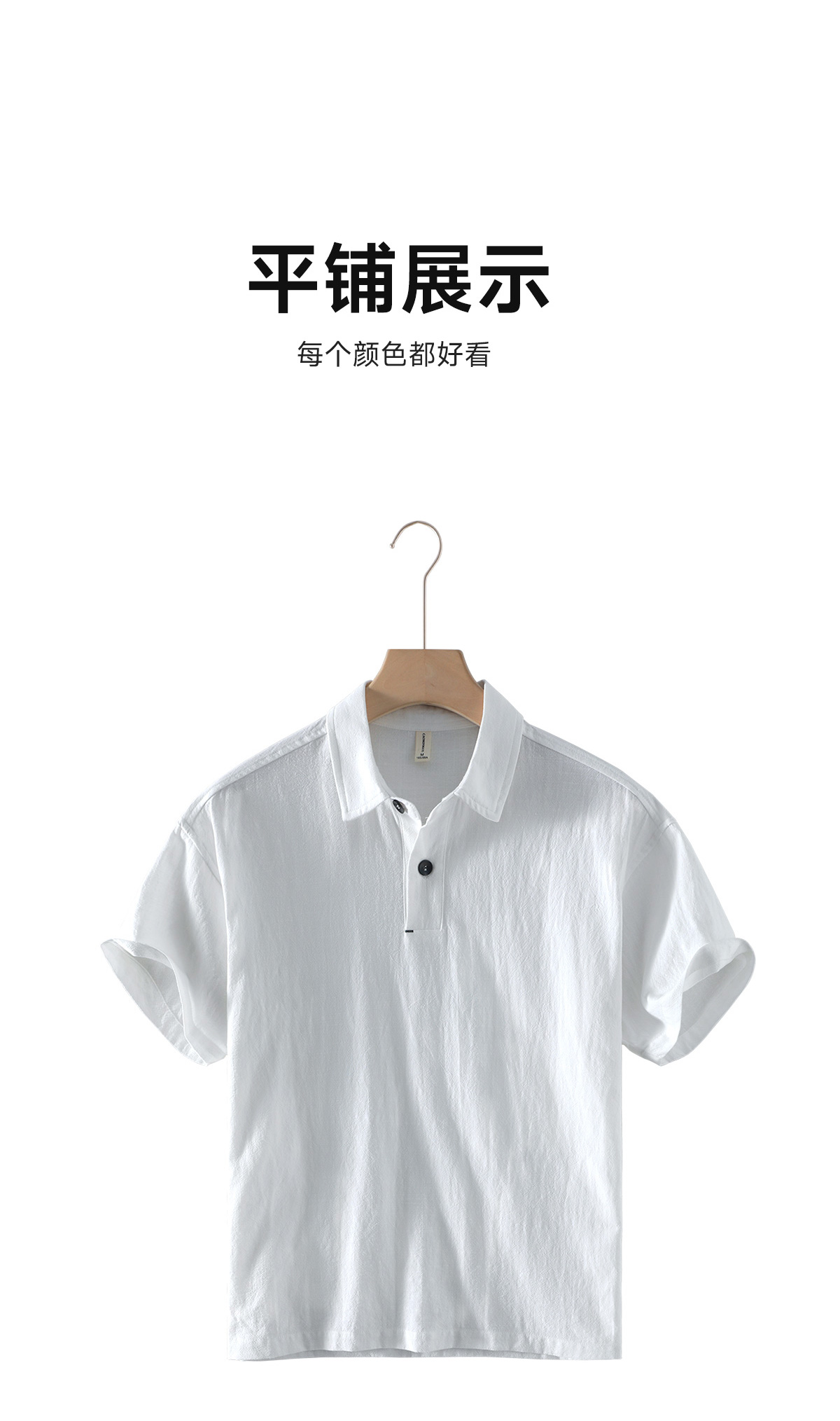 Summer New Men's Linen Short-Sleeved Shirt with Stand Collar, Cotton and Linen Men's Retro Breathable Casual Loose Half-Sleeved Shirt