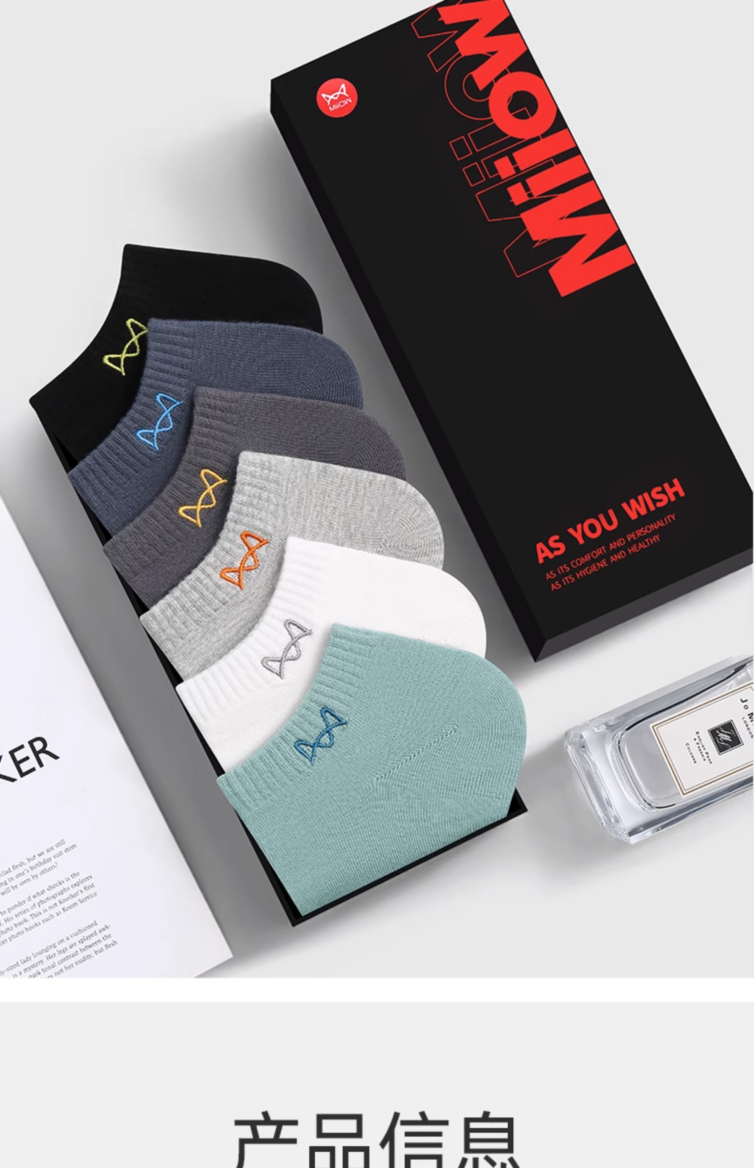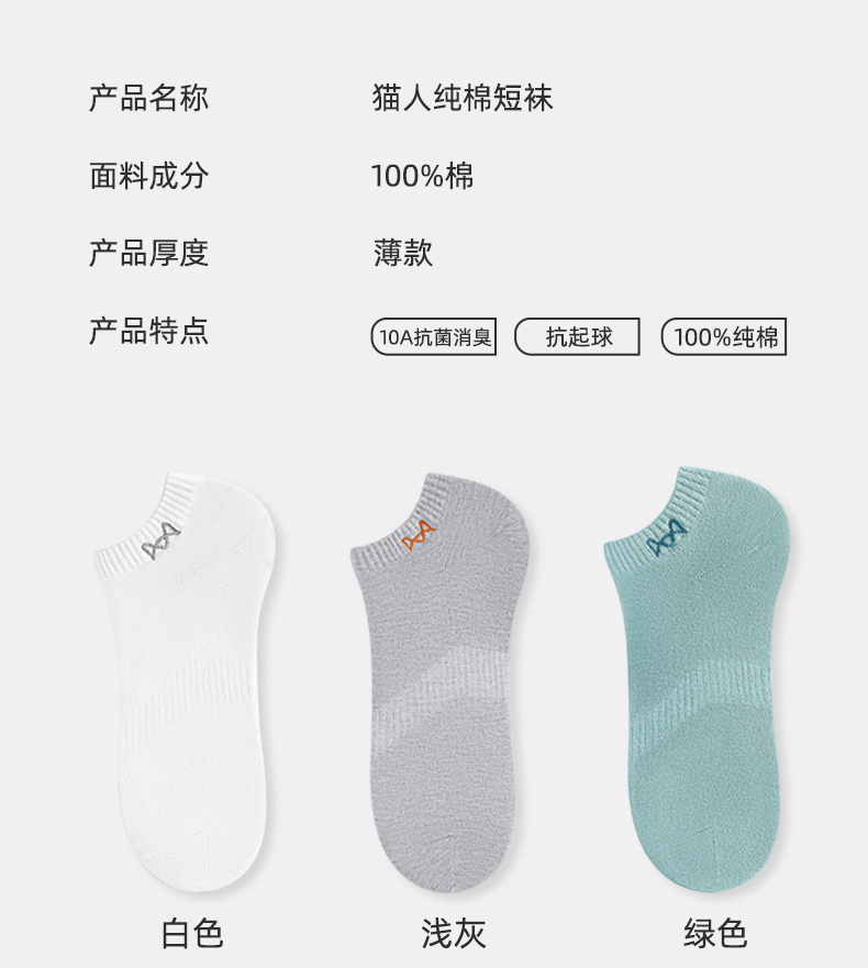 Catman Socks Men's Short Socks Autumn Thin Style 100% Pure Cotton Sweat-Absorbent and Odor-Resistant Winter Men's Sports Breathable Boat Socks