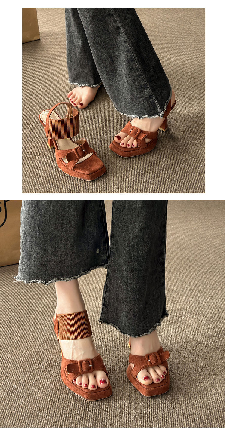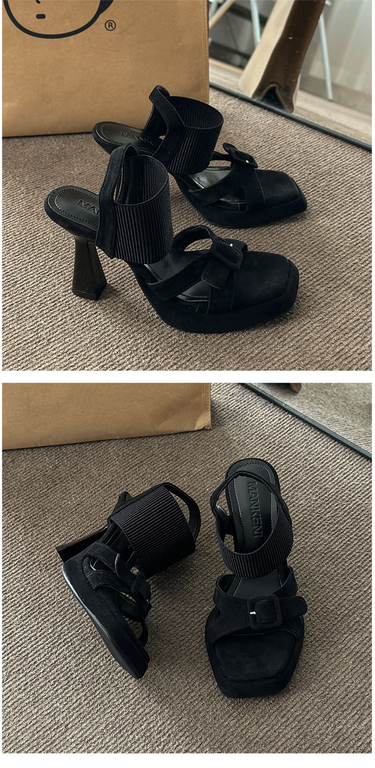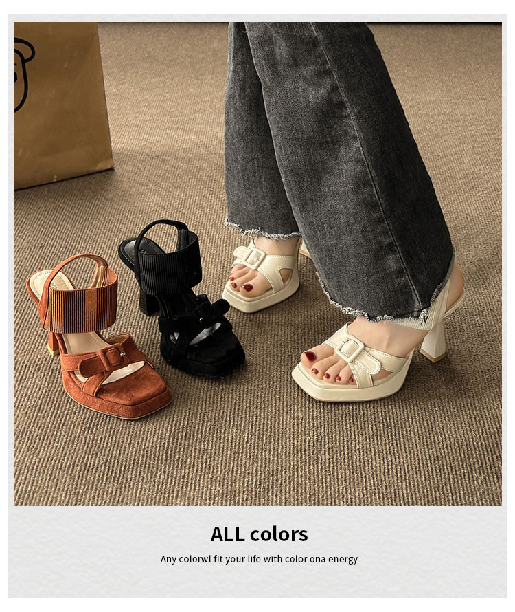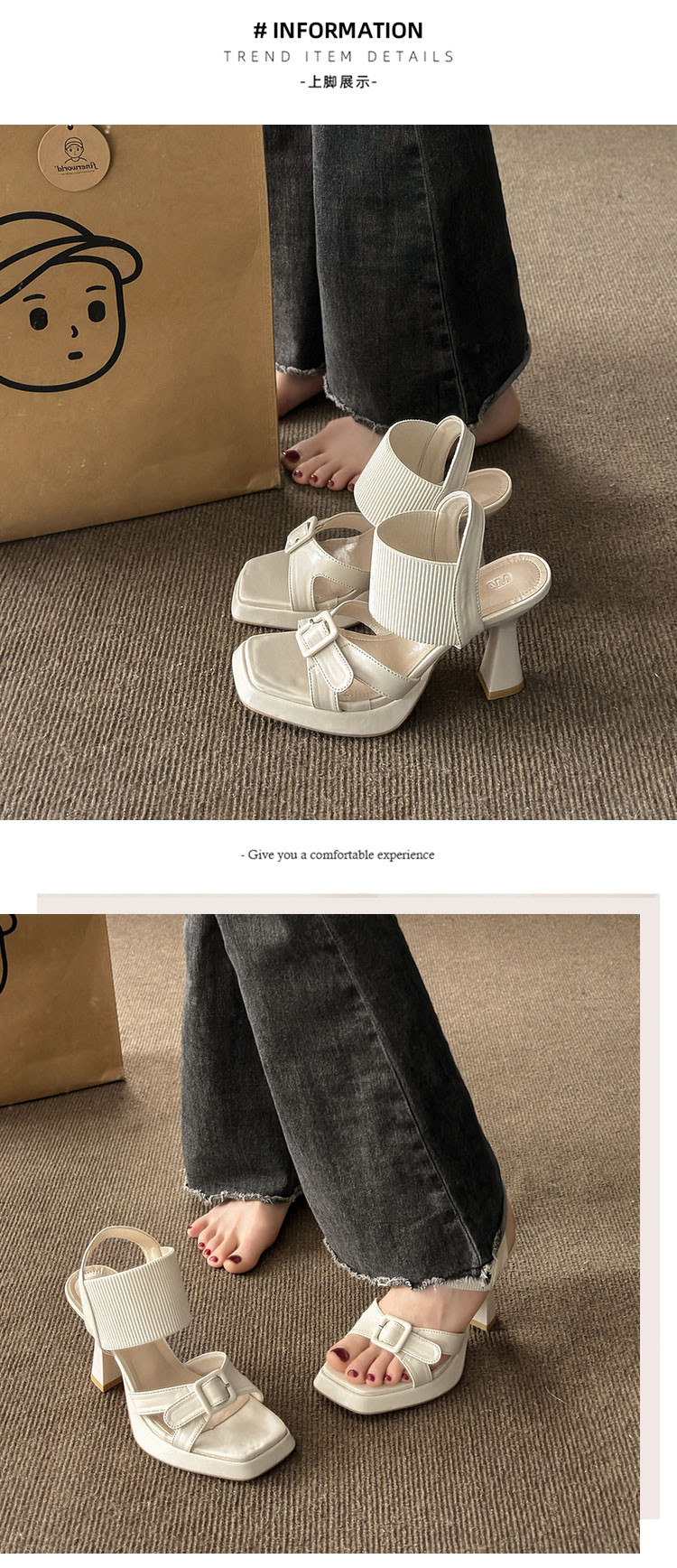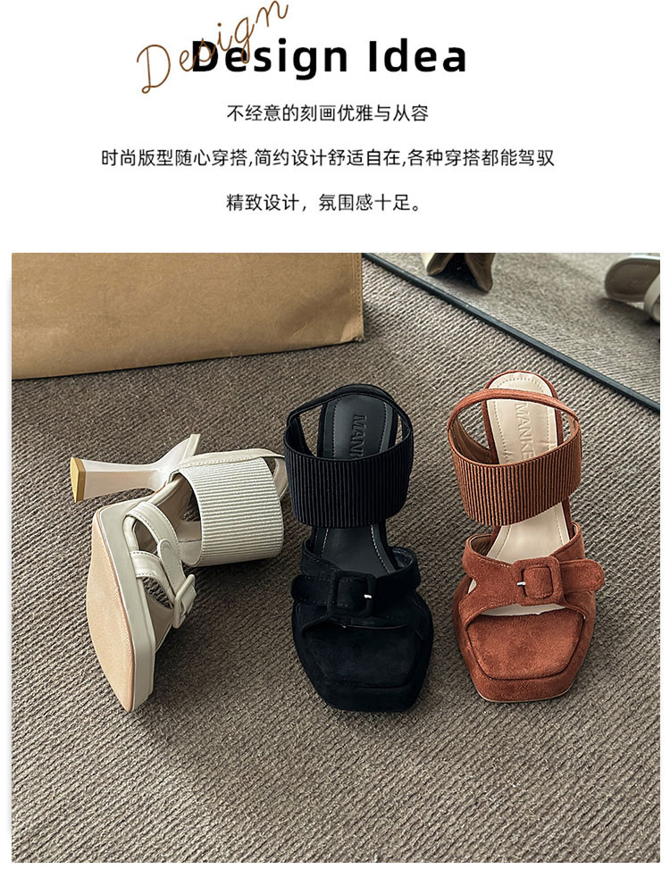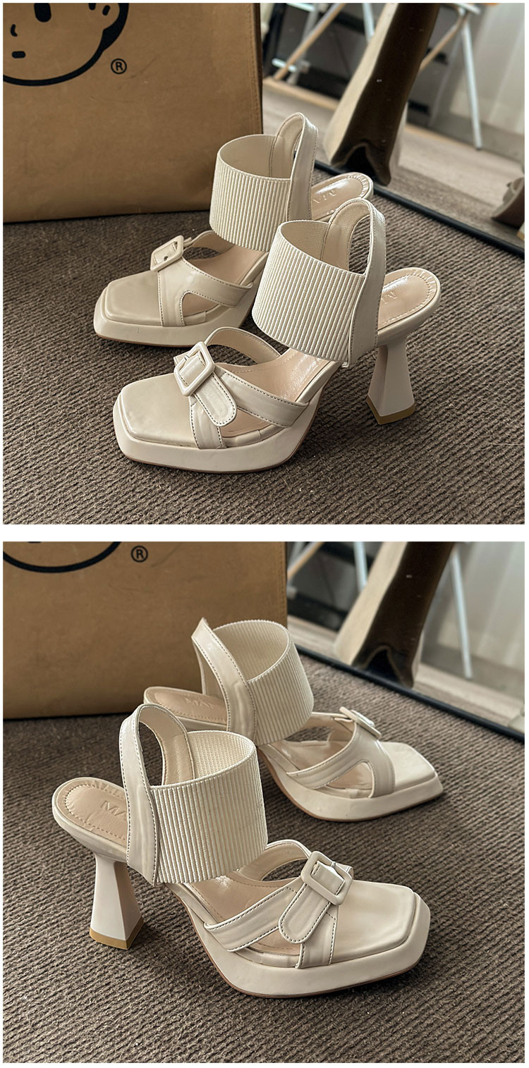 French-Style Waterproof Platform Square-Toe High-Heeled Shoes for Women 2025 Summer New Style Elegant Stiletto Sexy Roman Open-Toe Sandals