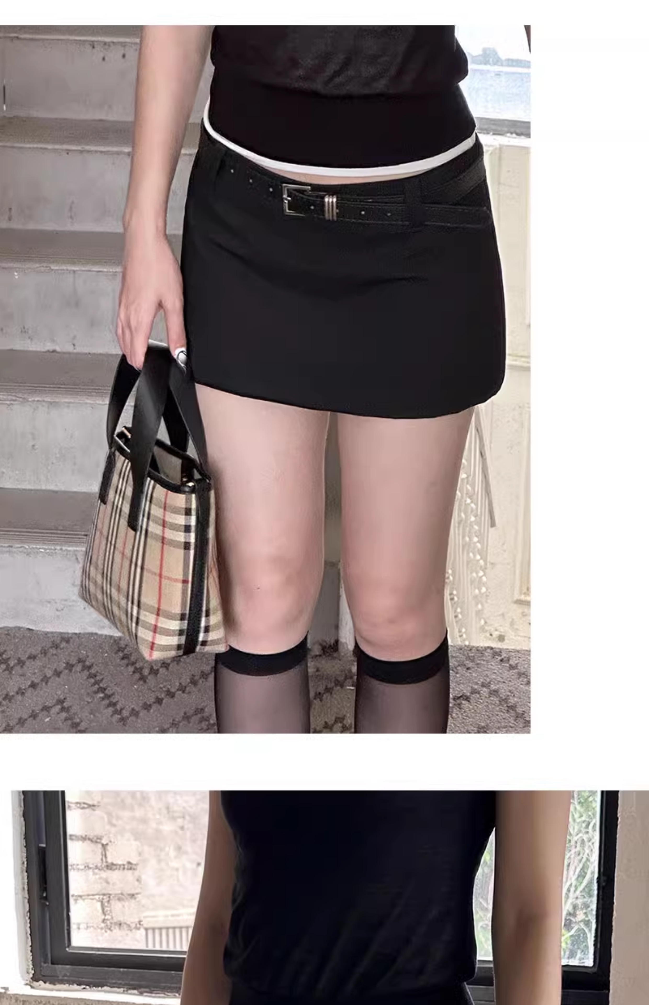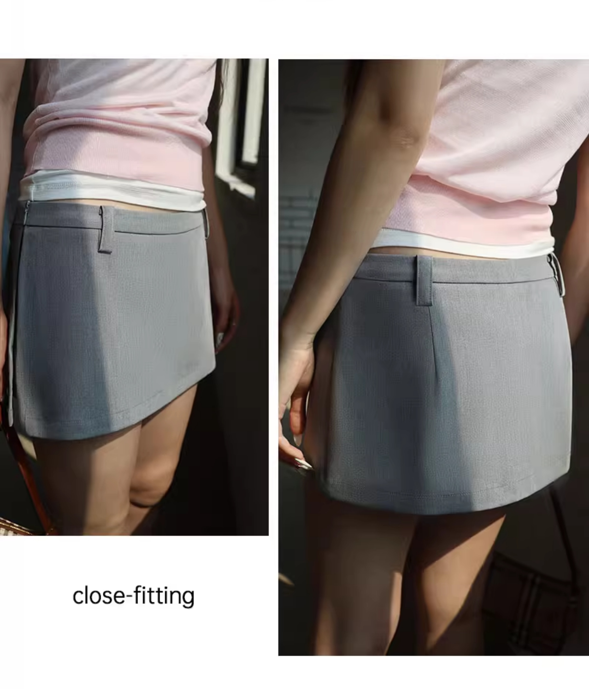 Audwyn Low-Waist Short Skirt 2025 Summer New Style Hot Girl with Built-In Safety Shorts Side Slit Bodycon Slimming Suit Skirt