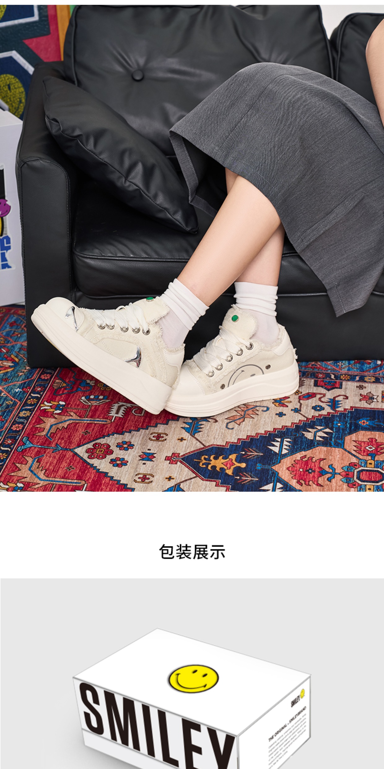 Smiley Smiley Face Shoes Big Toe Shoes Beluga Canvas Shoes Couples Men and Women Thick Sole Heightening Casual Heightening Board Shoes