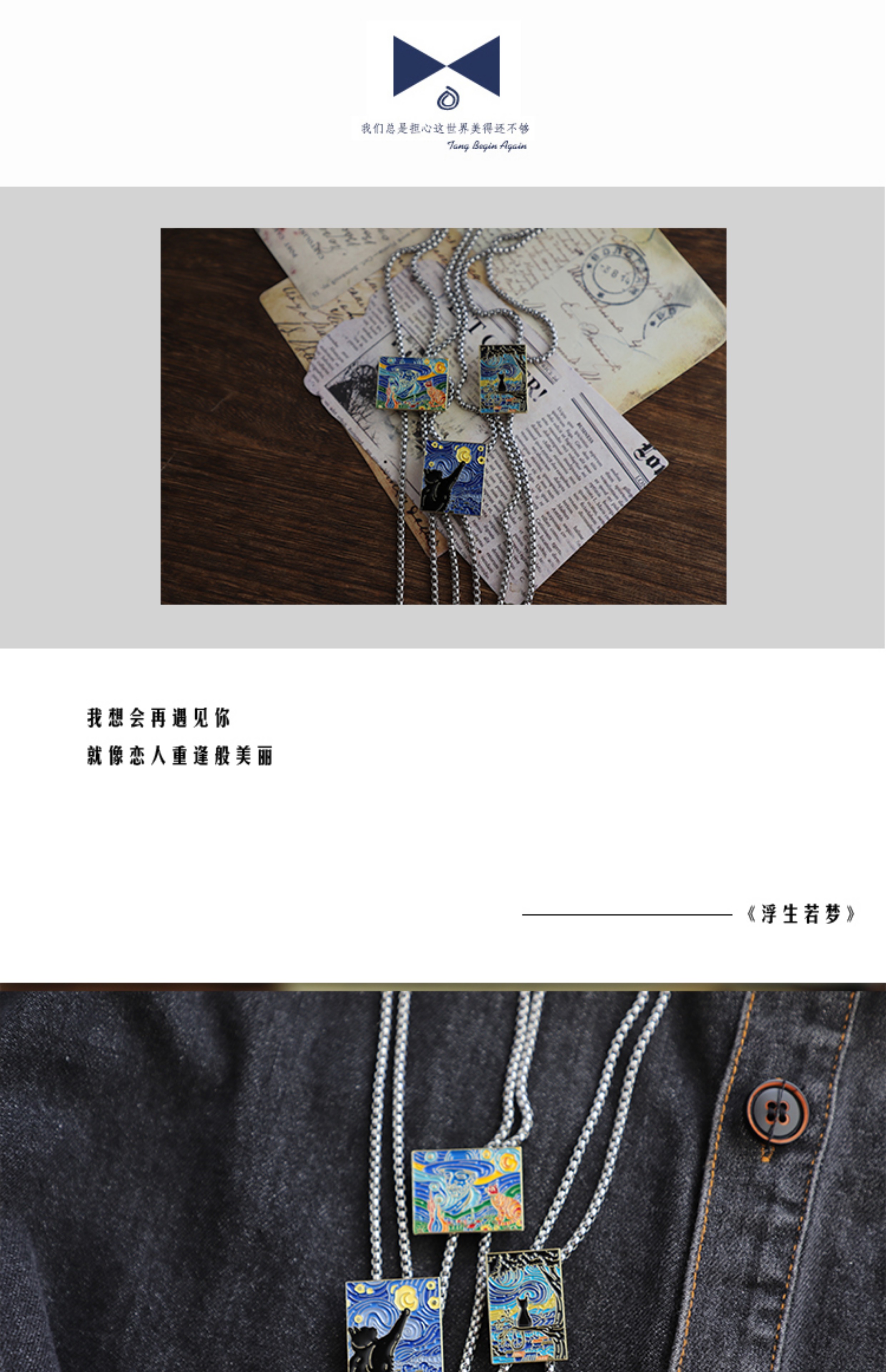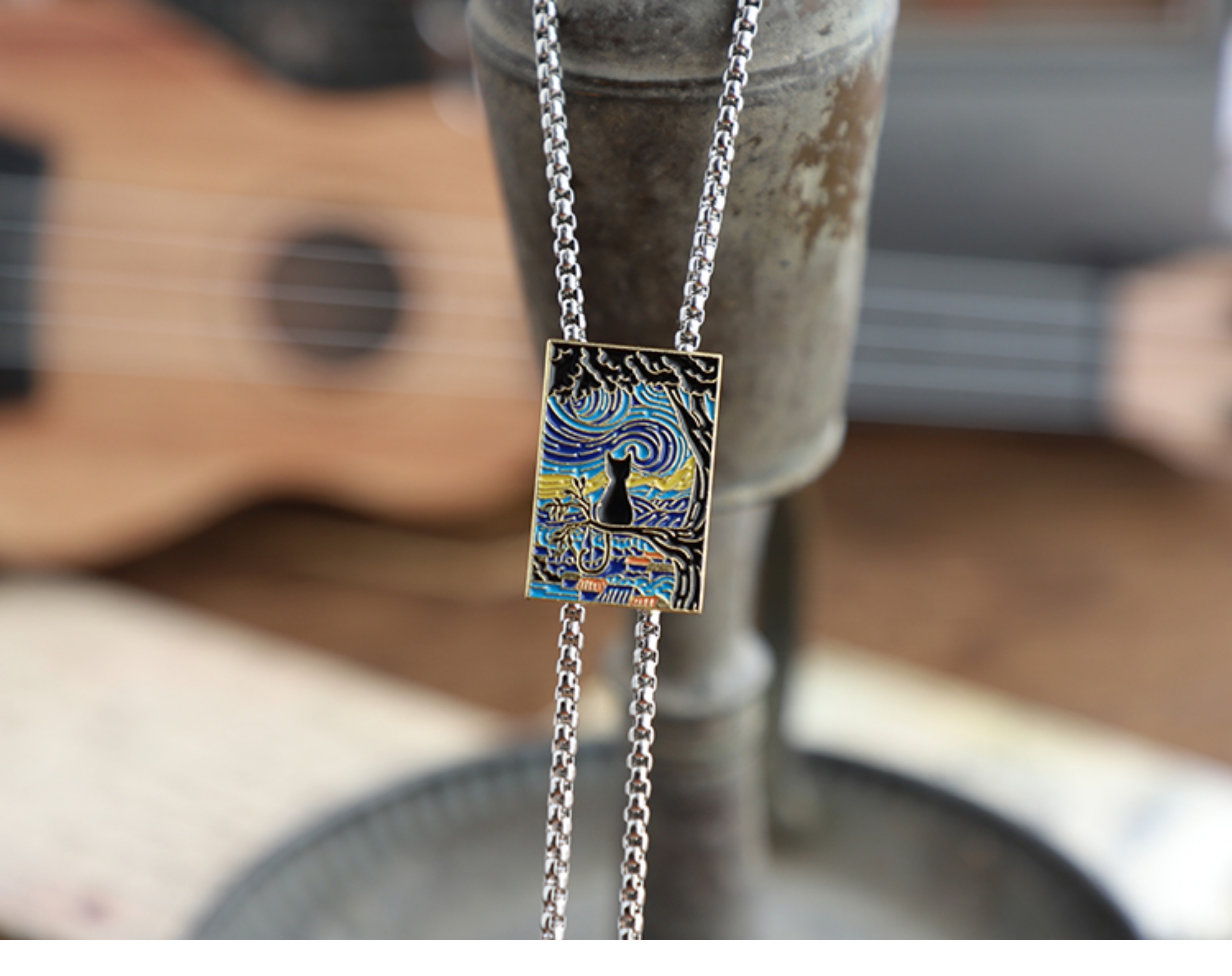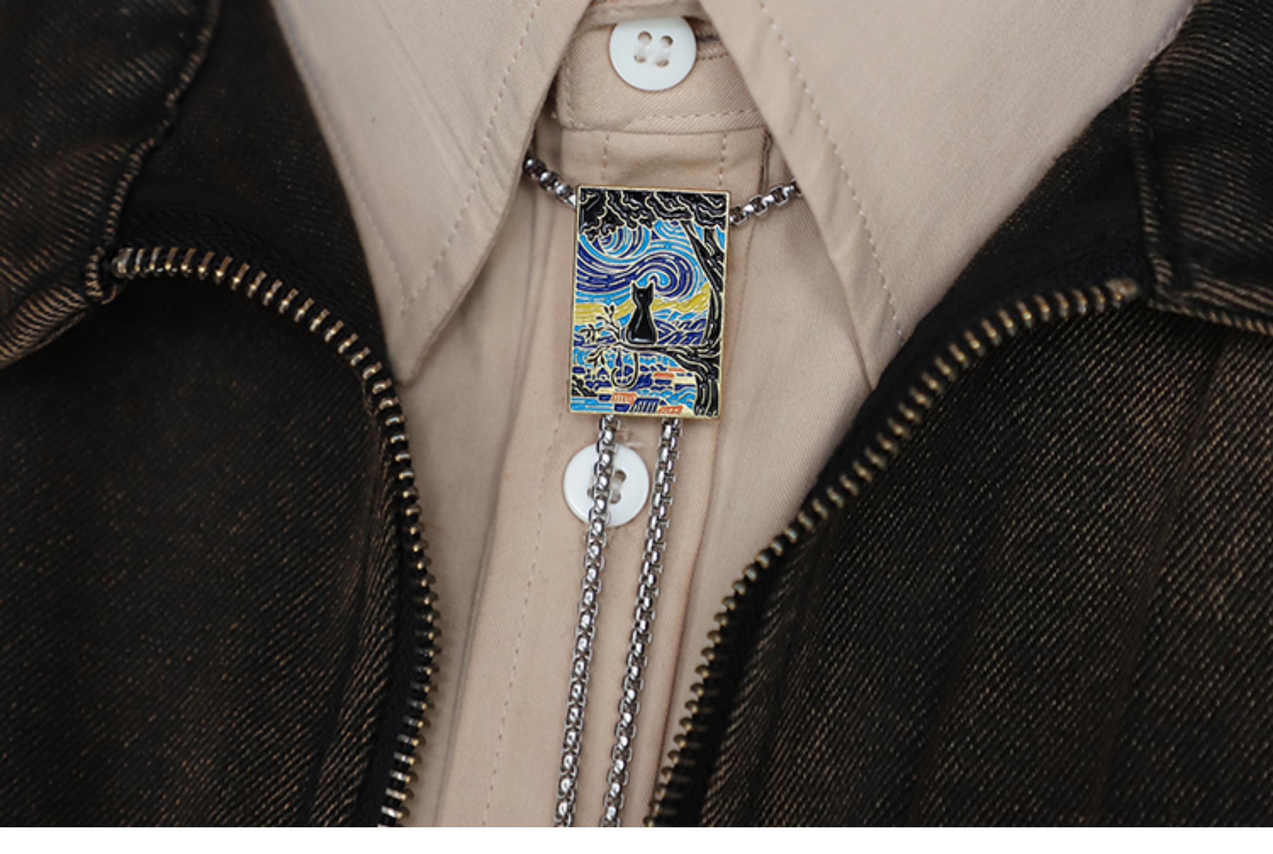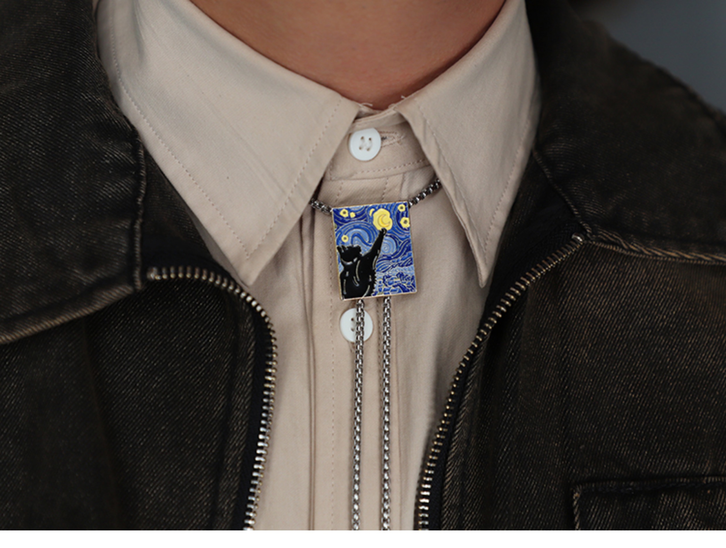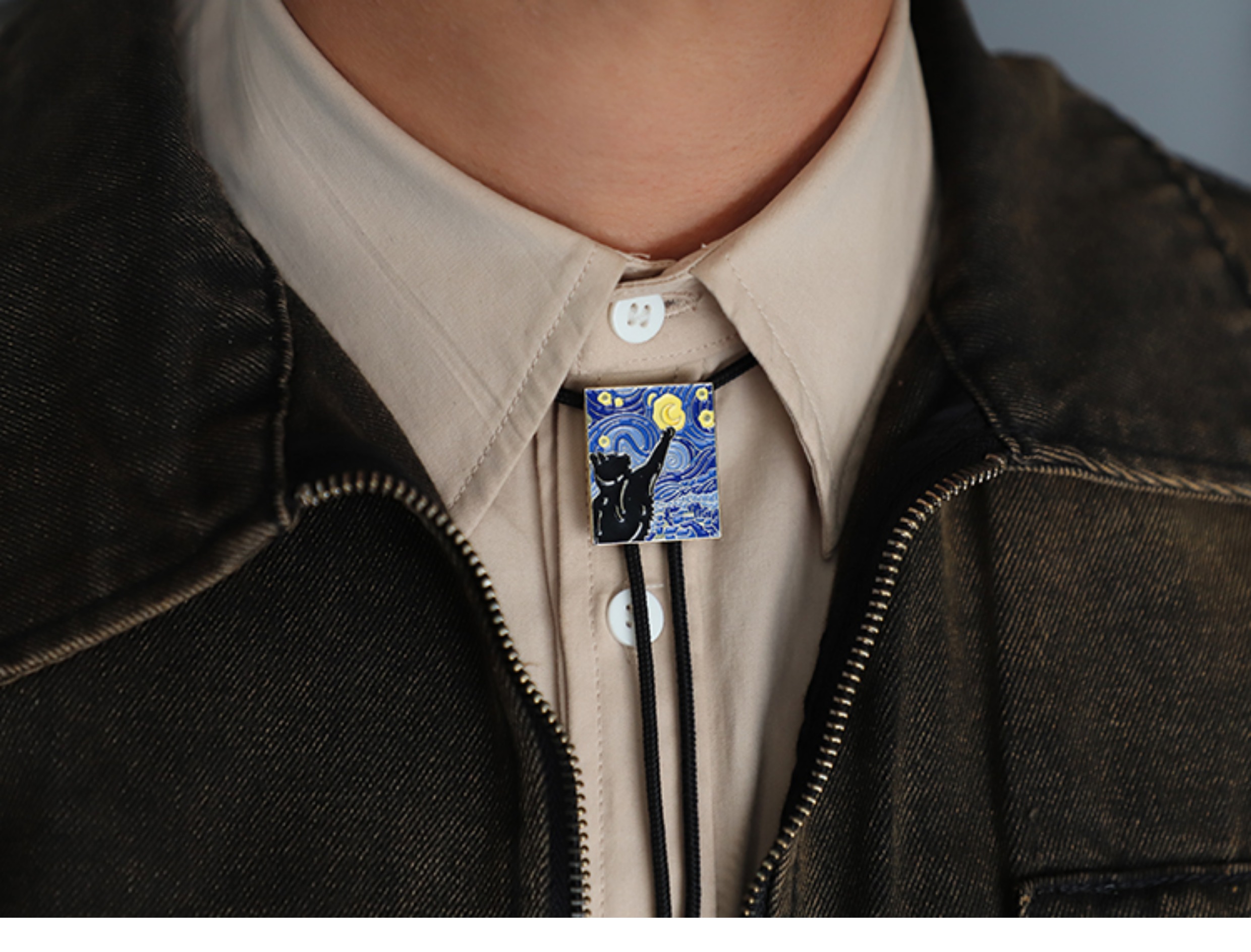 Van Gogh Starry Night Fresh Blue College Style Cat Series Fun Bow Tie for Men and Women Couples Bolotie