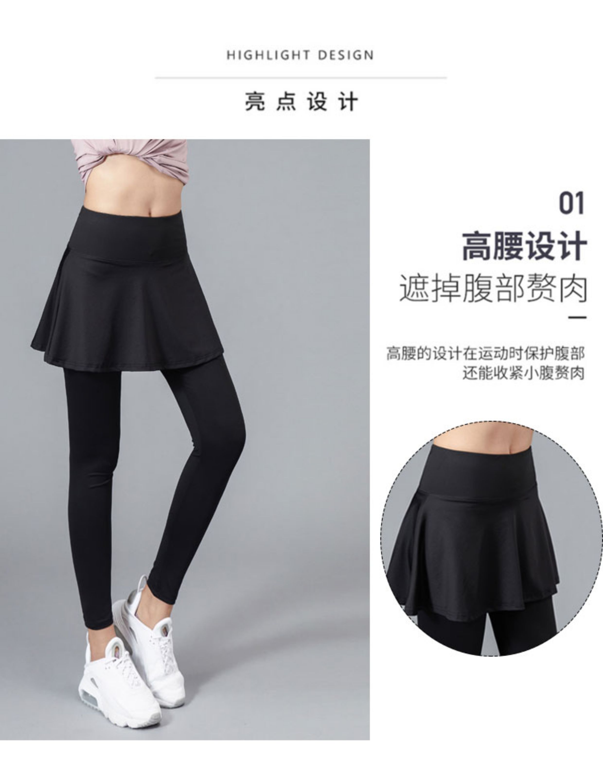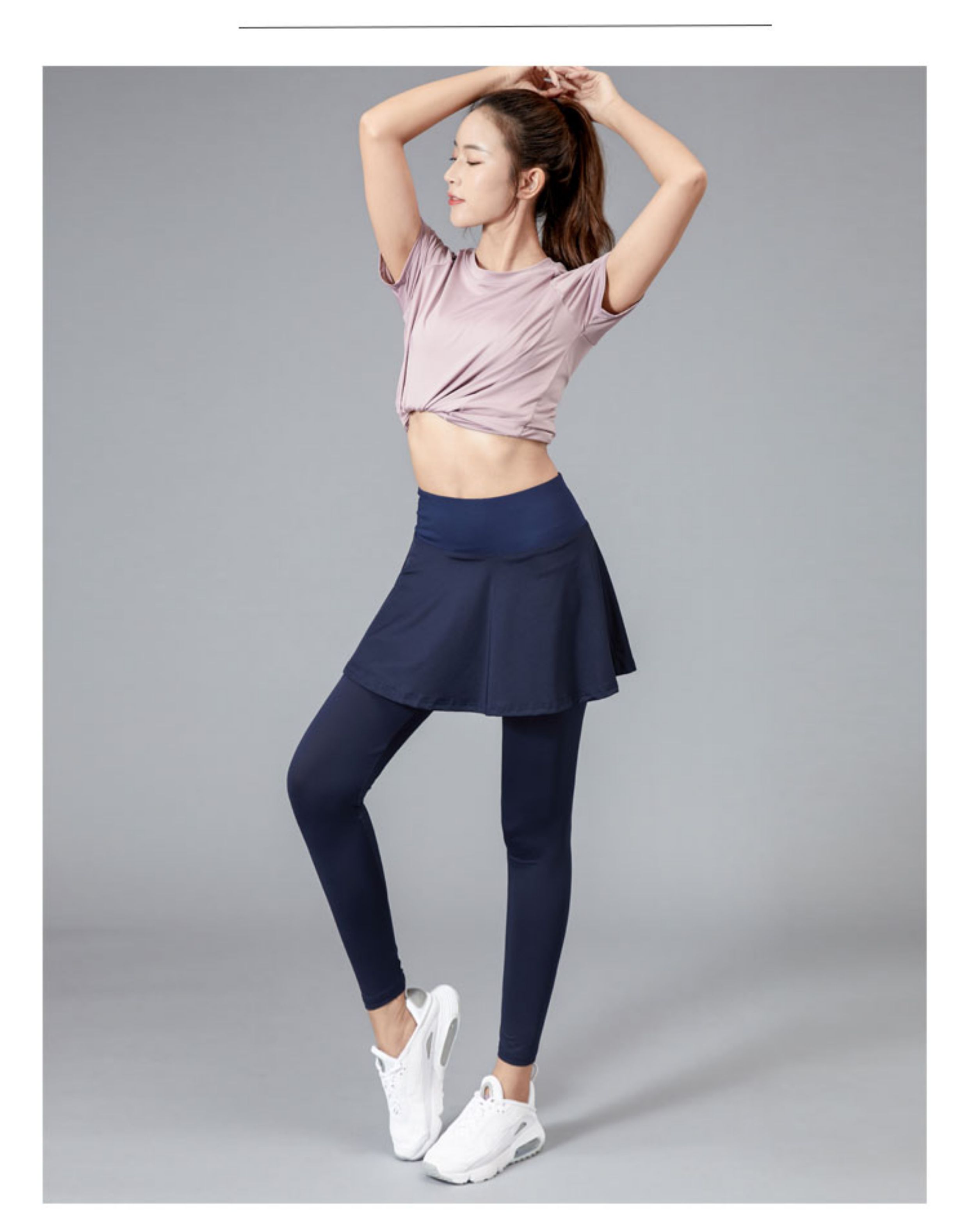 Mdcw Milan Style Sports Skirt Pants for Women, Fake Two-Piece Badminton Tennis Skirt, Yoga Fitness Running Tight Pants