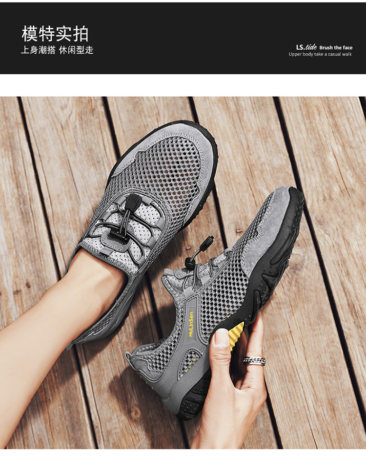 Mullinsen Men's Shoes Sandals Summer Outwear Breathable Mesh Cut Out Dad's Mesh Shoes Plus size Sports Wading Shoes