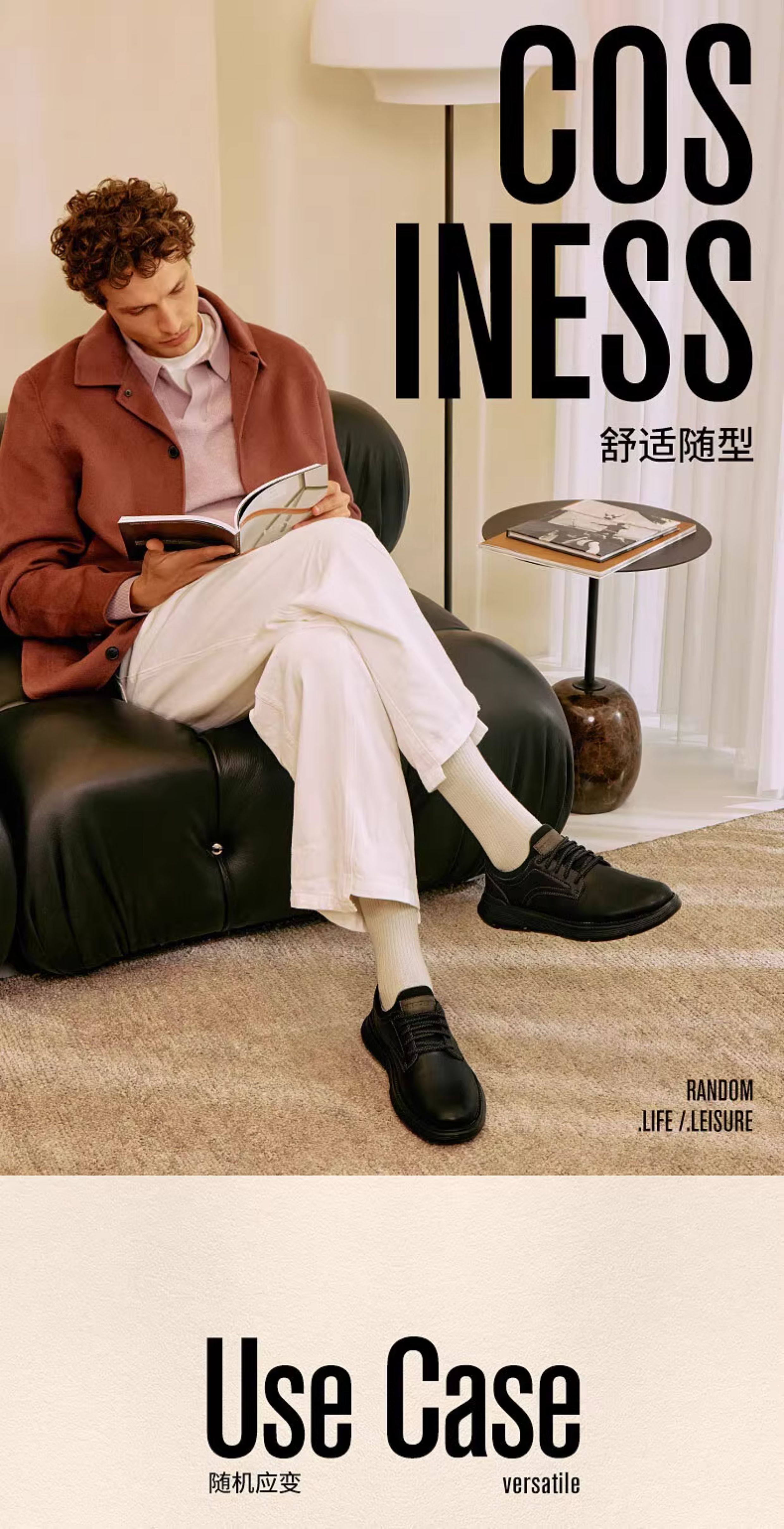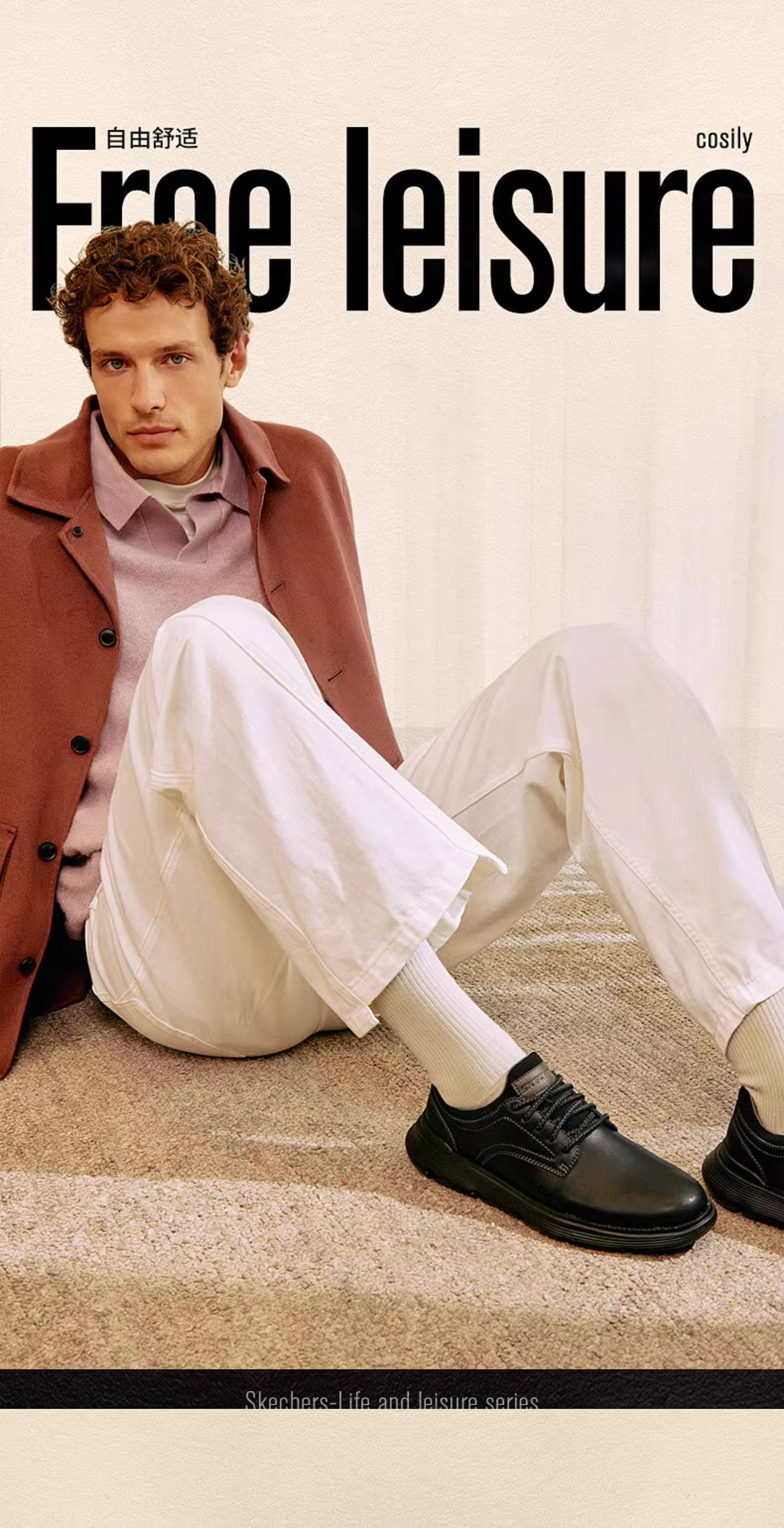 Skechers Skechers New Autumn and Winter Men's Shoes, Business Leather Shoes, Work Clothing Shock-Absorbing Lightweight Casual Shoes 204702