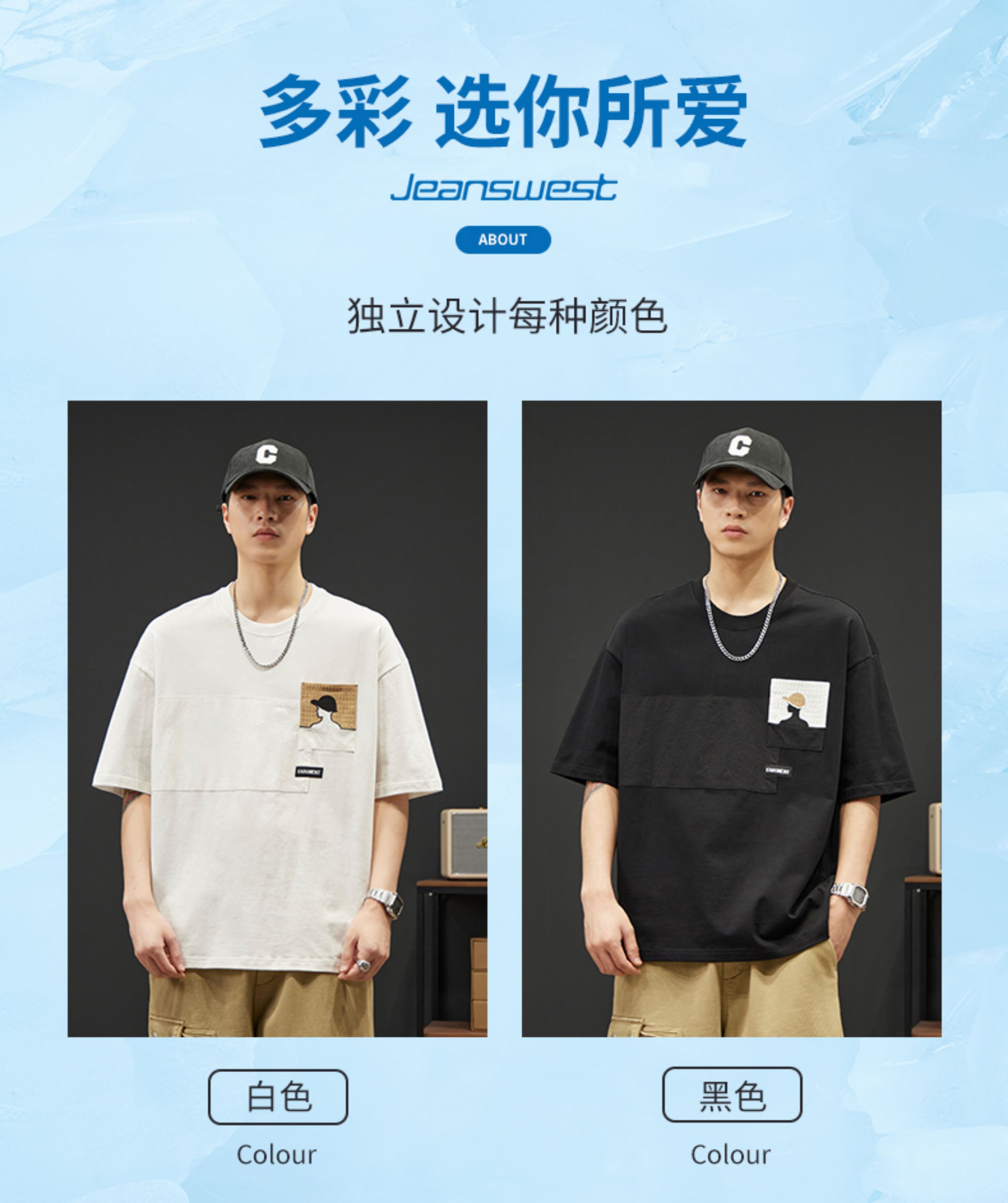 Jeanswest Short-Sleeved T-Shirt for Men, New Summer Style, American Trendy Brand, Cotton Round Neck, Casual Men's Loose Half-Sleeve T-Shirt