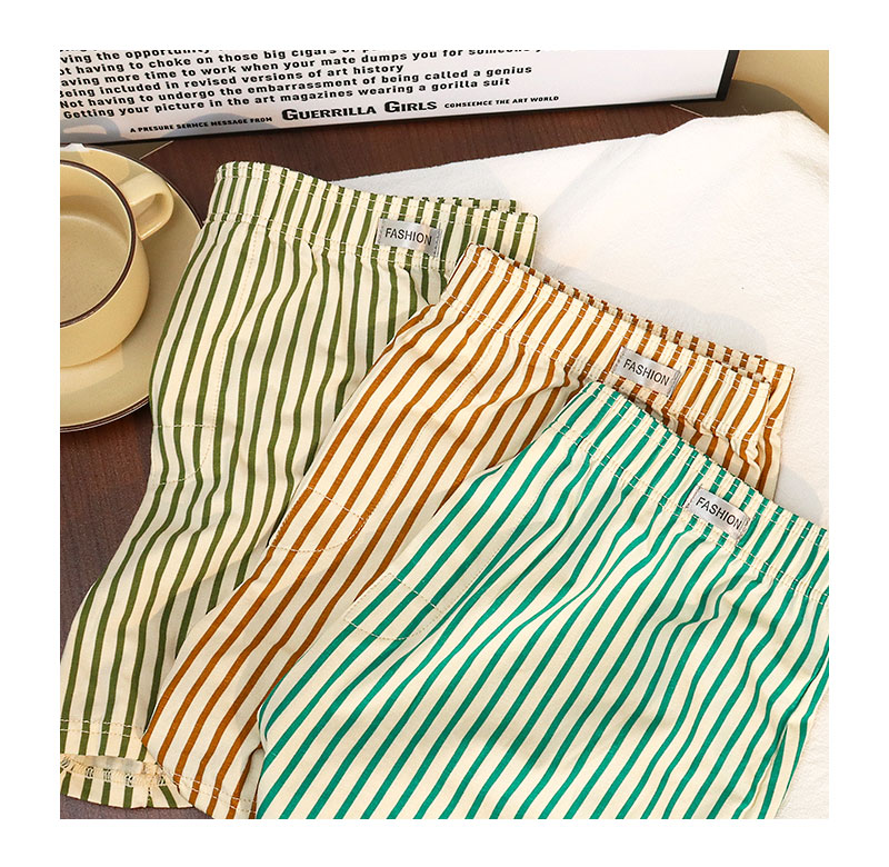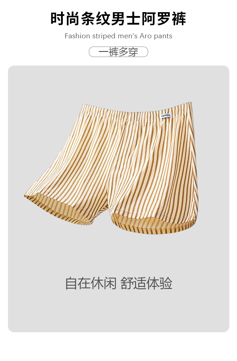 Men's Cotton Boxer Shorts, Large Size, Loose-Fitting, Home Sleepwear, Sports Trendy Striped Underwear, Youth Boxer Briefs