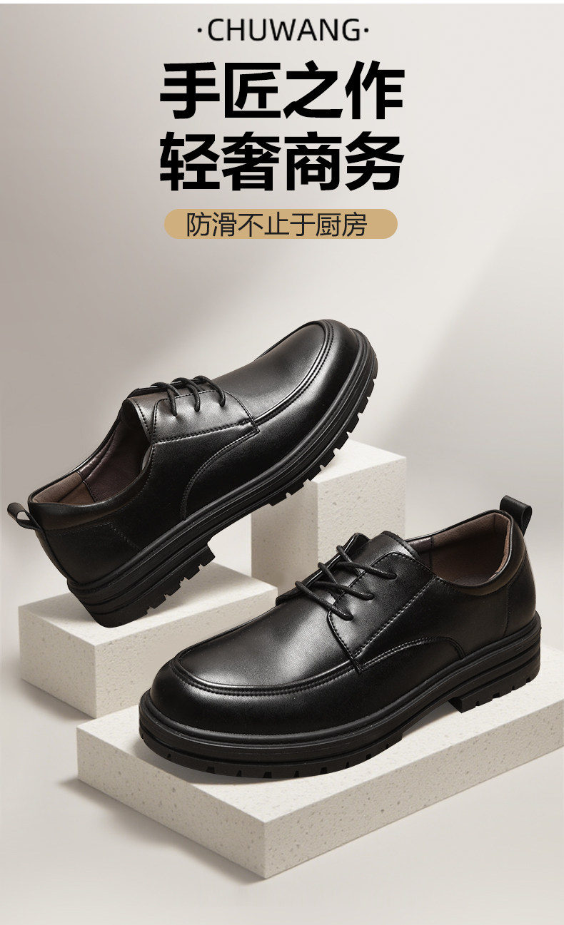 Chef King Non-Slip Chef Shoes, Comfortable Business Casual Leather Shoes, Kitchen Formal Work Shoes for Men, Spring and Summer Executive Chef Shoes