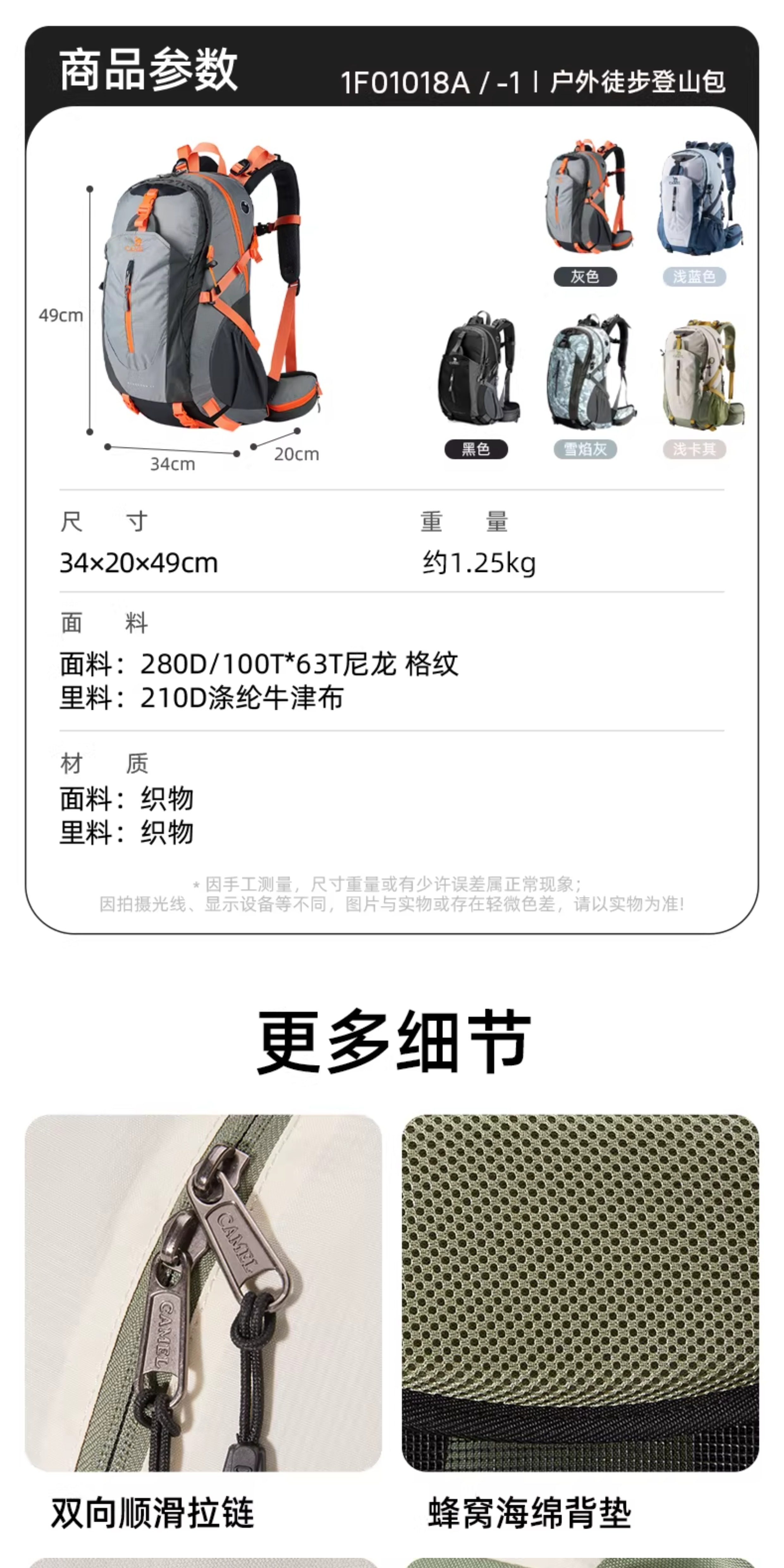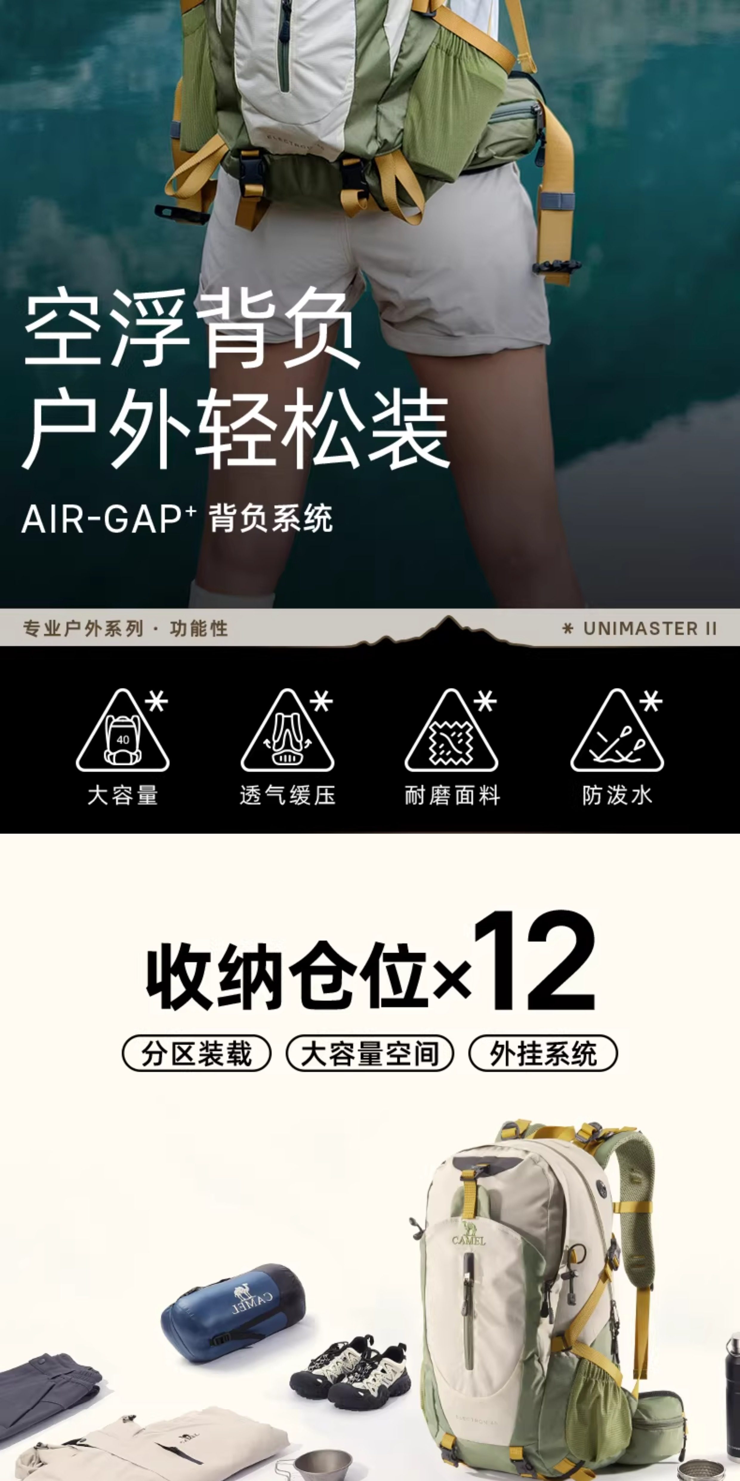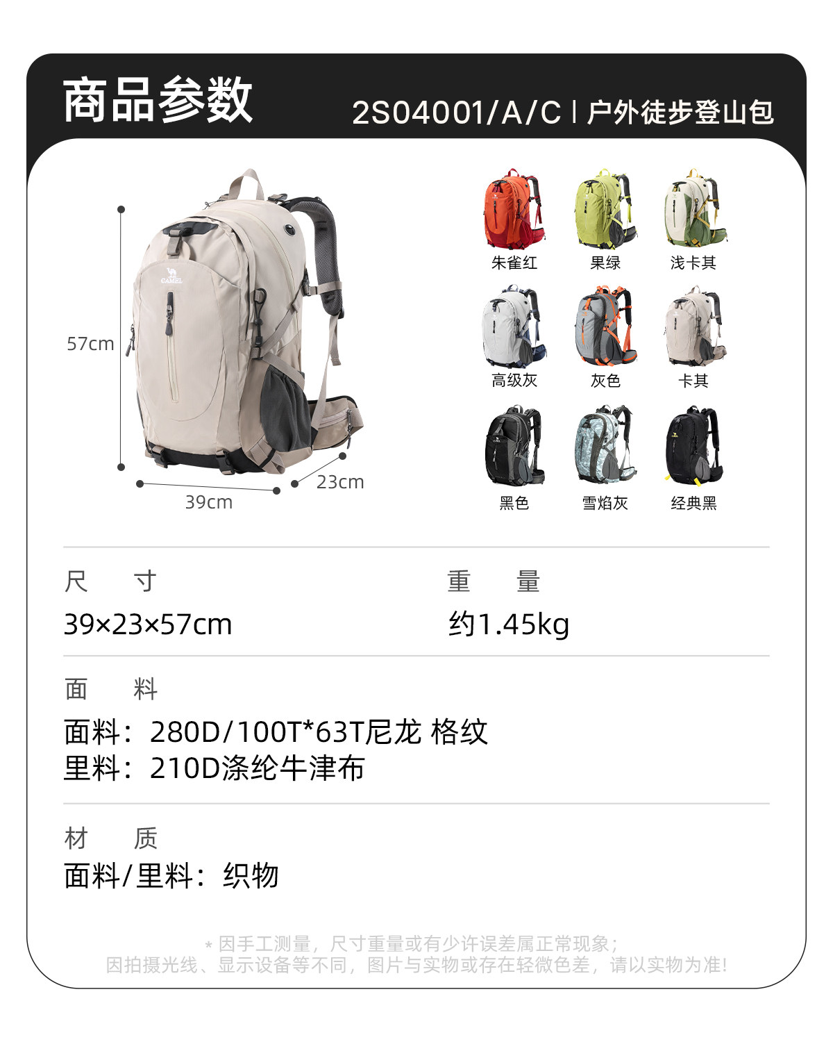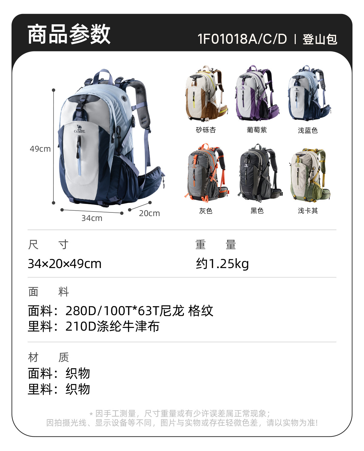 Camel Large-Capacity Outdoor Lightweight Mountaineering Bag Professional Hiking Equipment Women's Hiking Sports Travel Backpack Backpack