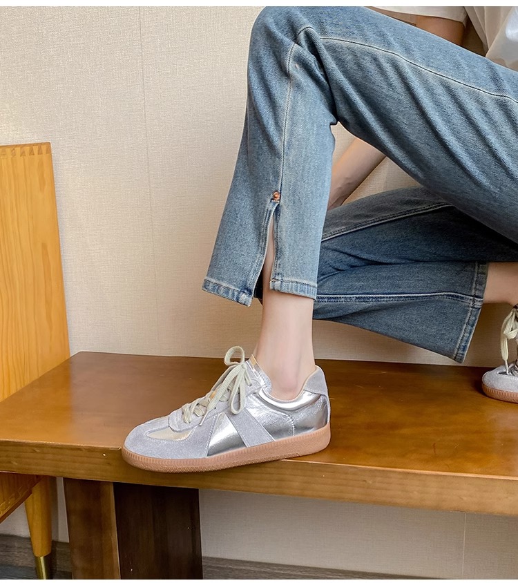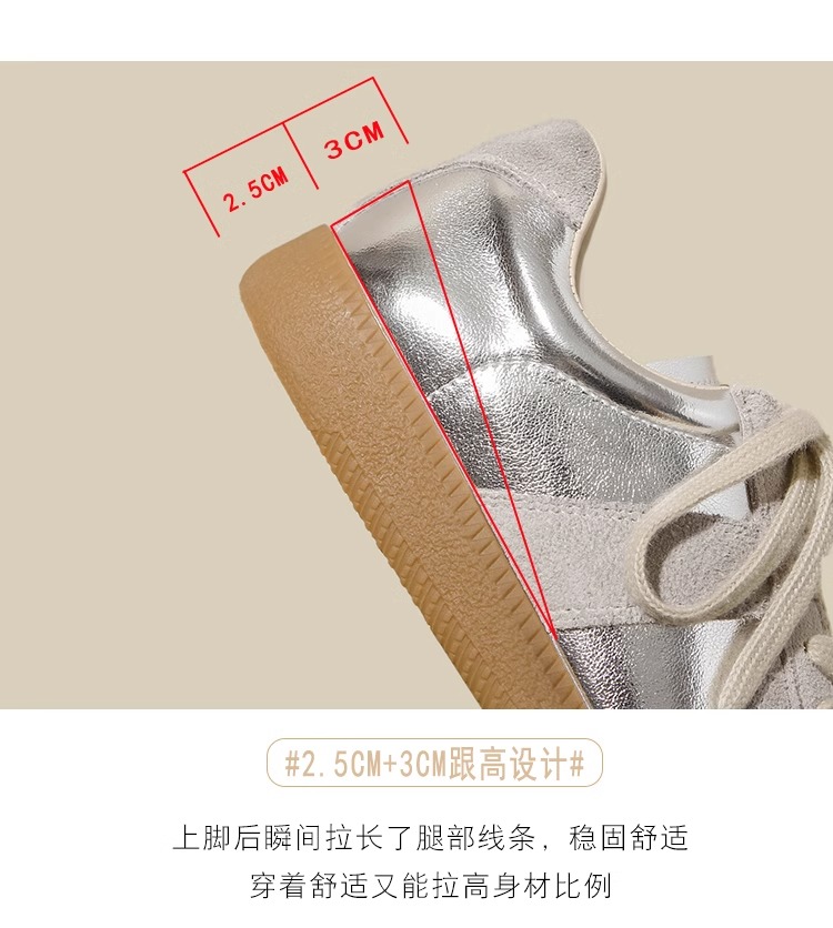 Hong Kong Genuine Leather Height-Increasing Training Shoes for Women 2025 New Autumn and Winter Popular Silver Thick-Soled Casual Sports Sneakers