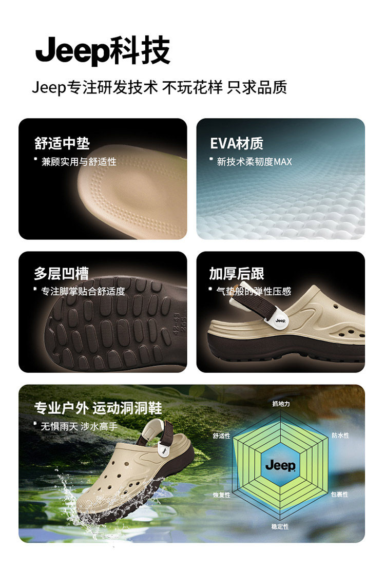 Jeep Men's Water Shoes for Winter Outdoor Wear 2025 New Thick-Soled Clogs Men's Non-Slip Water-Resistant Sandals
