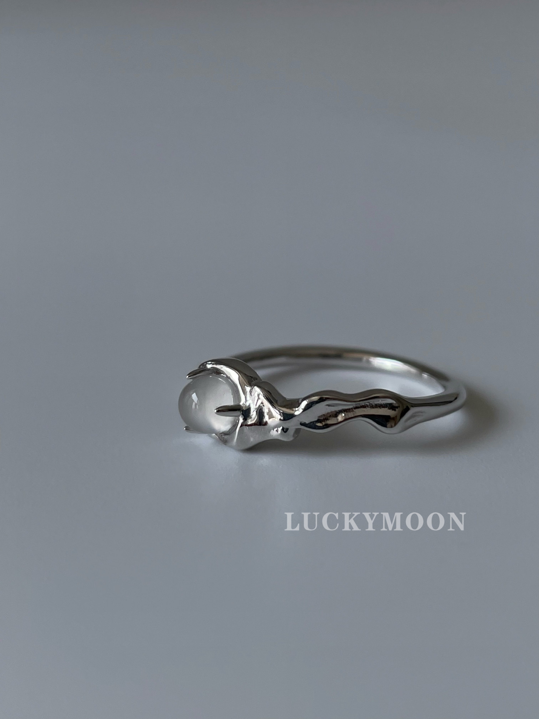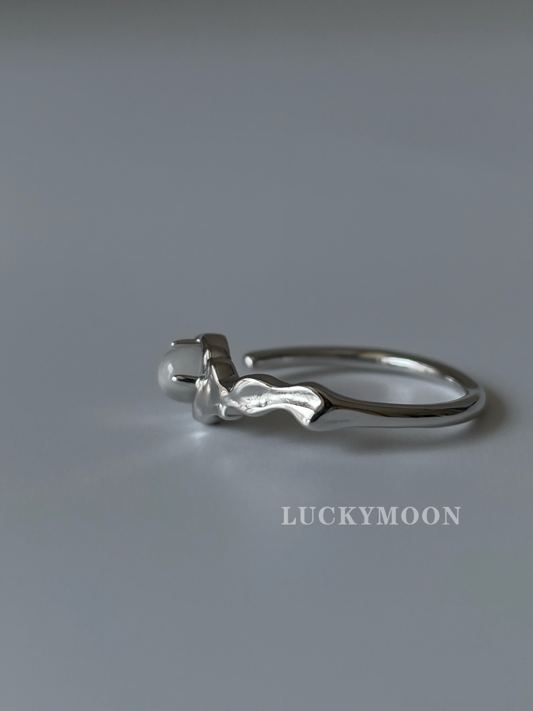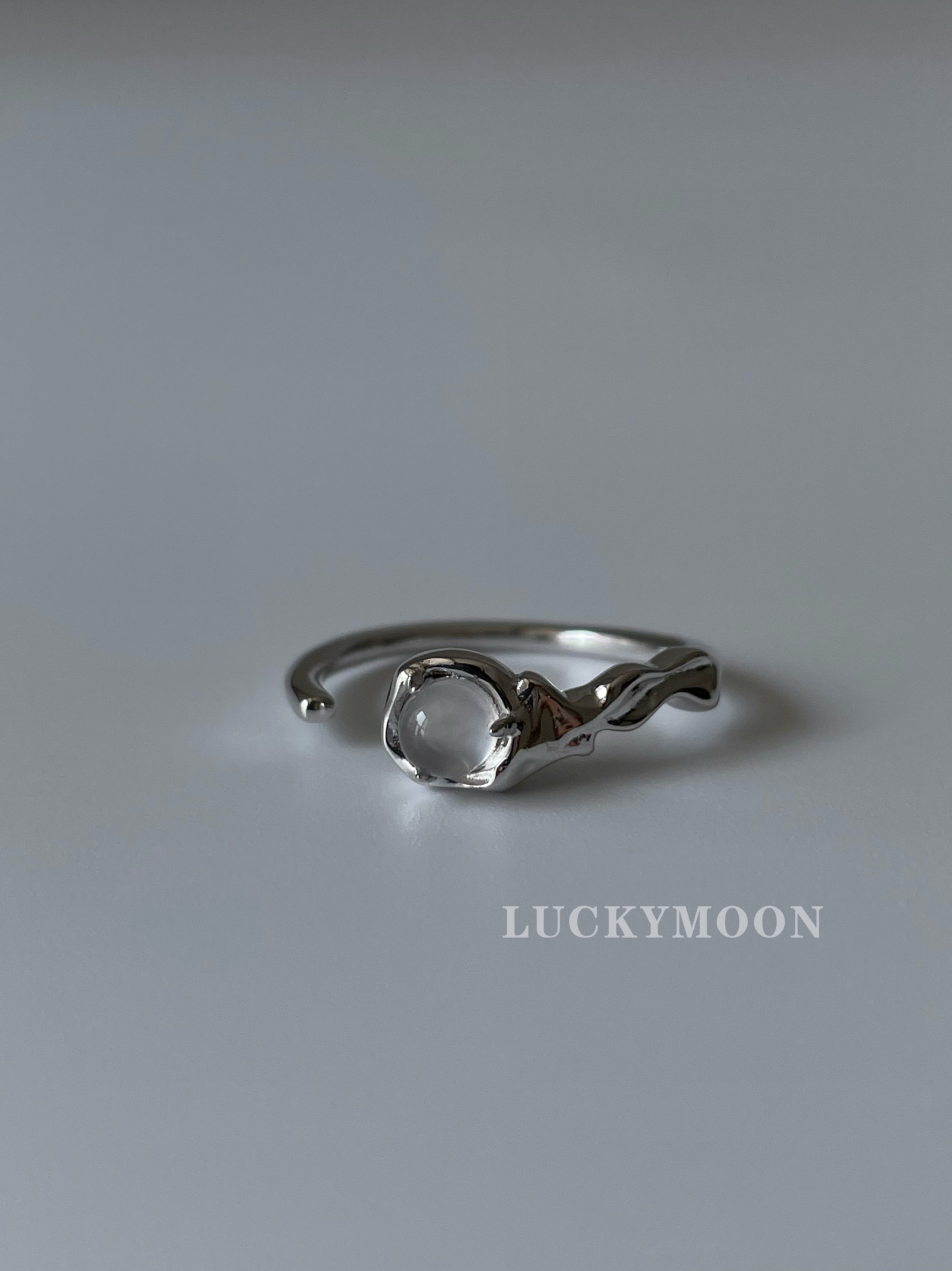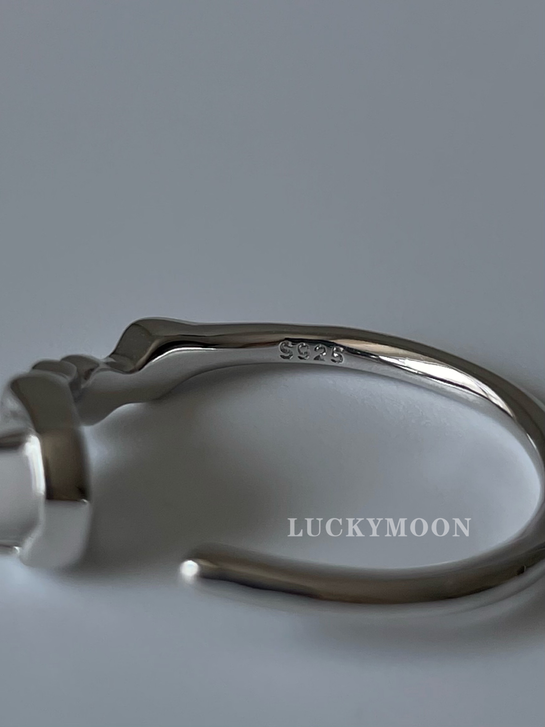 Luckymoon Textured Niche Personalized Crystal Inlaid Open Ring S925 All-Over Sterling Silver R240