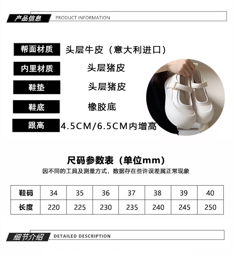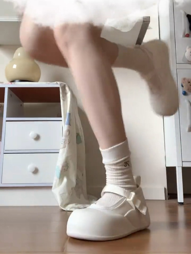 Hong Kong Thick-Soled Genuine Leather Mary Jane Shoes for Women, Breathable, 2025 Spring and Autumn, Height-Increasing White Shoes, Soft-Soled, Cute and Quirky Single Shoes