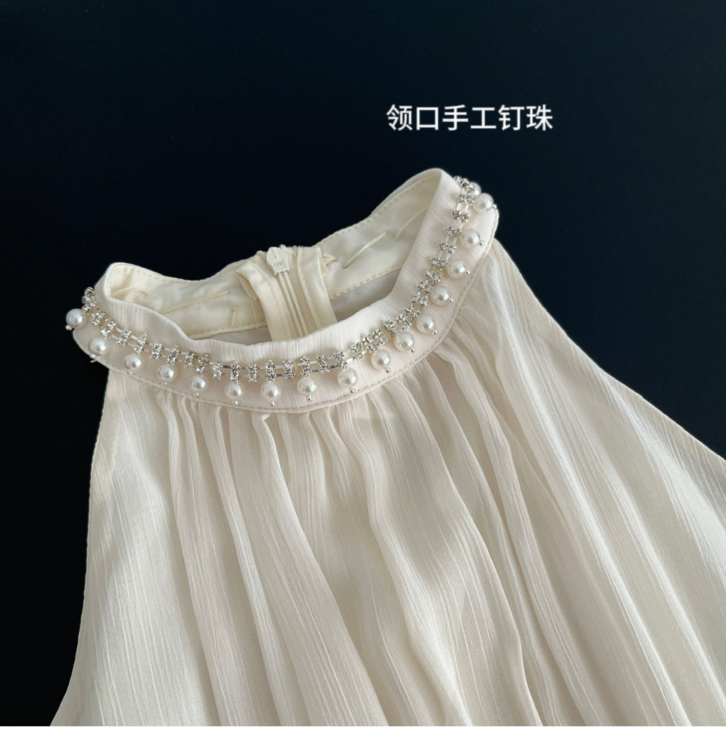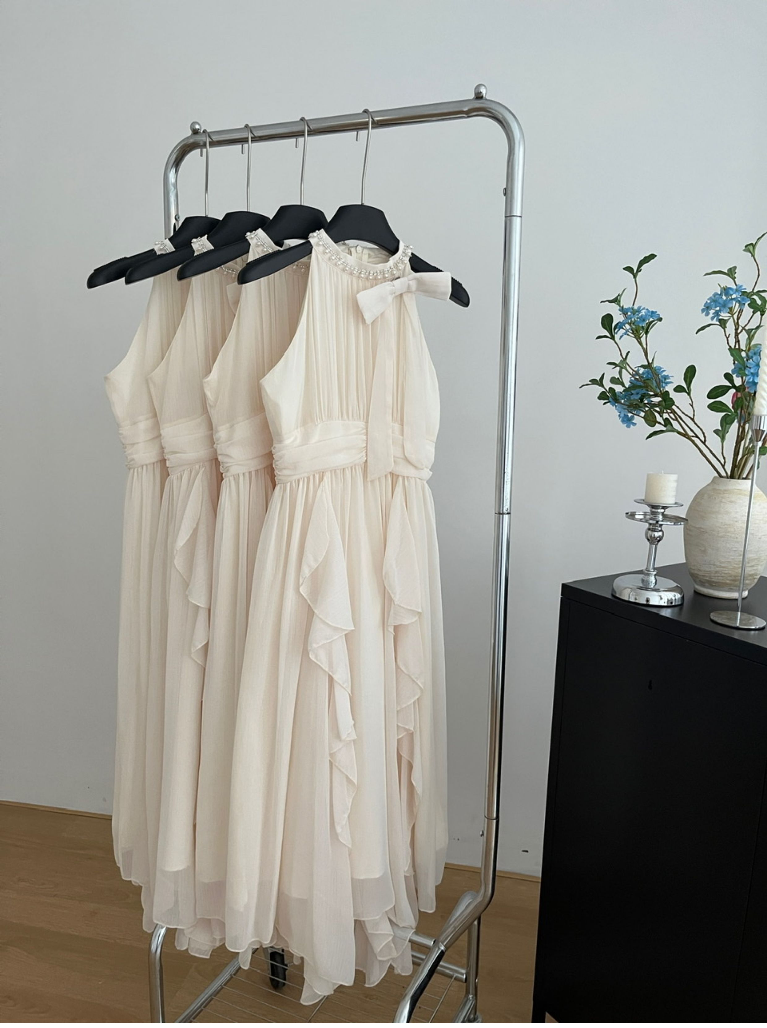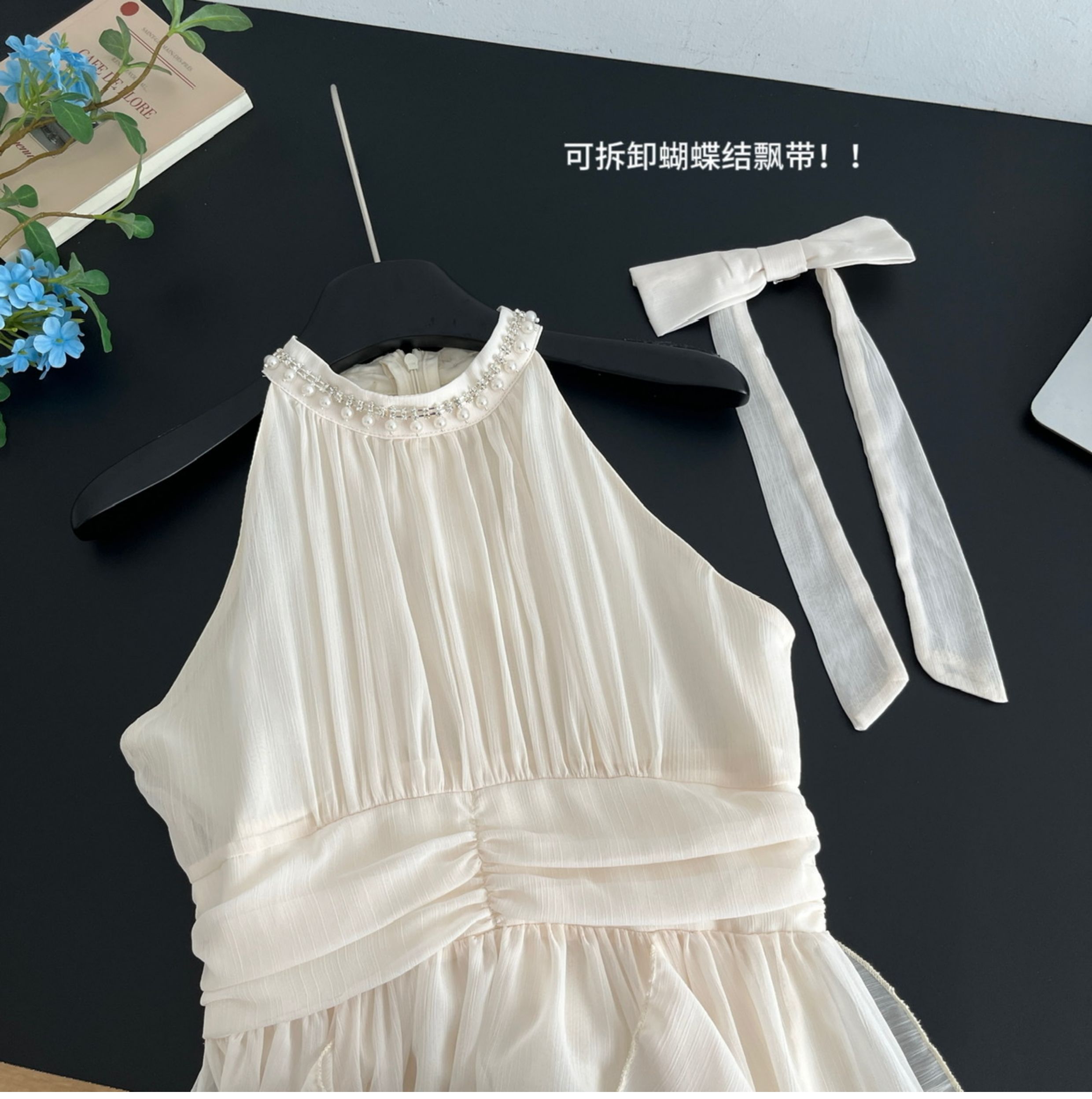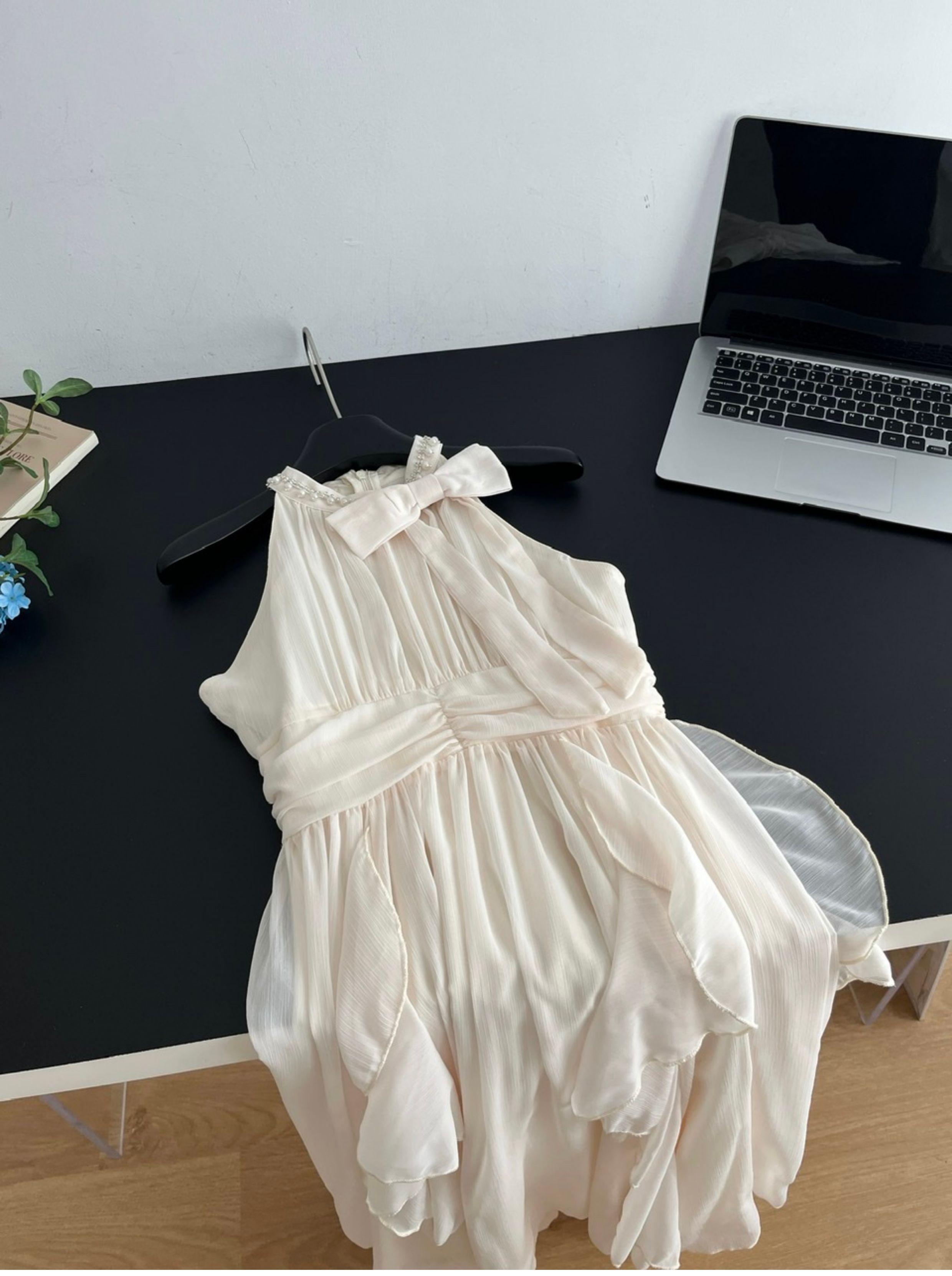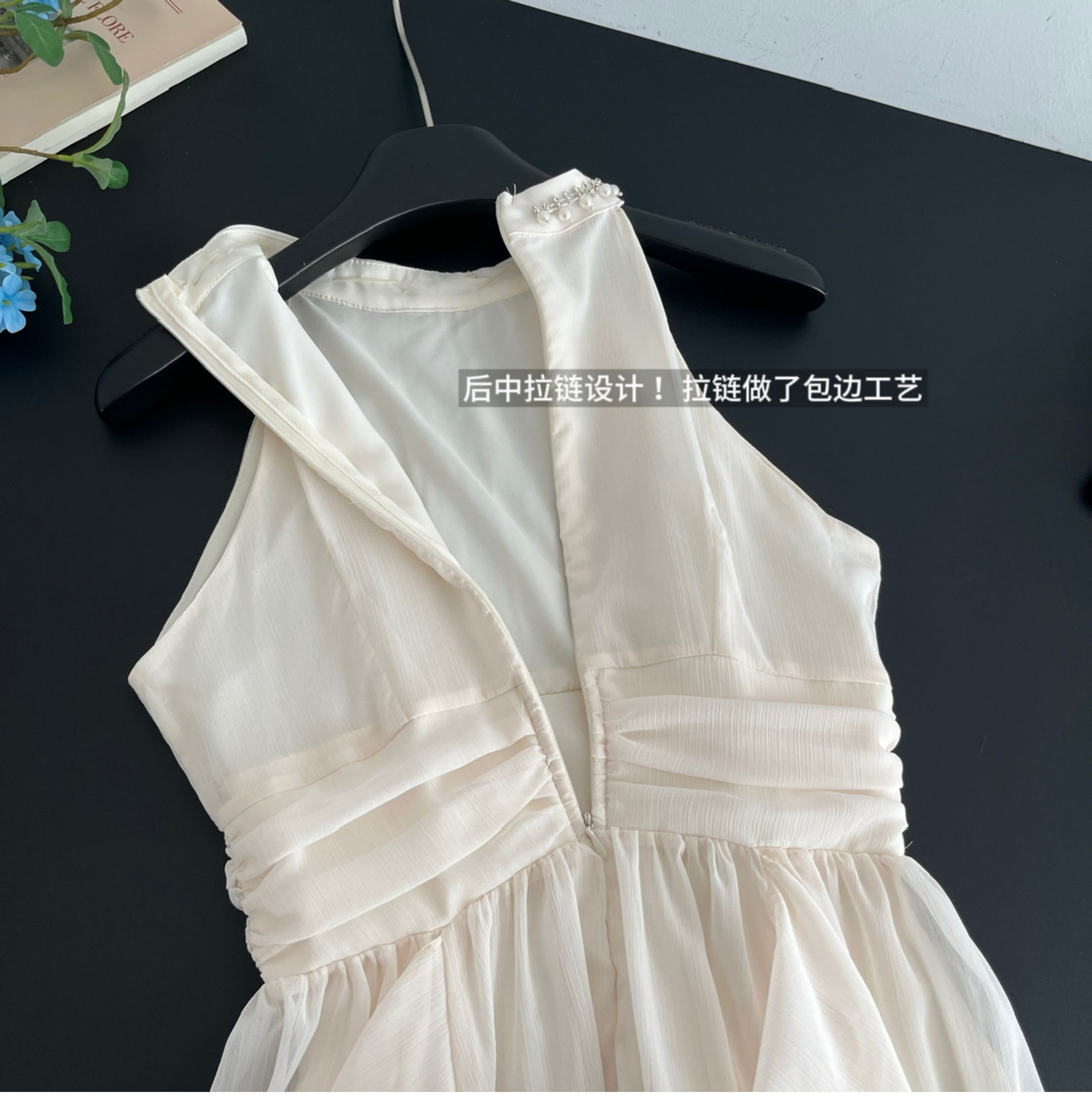 Peach LAOSHU Changdao Fragrance Sleeveless Halter Neck Dress with Waist-Cinching Ruffle French Long Dress