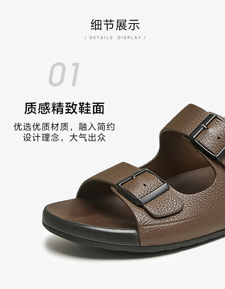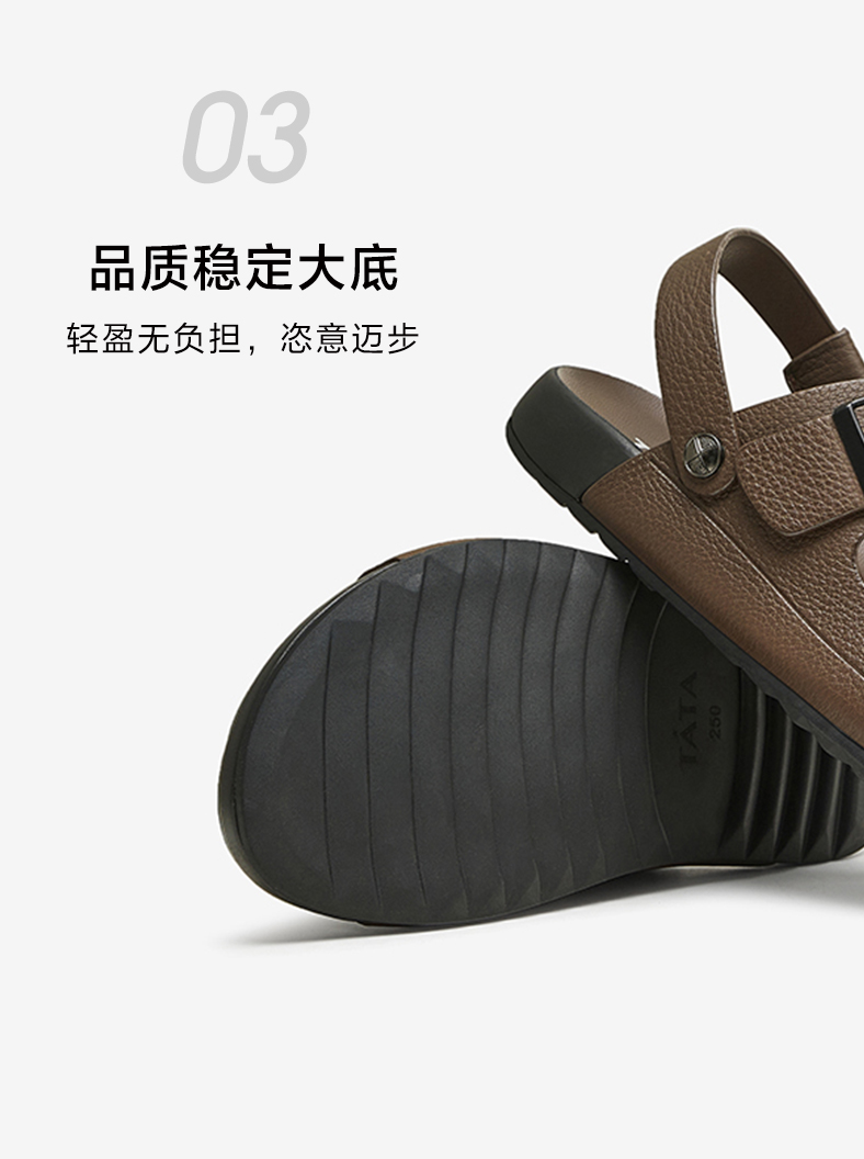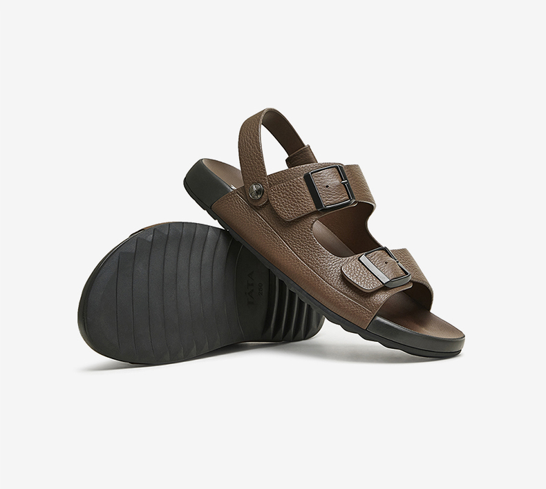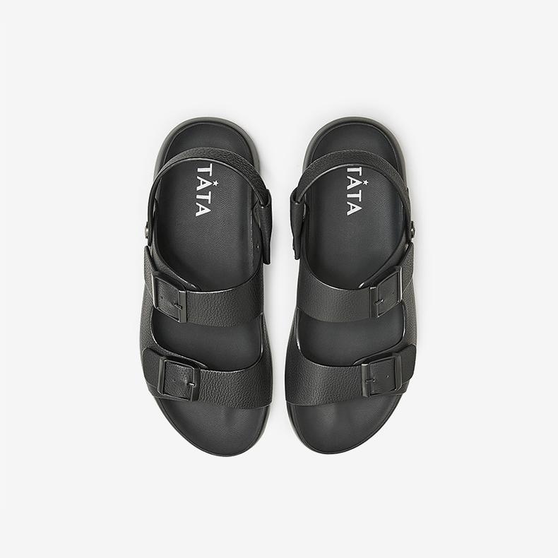 Tata Genuine Leather Beach Sandals Men's Business Black Soft-Soled Sandals 2025 Autumn New Model Vgm01Bl4
