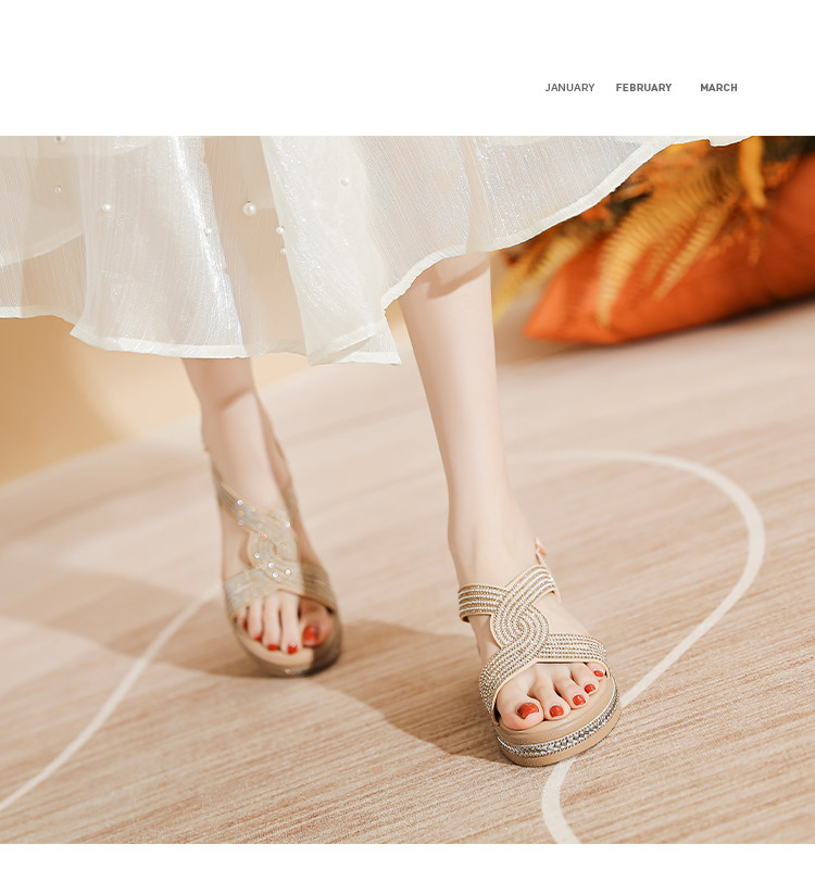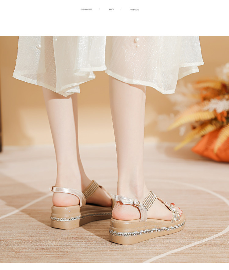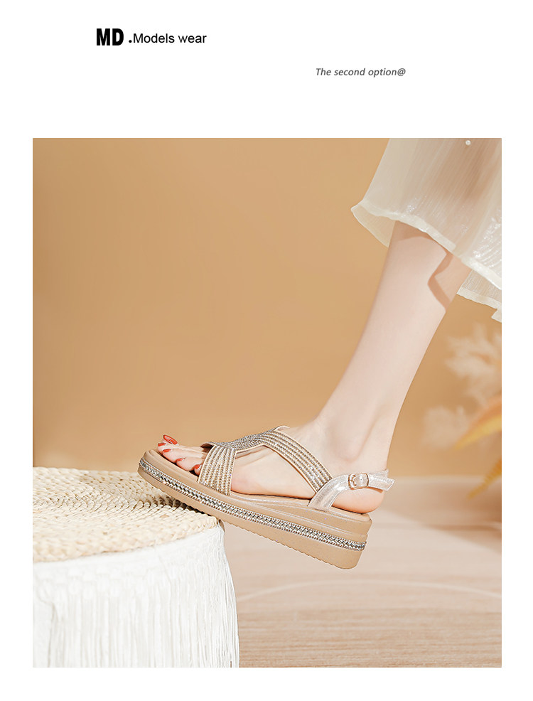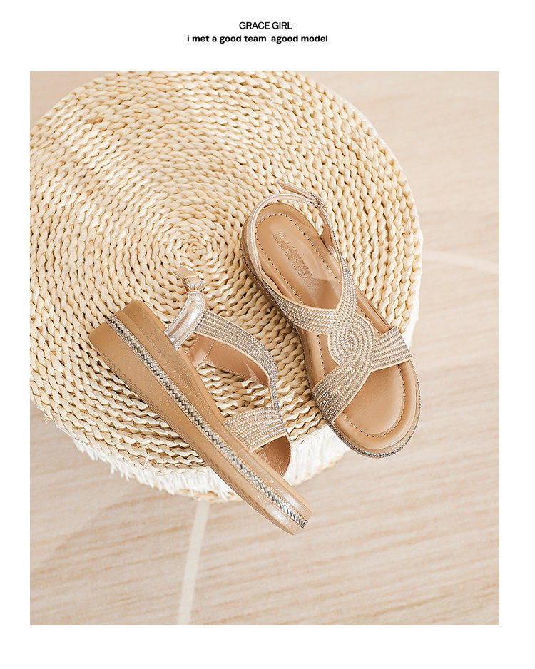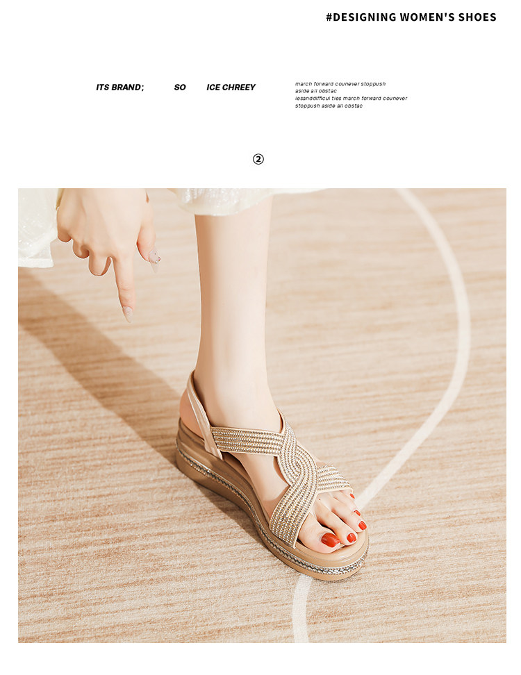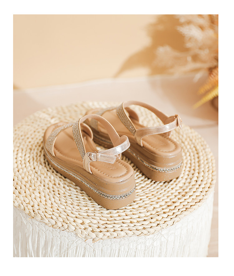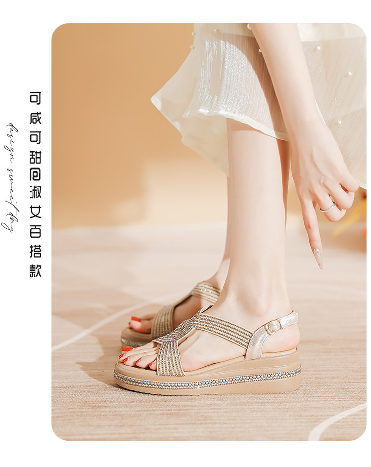 Belle Xia 2025 Summer New Style Chanel-Inspired Wedge Sandals for Women, Fashionable Rhinestone Thick-Soled Height-Increasing Versatile Women's Shoes
