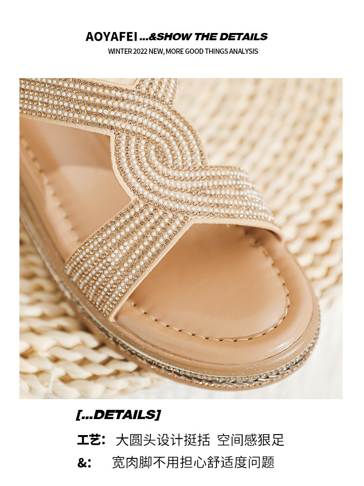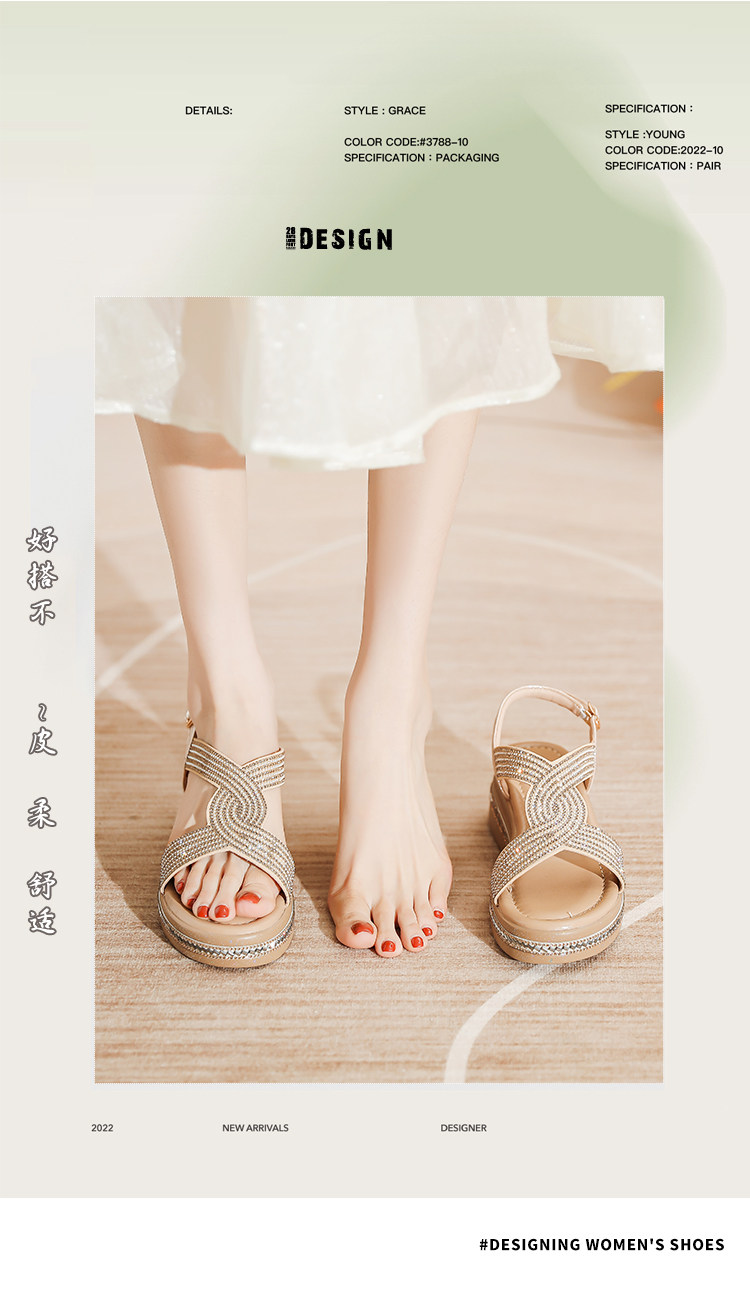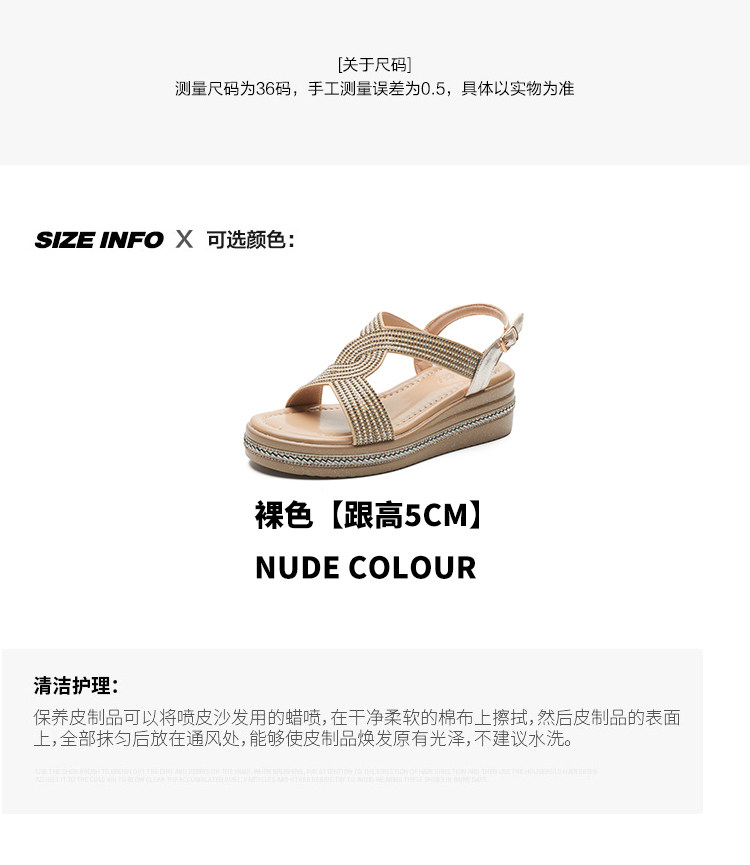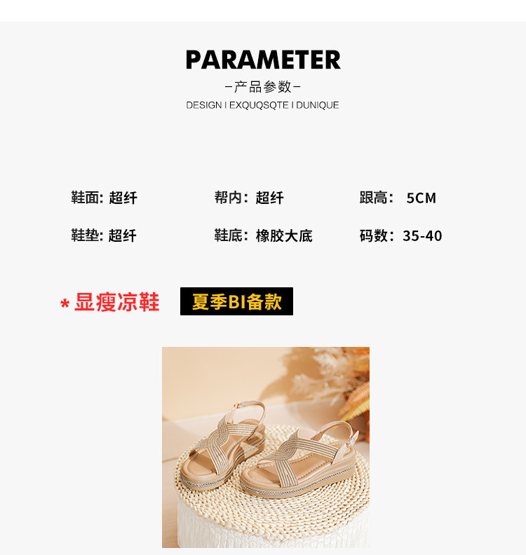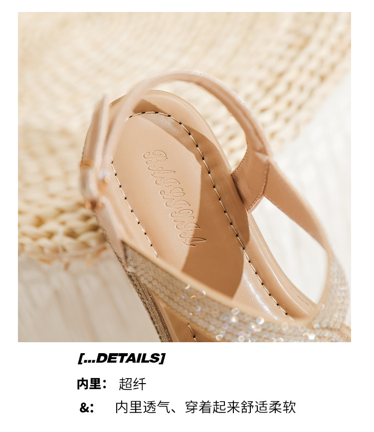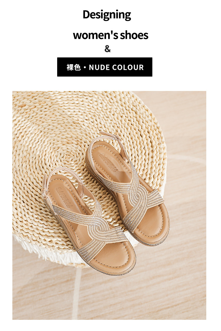 Belle Xia 2025 Summer New Style Chanel-Inspired Wedge Sandals for Women, Fashionable Rhinestone Thick-Soled Height-Increasing Versatile Women's Shoes