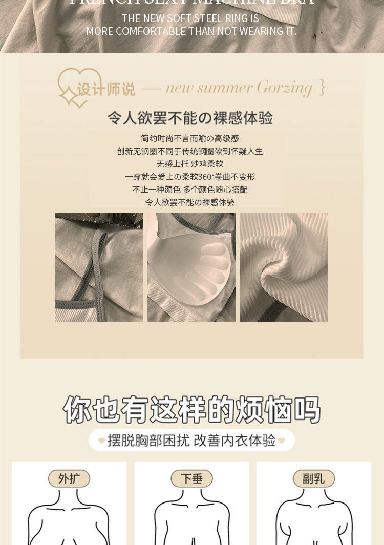 Girls' Underwear, Women's Push-Up Anti-Sagging Camisole, Wireless Sports Beauty Back Bra, Summer Thin Style 2024 New