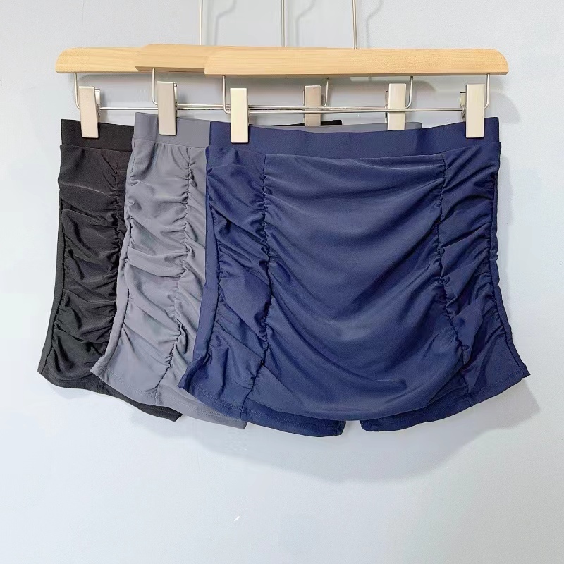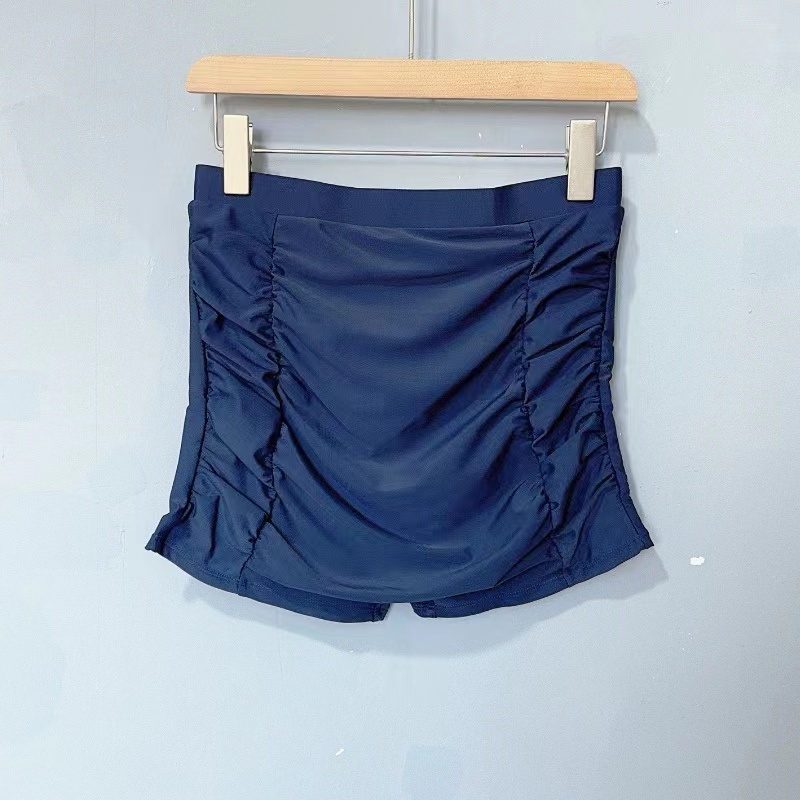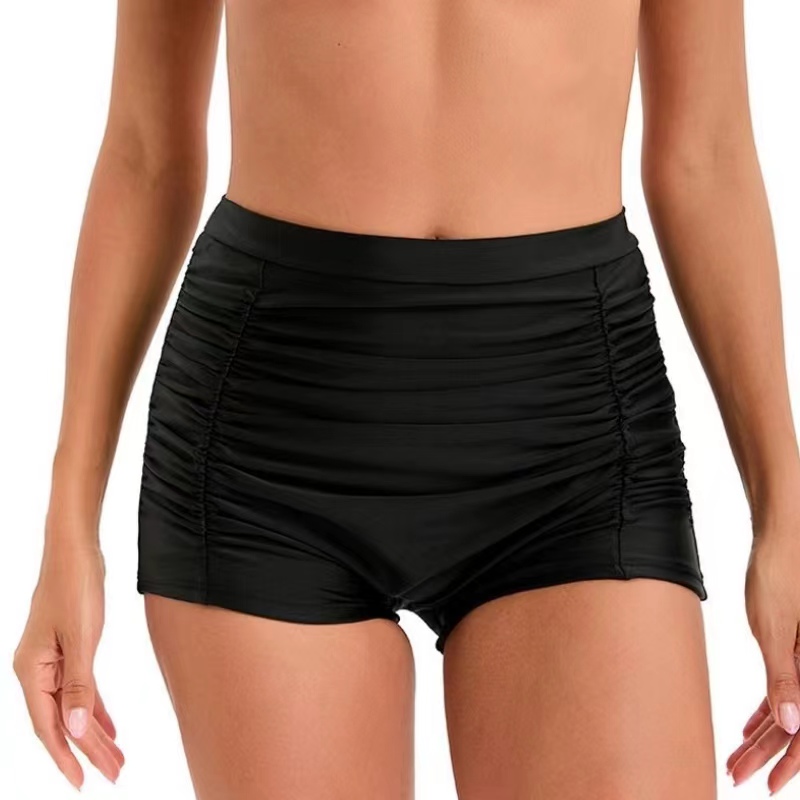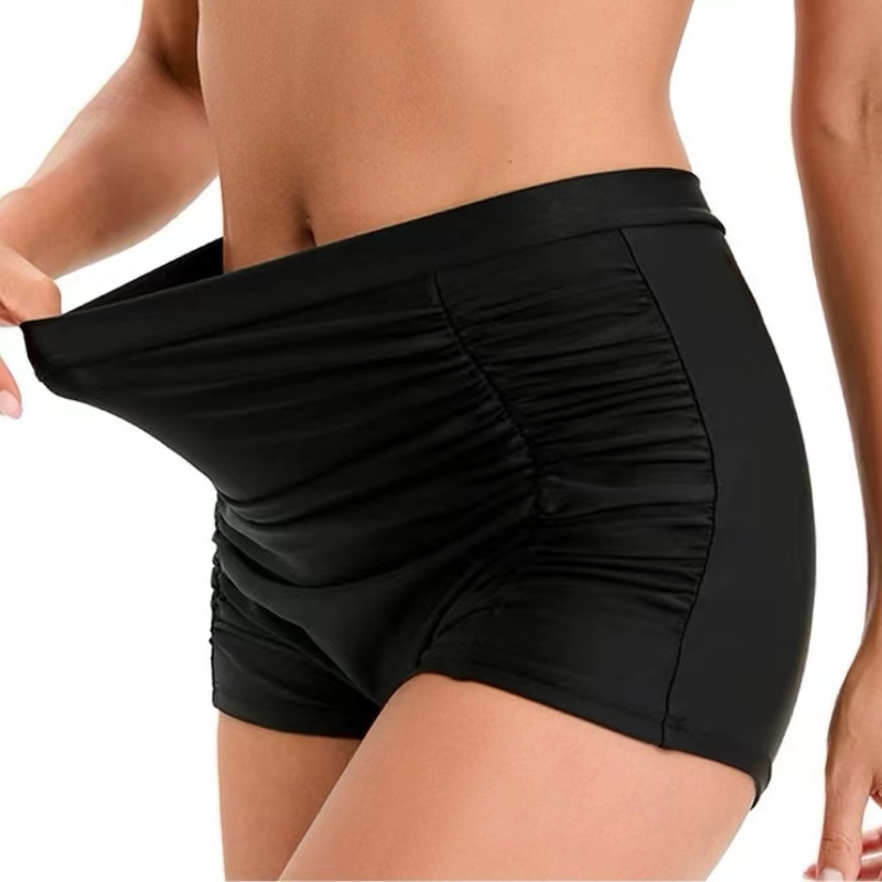 Amber Plus-Size Women's High-Waisted Pleated Tummy-Control Slimming Retro Solid Color Swim Trunks