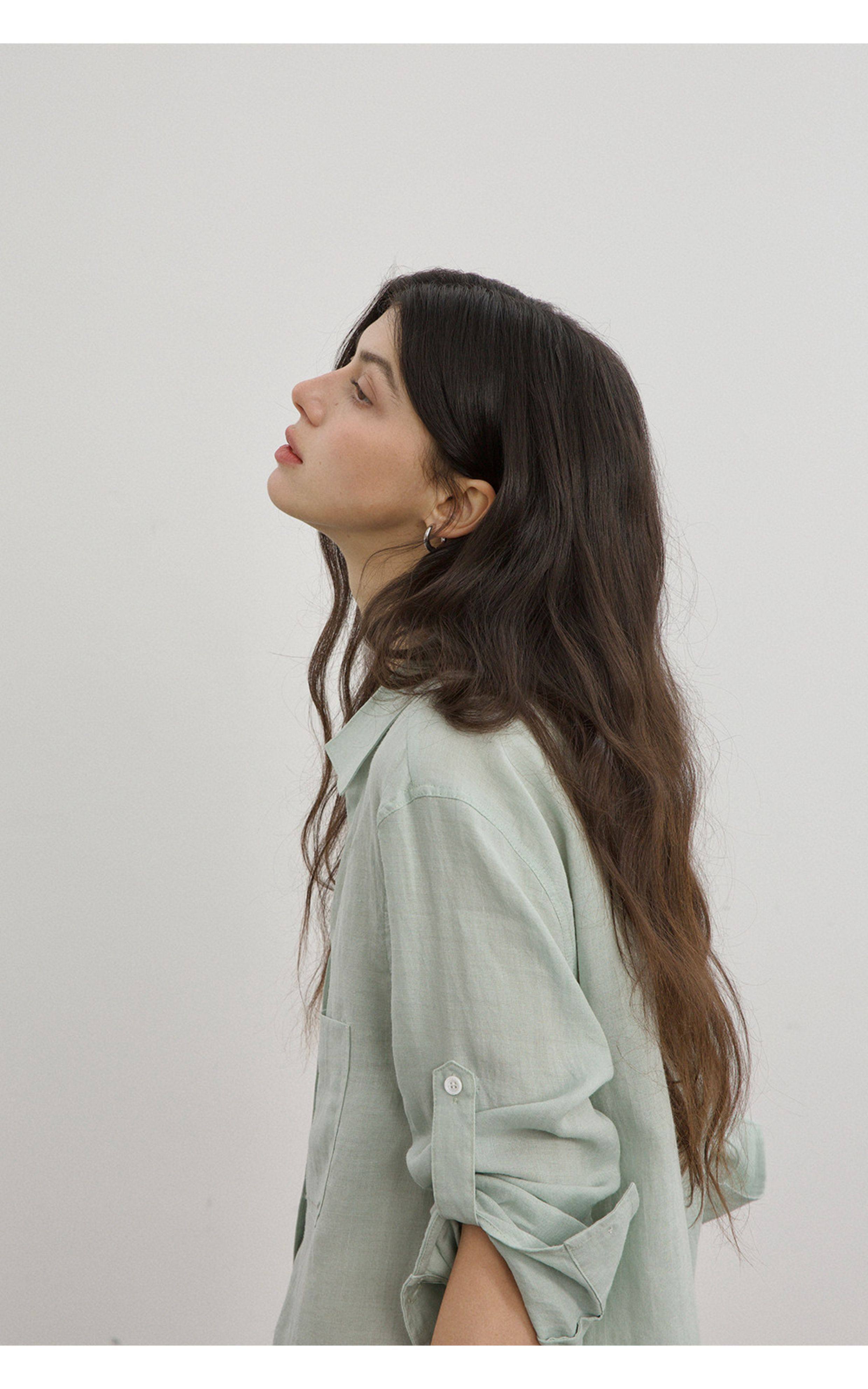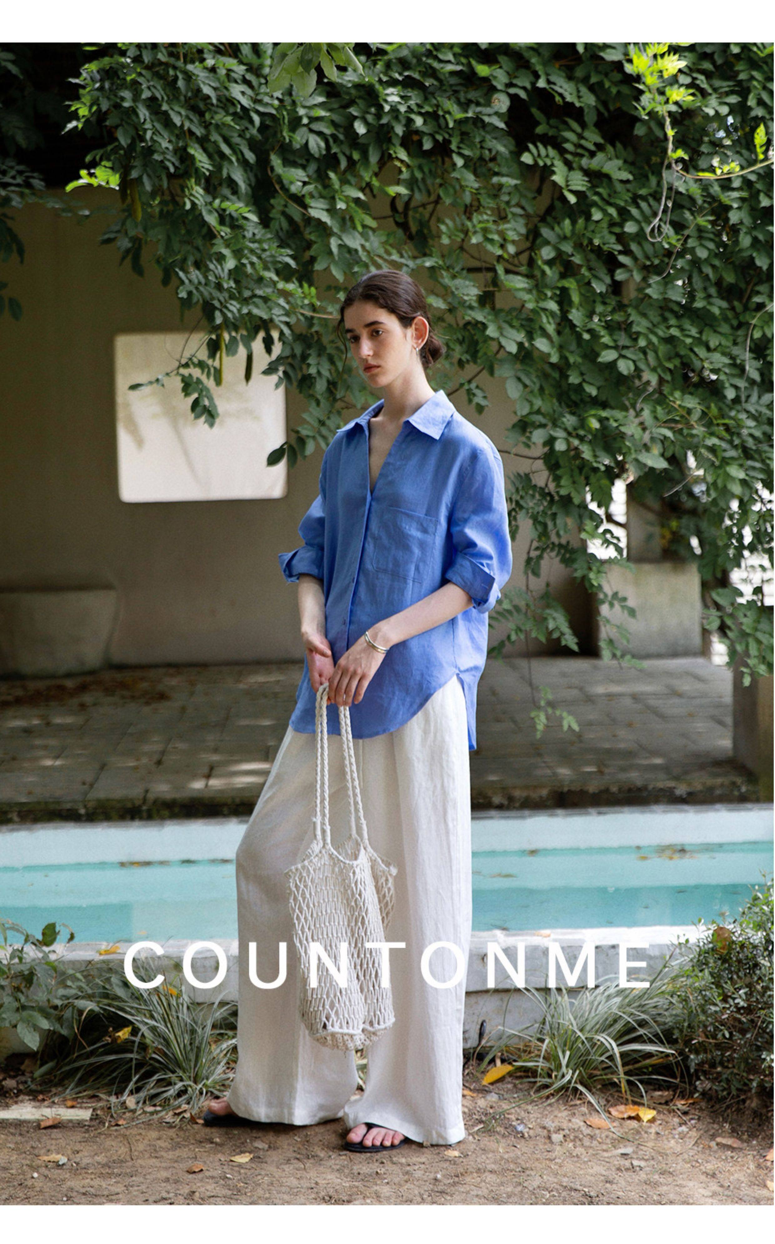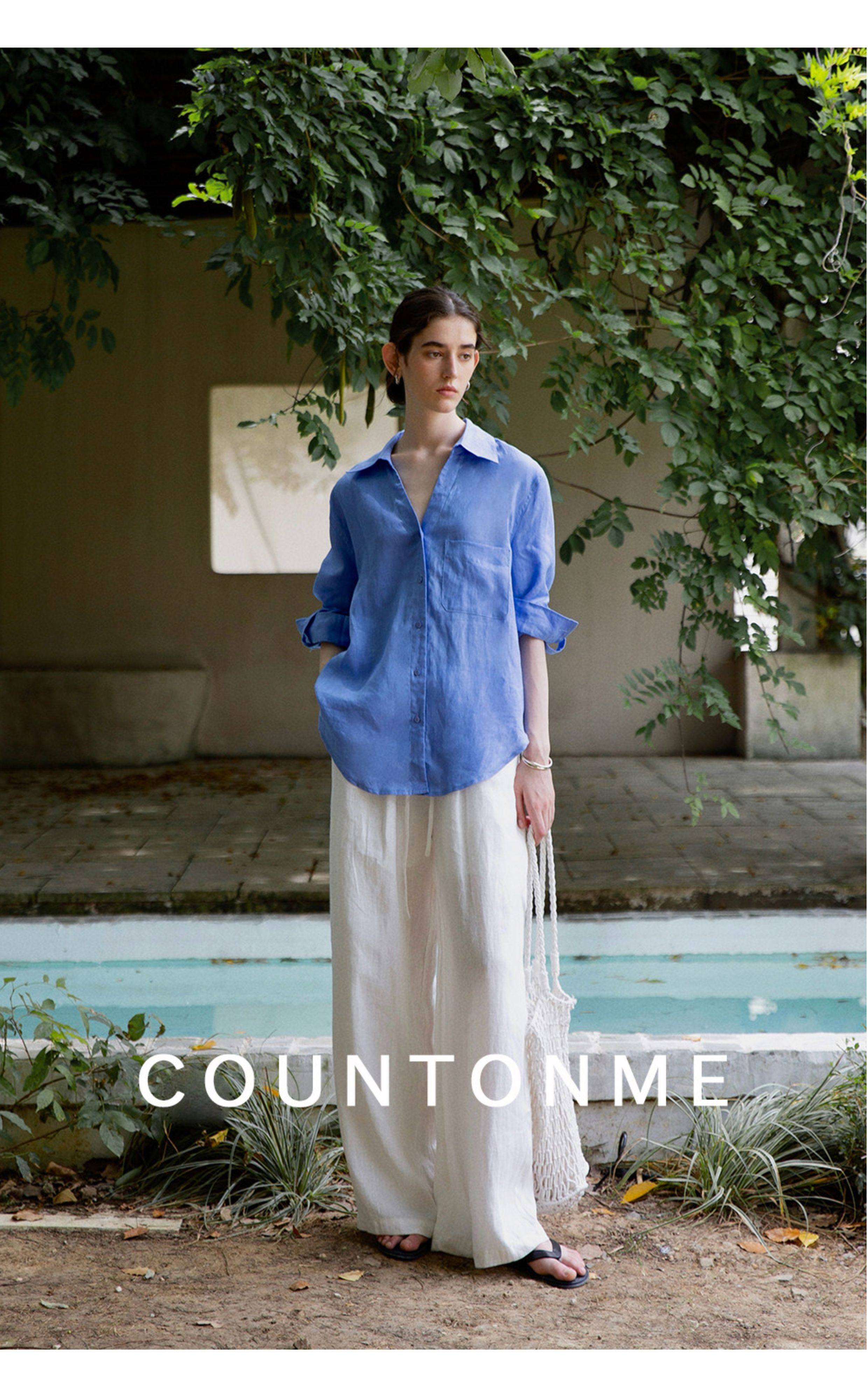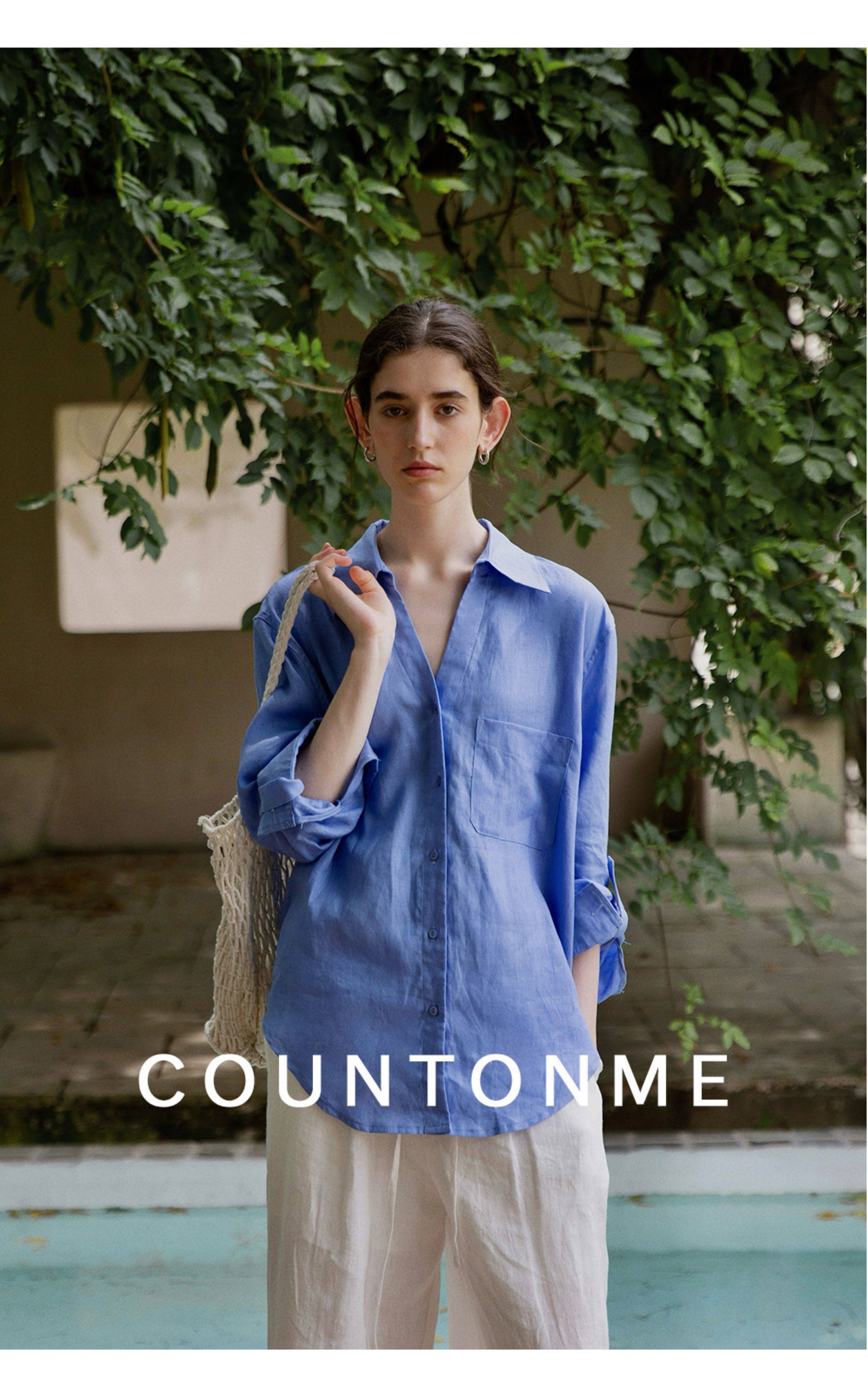 Countonme Relaxed and Comfortable V-Neck Linen Shirt Loose Fit Simple Sun Protection Long-Sleeved Shirt