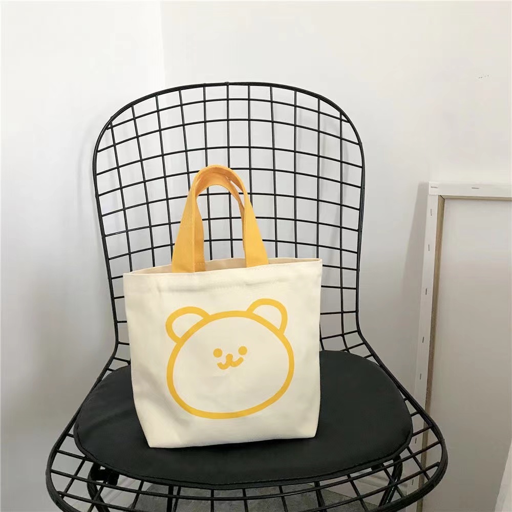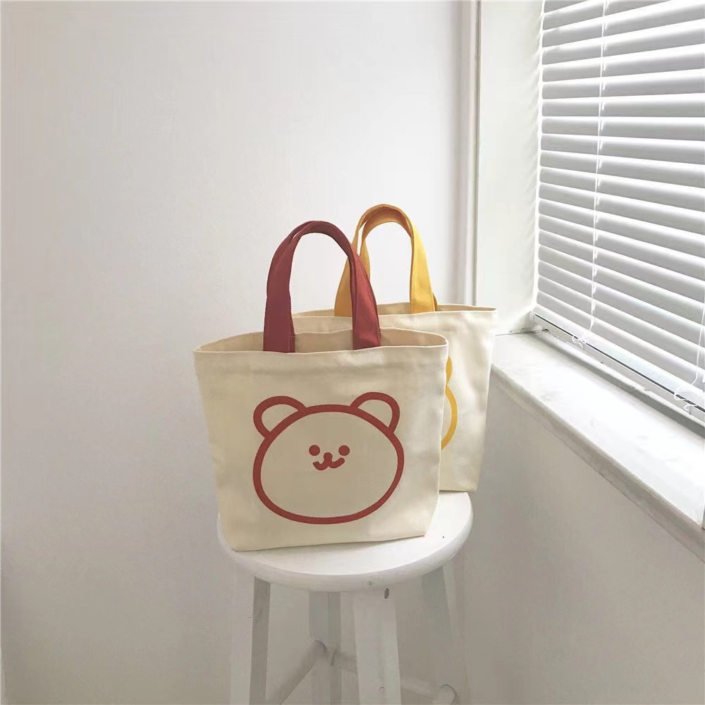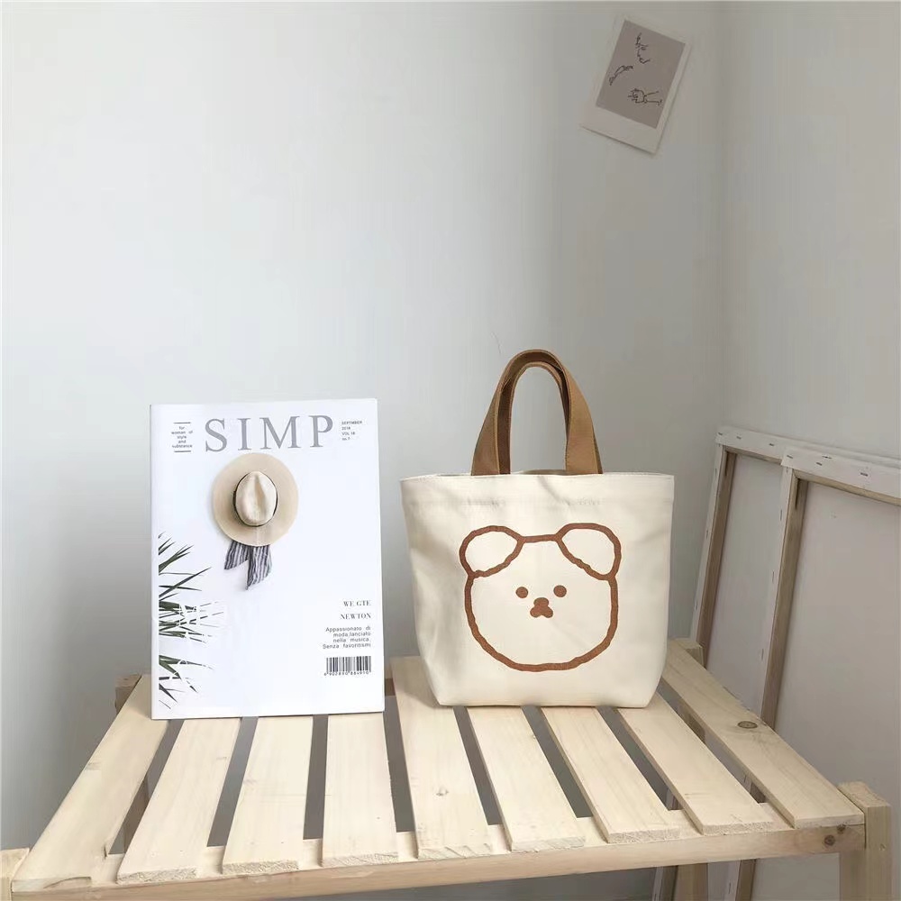 2024 New Model ins Korean Style Mini Bear Tote Bag Canvas Bag Cute Hand-Held Lunch Bag Student Girl Bag