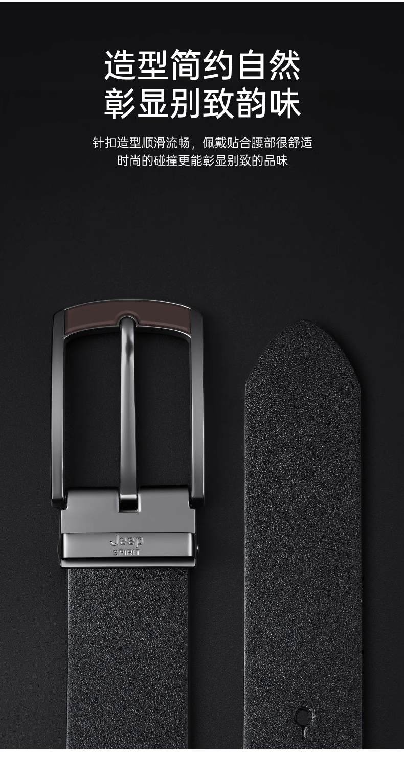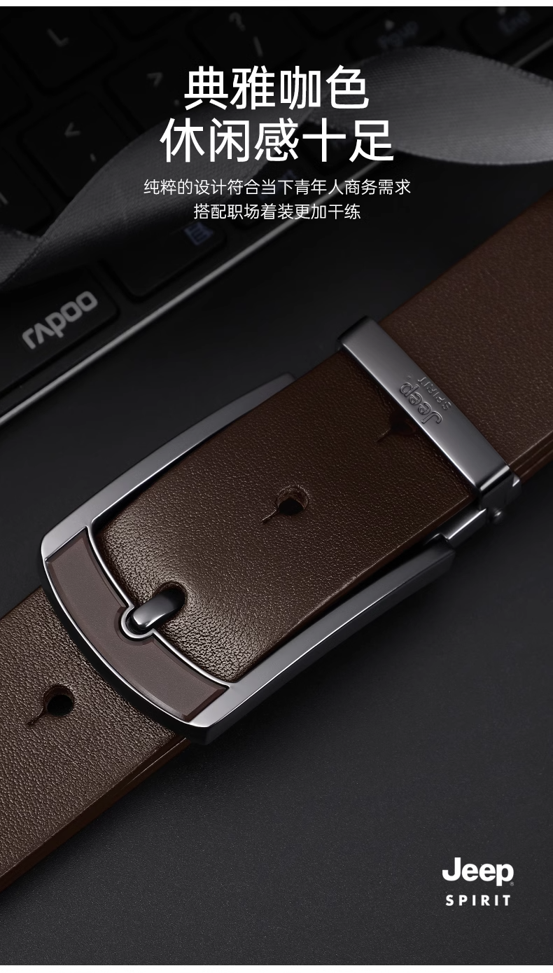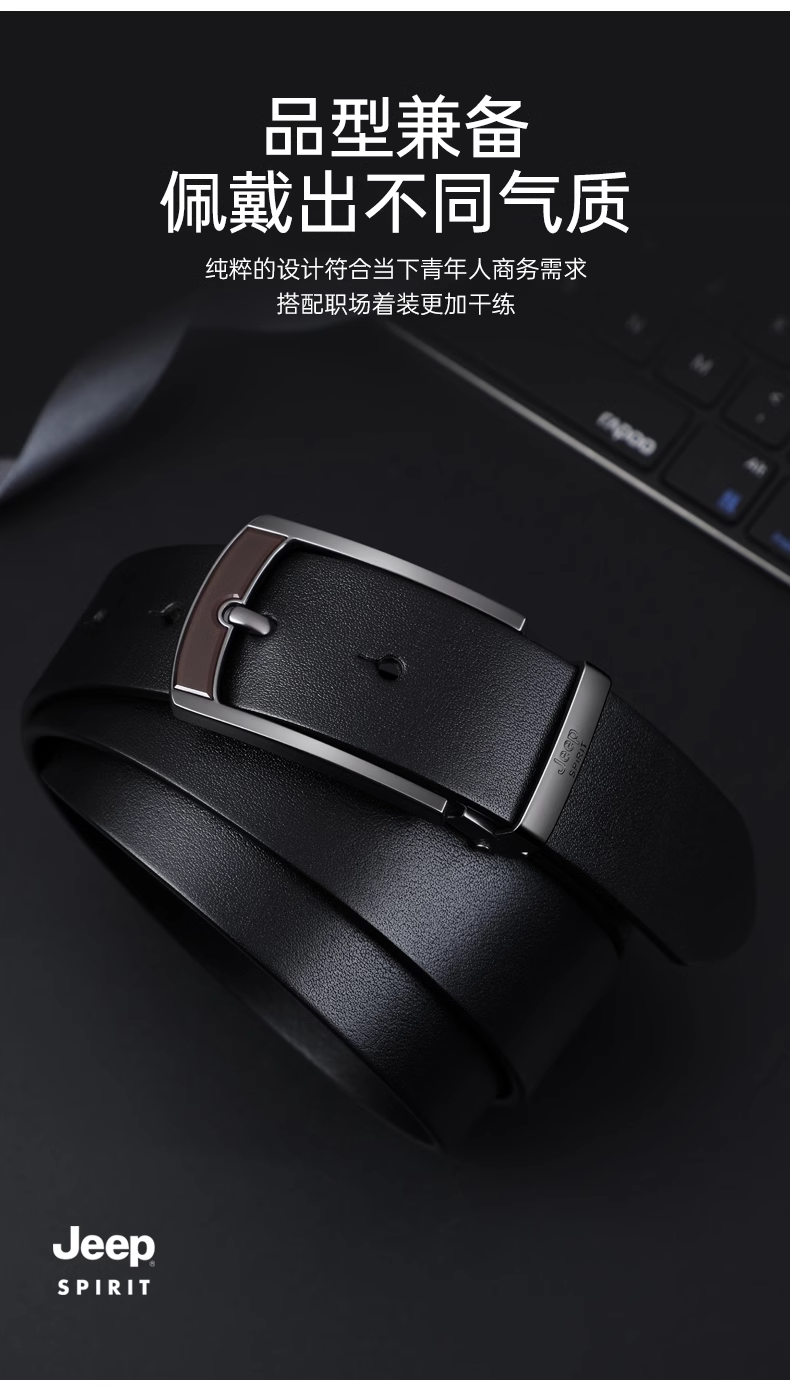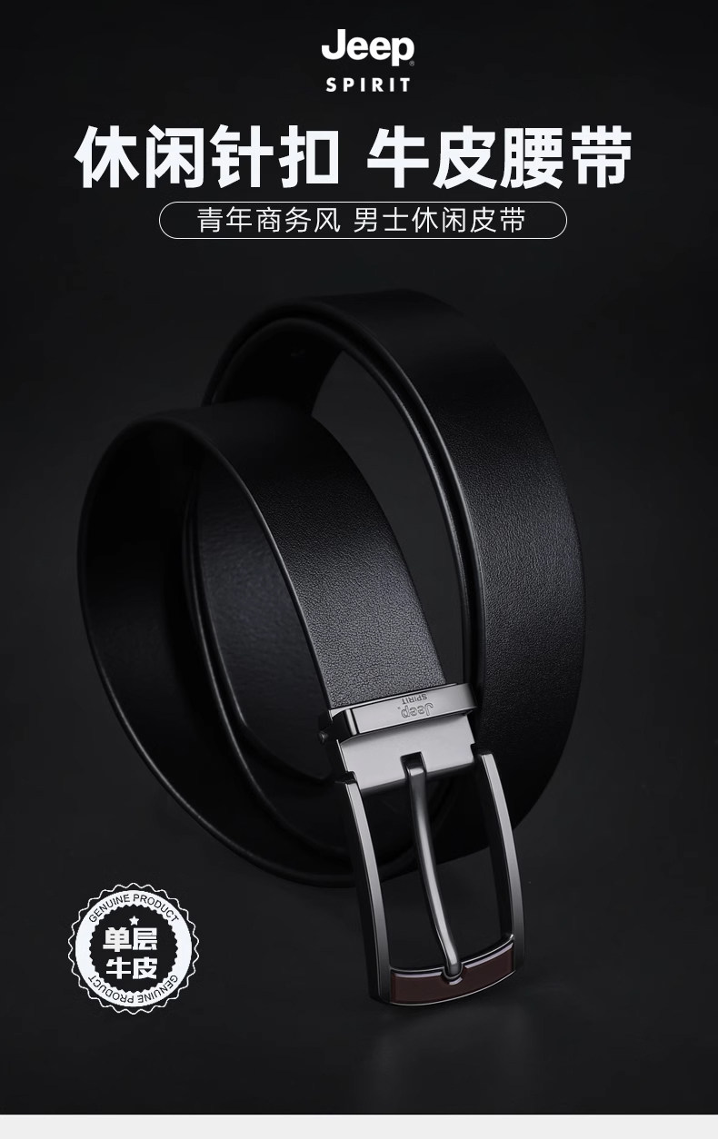 Jeep First-Layer Cowhide Men's Pin Buckle Belt Genuine Leather Belt for Young People 2025 New Style Suit Pants Belt Formal Wear Korean