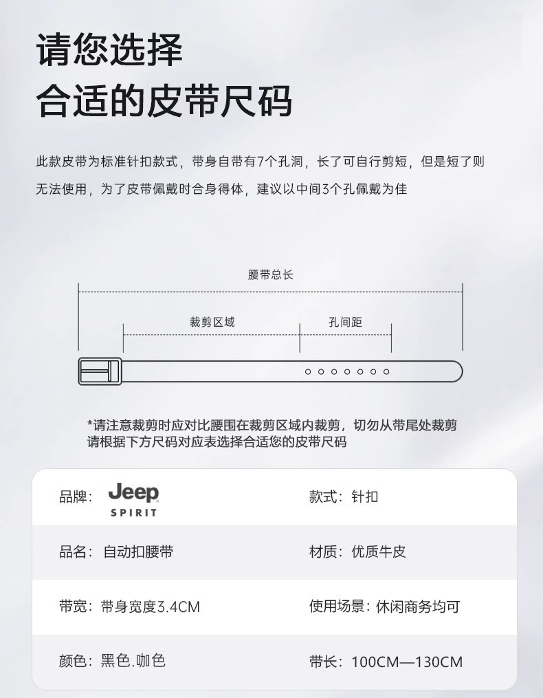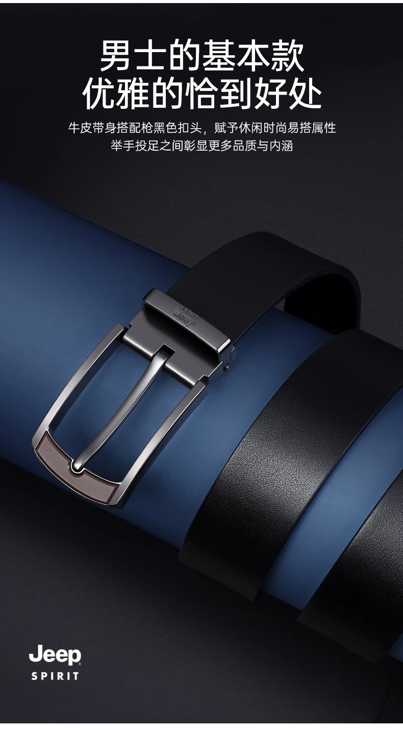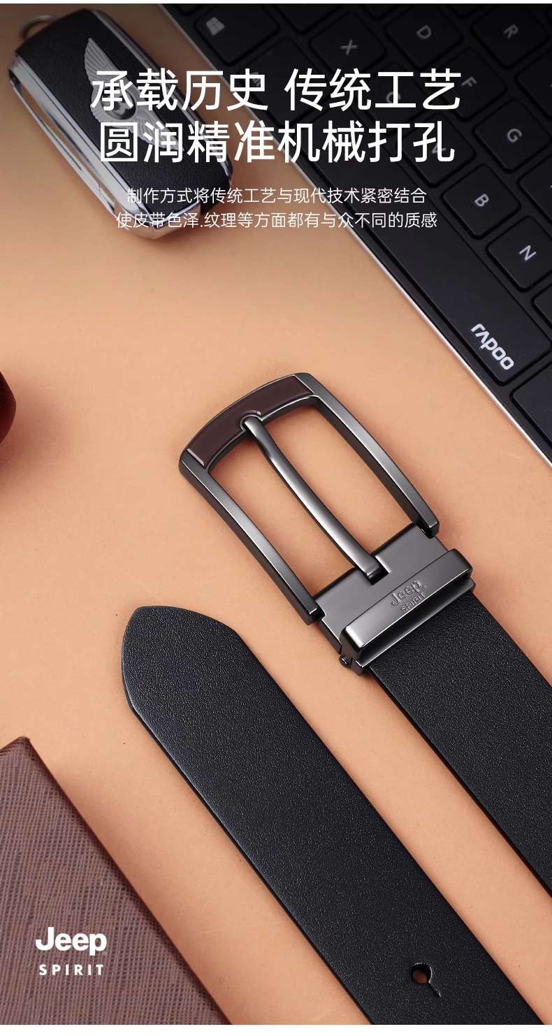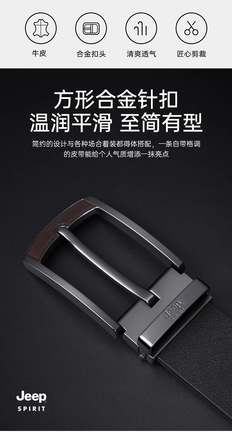 Jeep First-Layer Cowhide Men's Pin Buckle Belt Genuine Leather Belt for Young People 2025 New Style Suit Pants Belt Formal Wear Korean