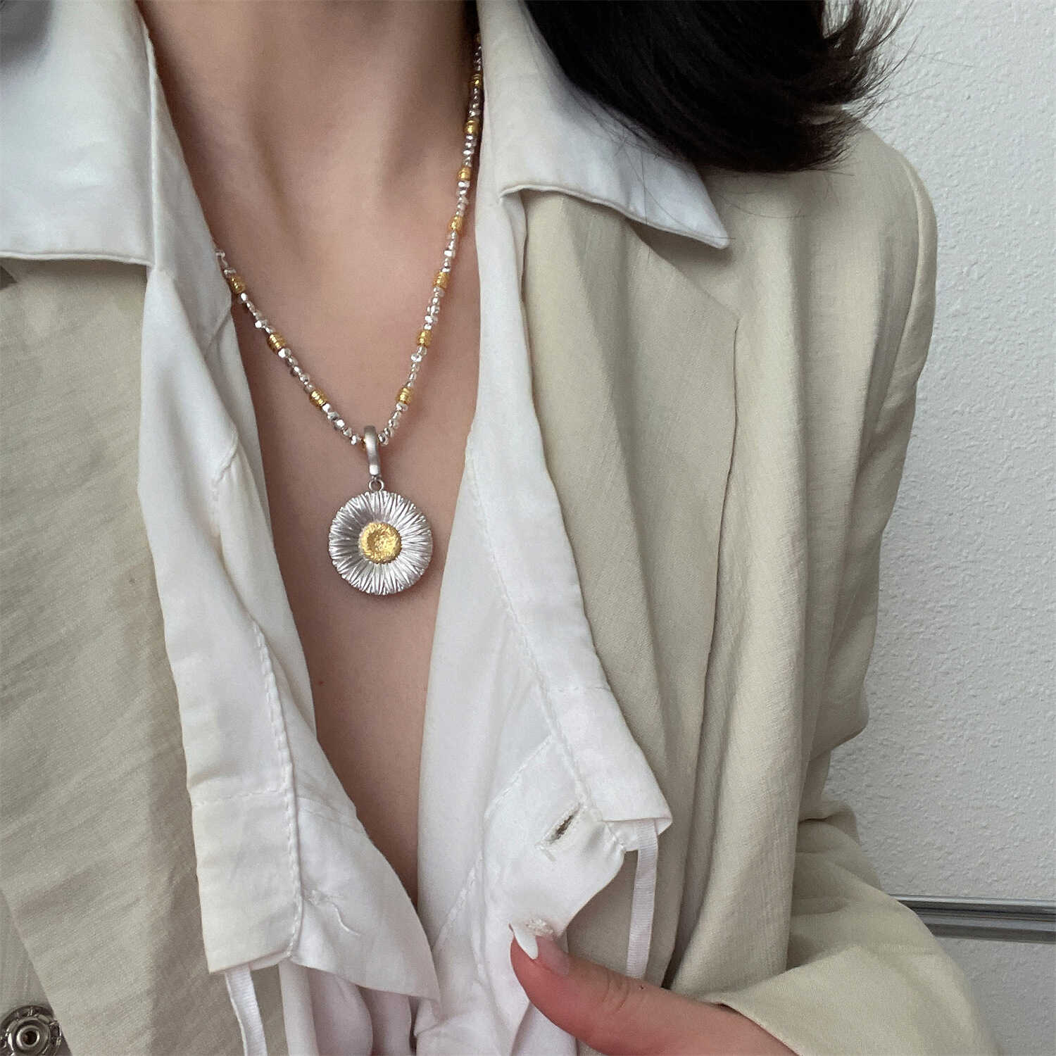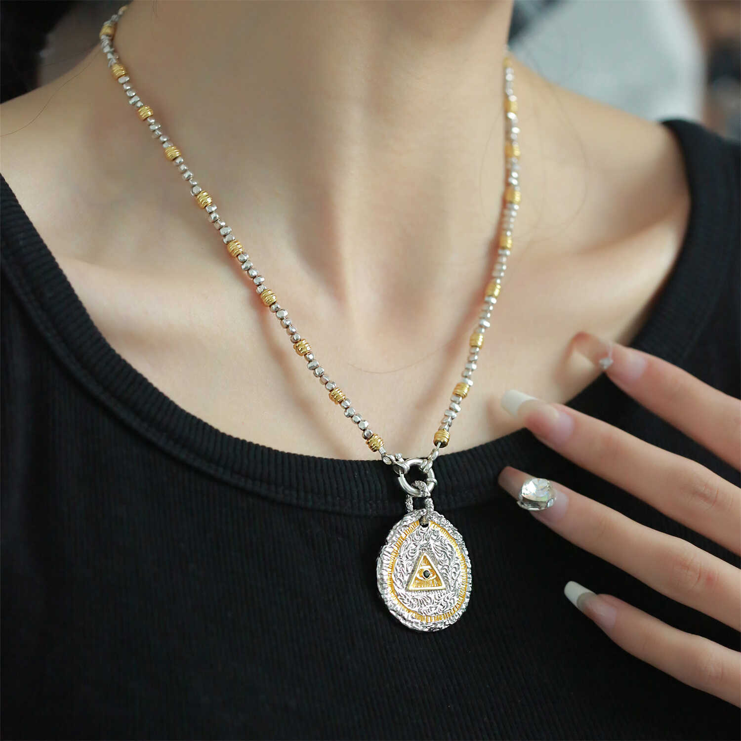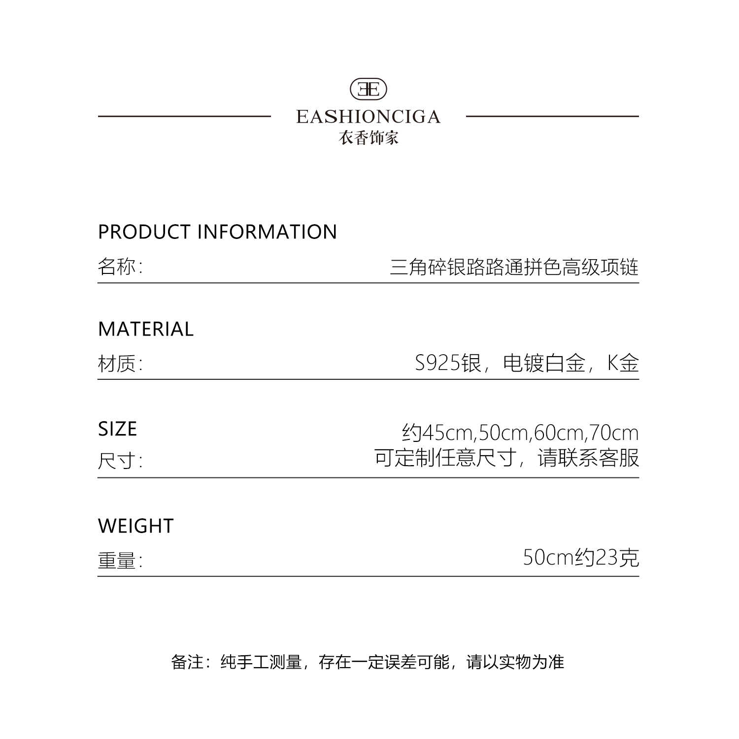 S925 Sterling Silver High-End Custom Silver Fragment Handmade Color-Matched Necklace, Unisex Luxury Heavy-Duty Sweater Chain Exl136