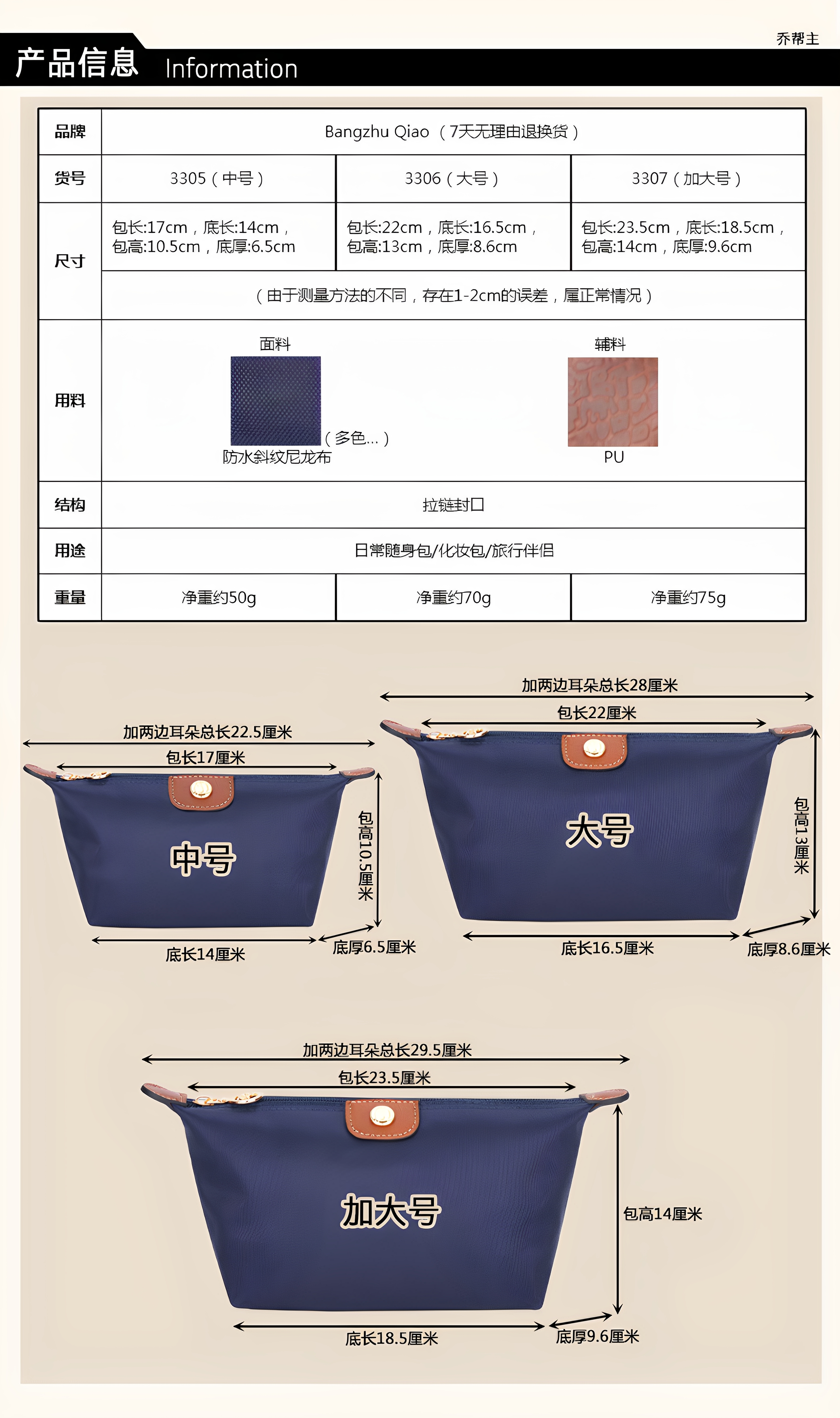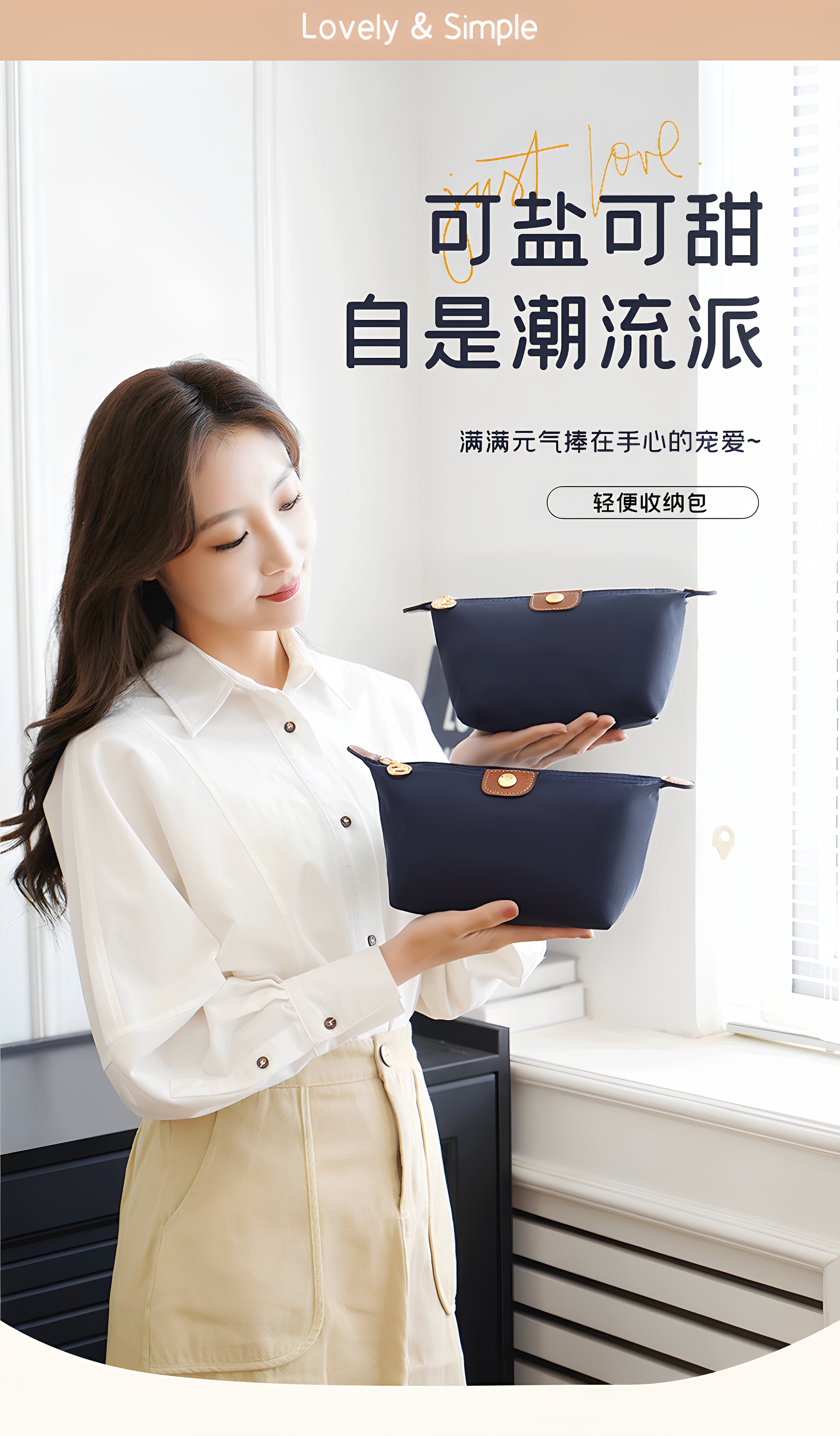 Qiao Bangzhu Fashionable Waterproof Dumpling Bag Nylon Cosmetic Bag Travel Portable Clutch Women's Mini Bag
