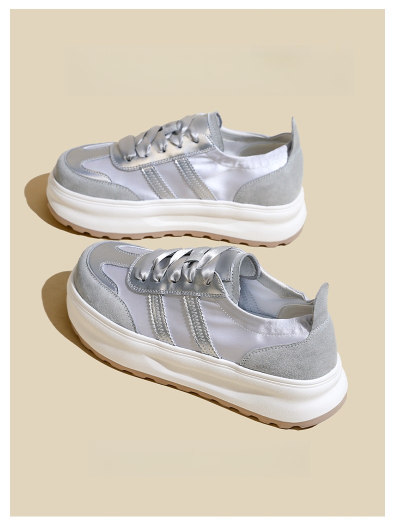 Hong Kong Thick-Soled Height-Increasing German Training Shoes for Women, 2025 Spring and Autumn Thin Breathable Versatile Trendy Casual White Canvas Shoes