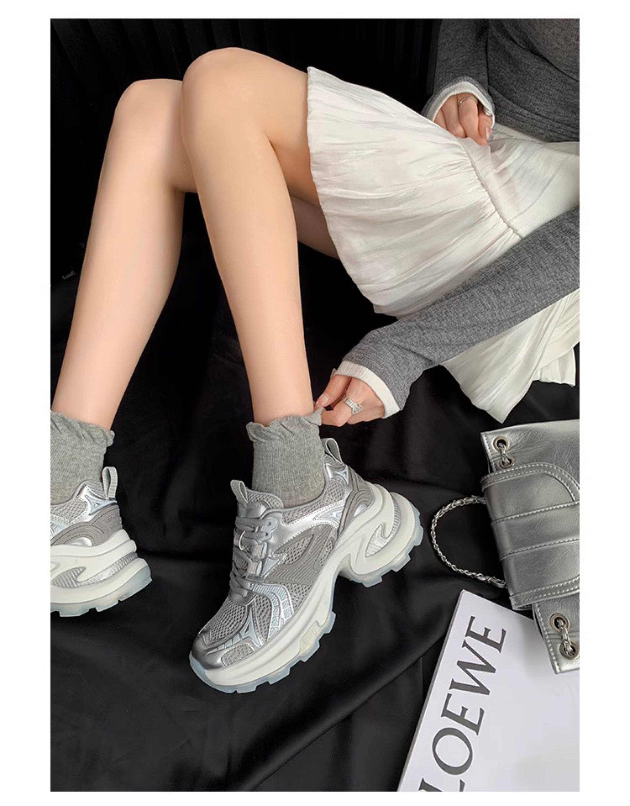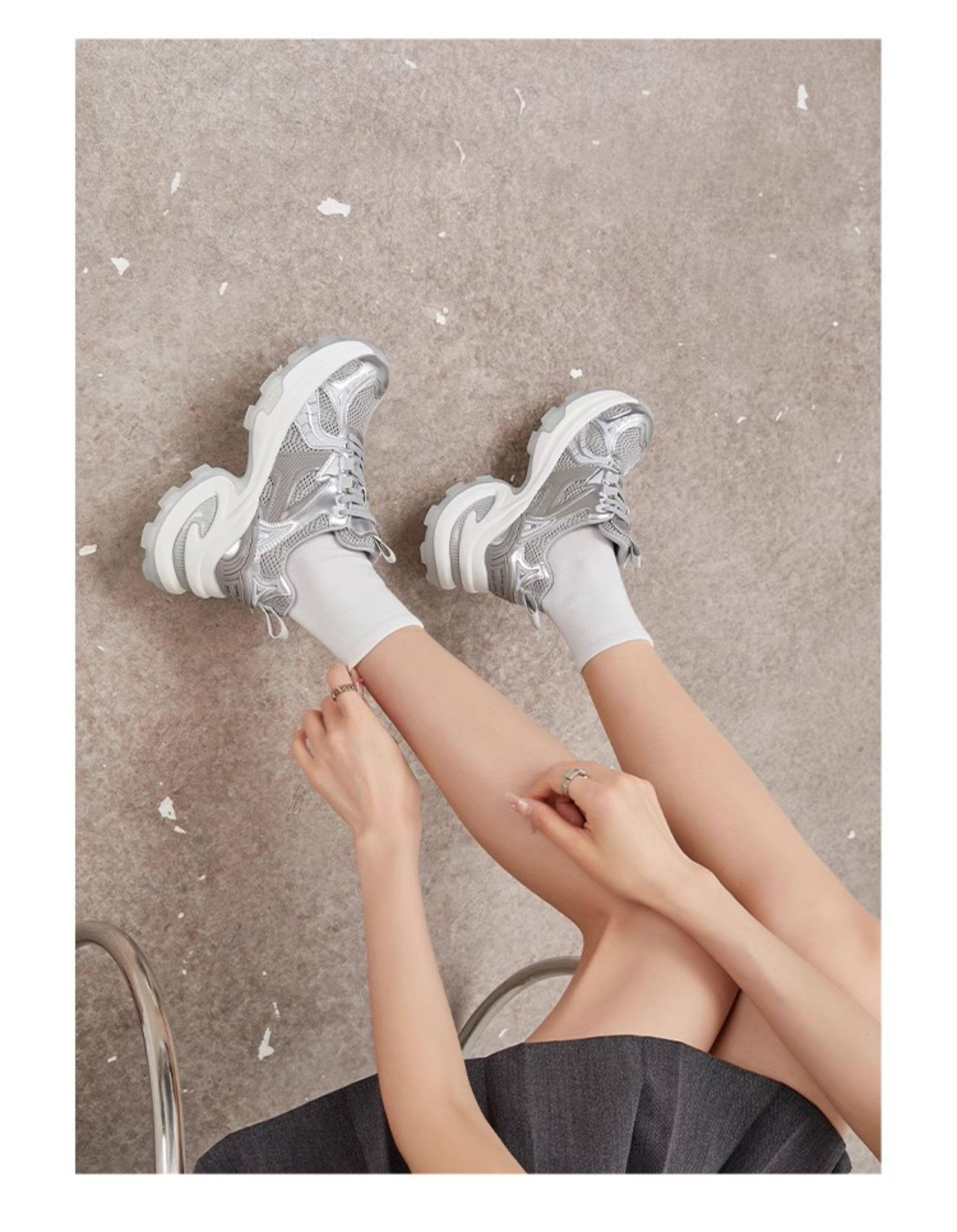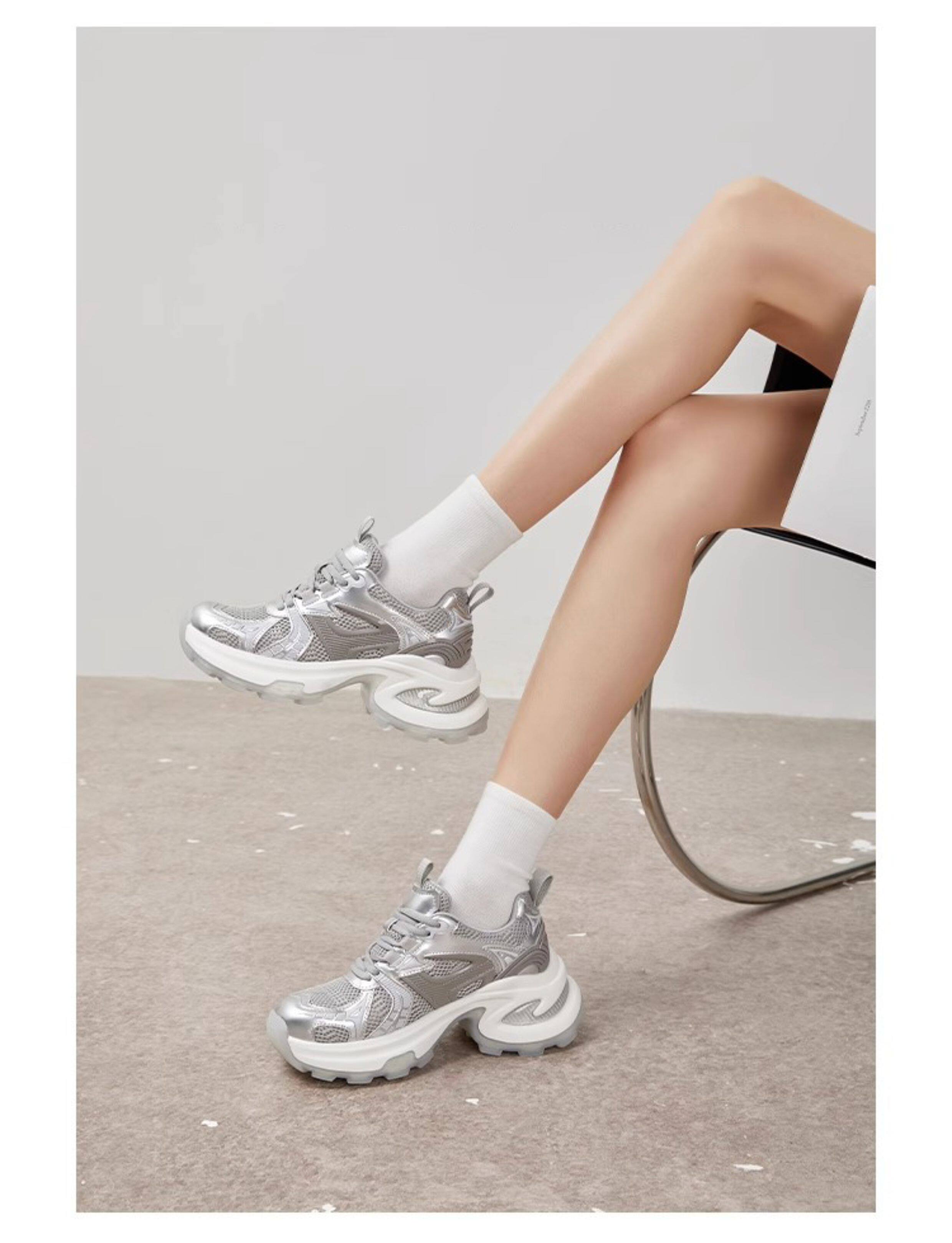 Hong Kong's Popular Thick-Soled Height-Increasing Dad Shoes for Women, 2026 Spring New Model, Mesh Breathable, Trendy and Versatile Casual Sneakers